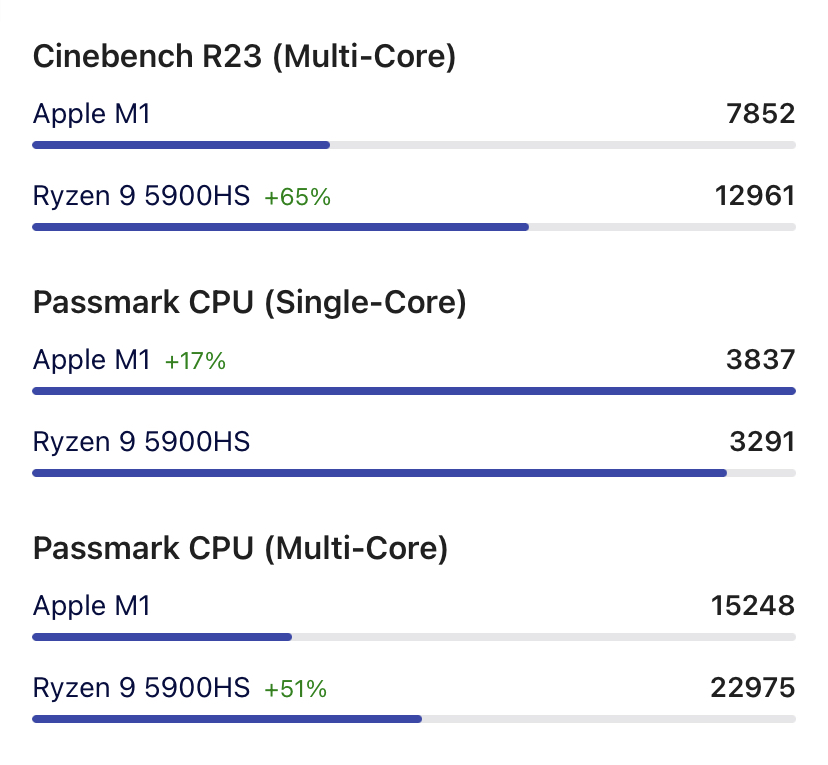 Ten cisto CPU vykon M1 Pro/Max je niekde na urovni Ryzen 5900HS co uz je rok na trhu plus minus par percent aspon v Cinebench R23 multithreaded. Takze vravim je to super, ale nemusia este v AMD ani Inteli zhasnut a odhlasit energie ako naznacuju bombasticke titulky od fanbois