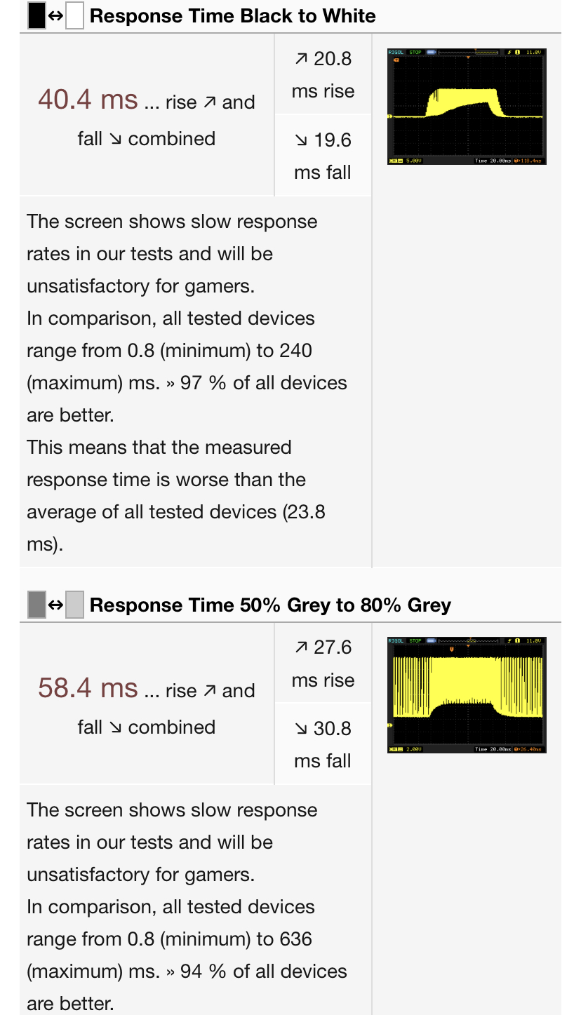 pablohablo napísal:Tie displeje nie su zle, ale marketing je snake oil (napr. motion performance od 12:14 je celkom fail, response time cele zle)