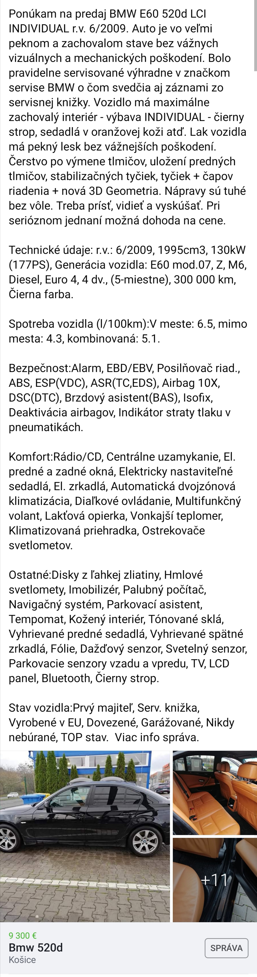 To auto sa za 9k nepreda niiikdyyy v zivote. Ani keby to bola lestenka po doktorovi. Kokoti co hladaju taketo auto jazdia na pasatoch. A kokoti co este dnes hladaju E60 chcu 6.. 8..10 valcov. Do zuberca nechod, ja som to videl. Na banisko chod. Ze si niekto "doviezol" drahy vrak je denna storka ktora nestoji za rec. Dnes to vlaci kazdy kokot obkladac cestou domov z DE, prvu picovinu co mu mobile vyhodi v okoli.