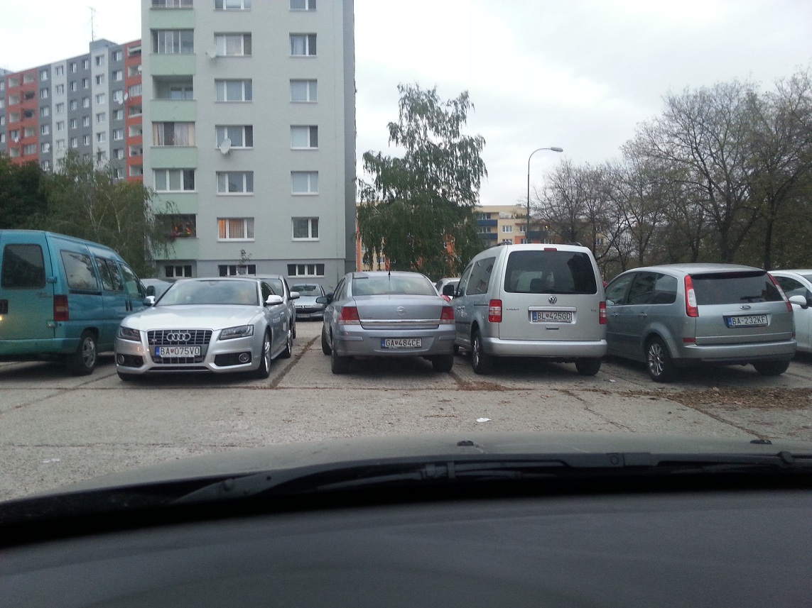 Normalne som sa musel posunut dopredu aby som mohol dat veci do kufra. Pritom cele parkovisko prazdne
