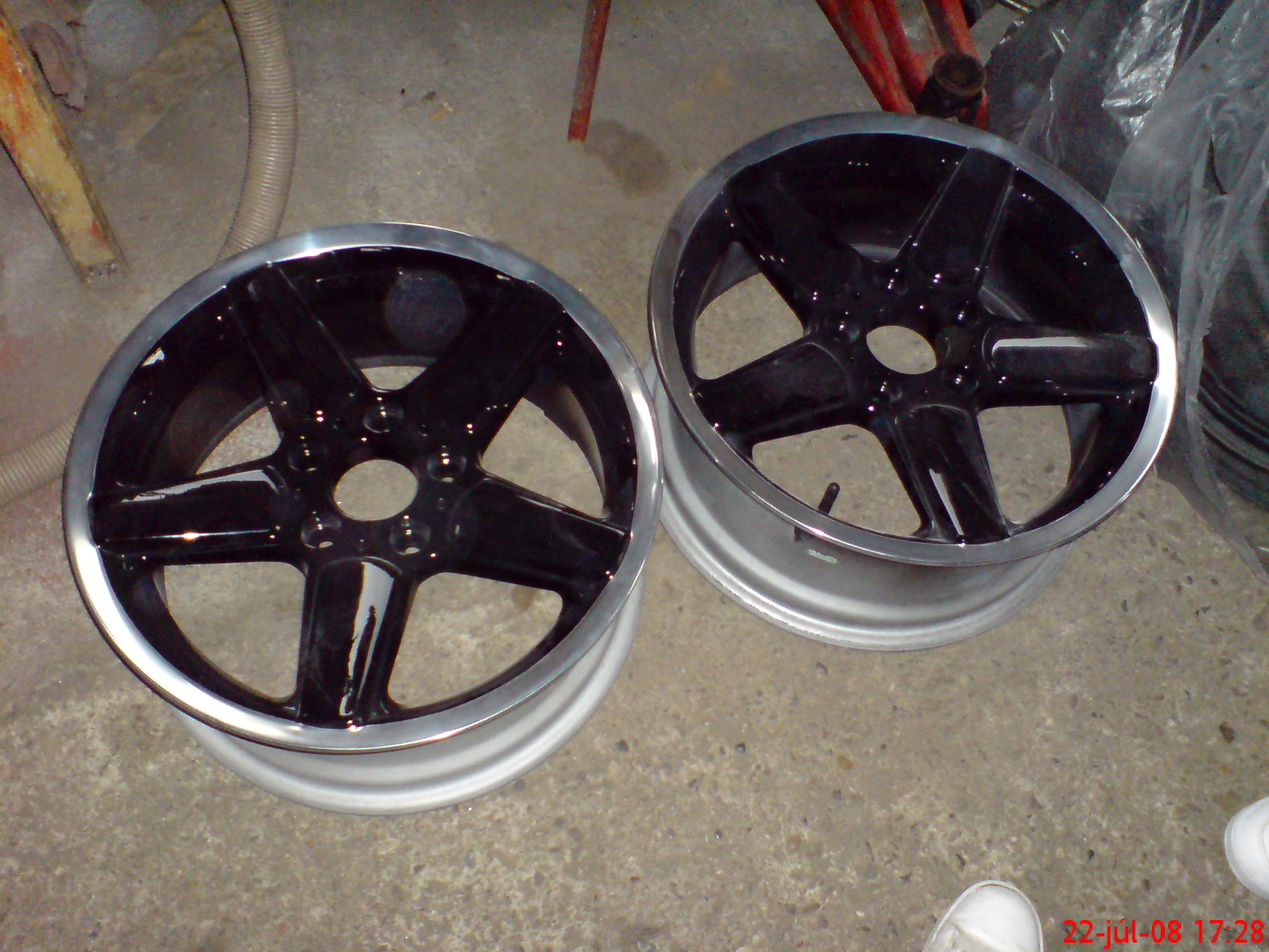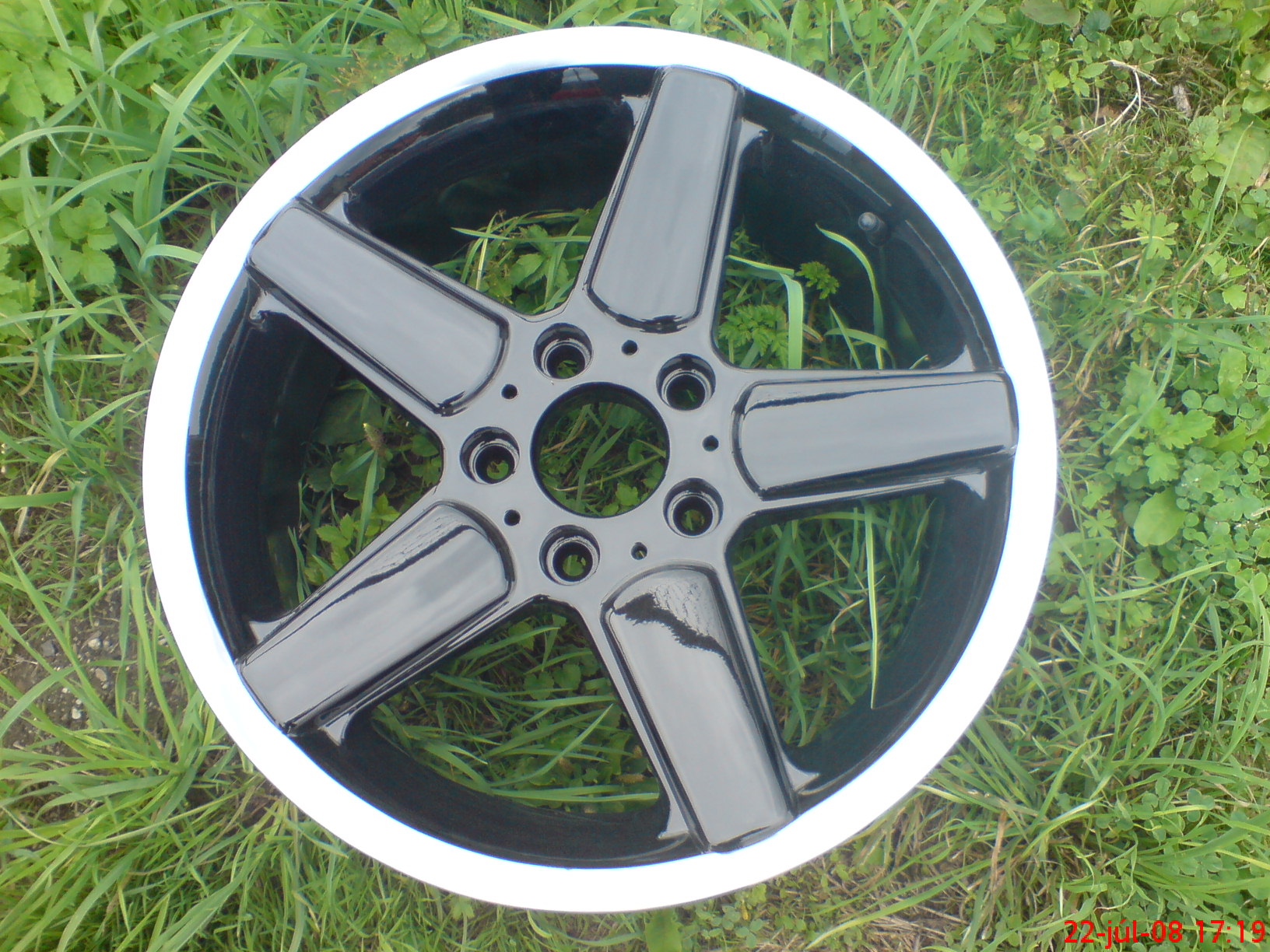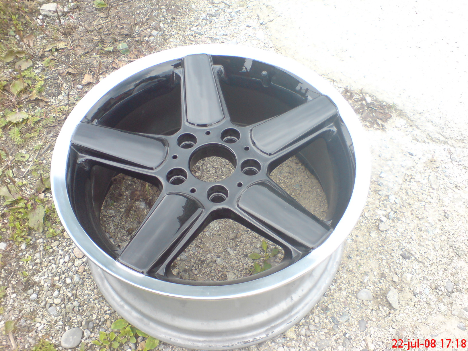 tu mas na ukazku...prve je original s vylestenym okrajom, potom je po opieskovani a tretie je s novym lakom a ten okraj som nechal vylesteny...tazko povedat ako to bude na tvojom aute vyzerat....mozno keby boli vacsie tak by som do toho siel...v 17tke sa to koleso dost zmensi...