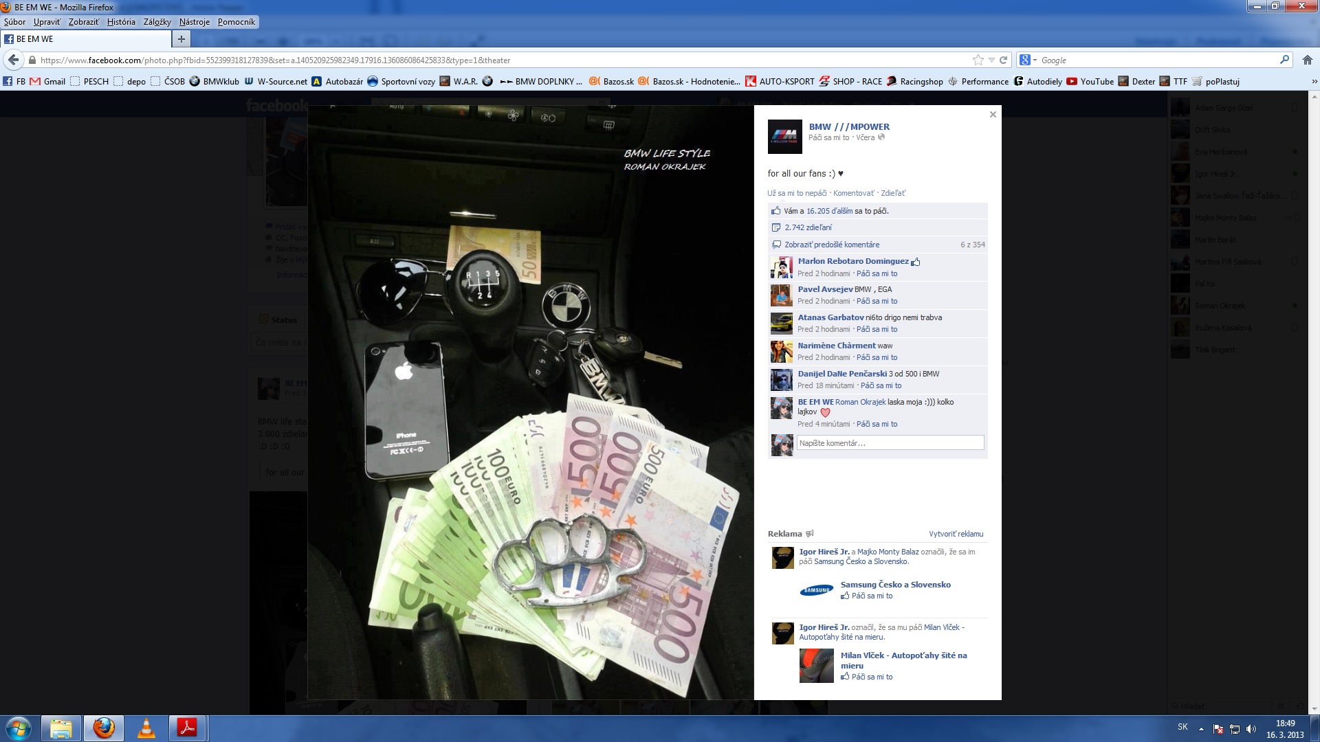 Svata pravda bracho!! VZDY ked ma clovek pri sebe vacsiu hotovost ma sa s nou vyfotit a okamzite to dat na FB.! Sak to je tak huste a bičiz uplne z toho vlhnu, treba zajebat husty hip hop a poriadne sa previest na svojom 15rocnom BAWE, co sotva drzi pokope a ma mensiu hodnotu ako normalne hodinky. je je jeh! Hejteri su pici!!!