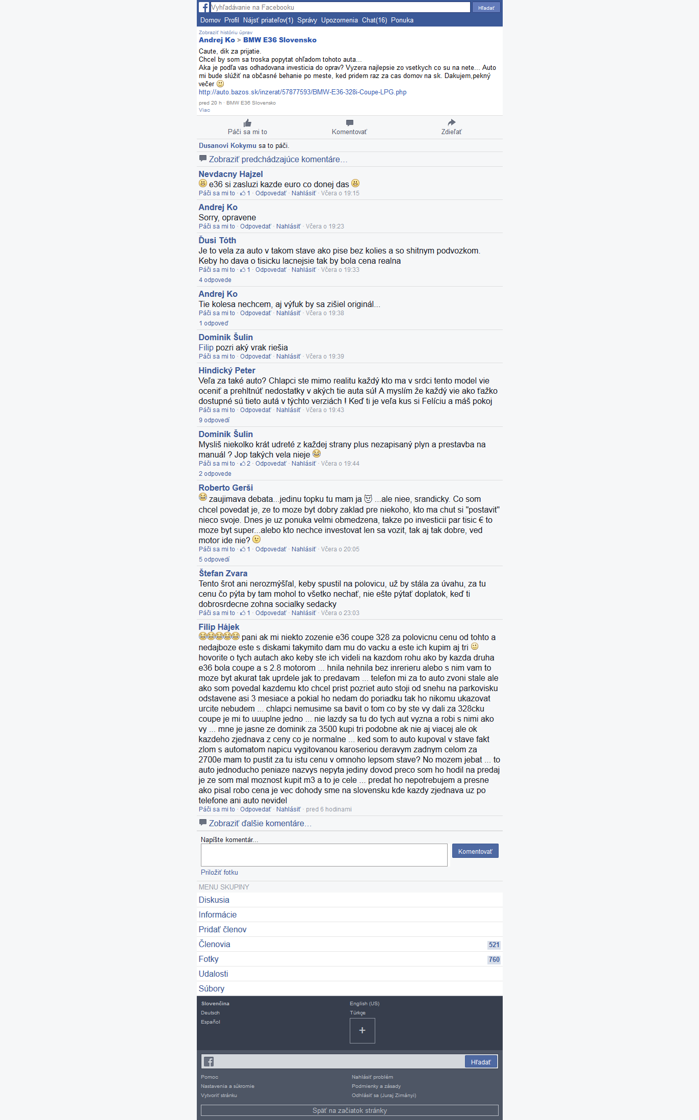 kuk2 napísal:Páni stačilo! Som Tomasov36 firemný právnik. On nieje taký KOKOT ako sa zdá. Pozná sa s Gajsenovcami a osobne sa stretol s Danom Nekonečnym a Branom Mojsejom a to už niečo znamená. On Vám nemá čo závidieť. Je úspešný podnikateľ a má reprezentatívnu e36 316i, ktorú si porobil sám vo svojej firme na bmw. Už to nechajte tak! Lebo budem nútený podať na Vás trestné oznámenie.