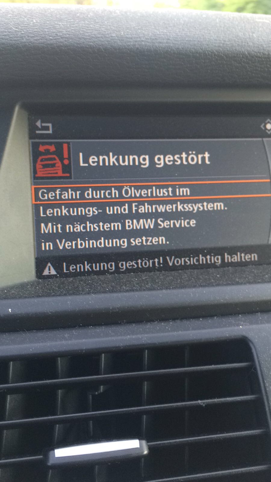 podla hlasky je to unik oleja z riadenia...poskodenie riadenia (Lenkung), pripadne podvozku (Fahrwerk)...skusenosti s tym nastastie nemam ale isto odporucam BMW, pripadne iny servis co najskor.