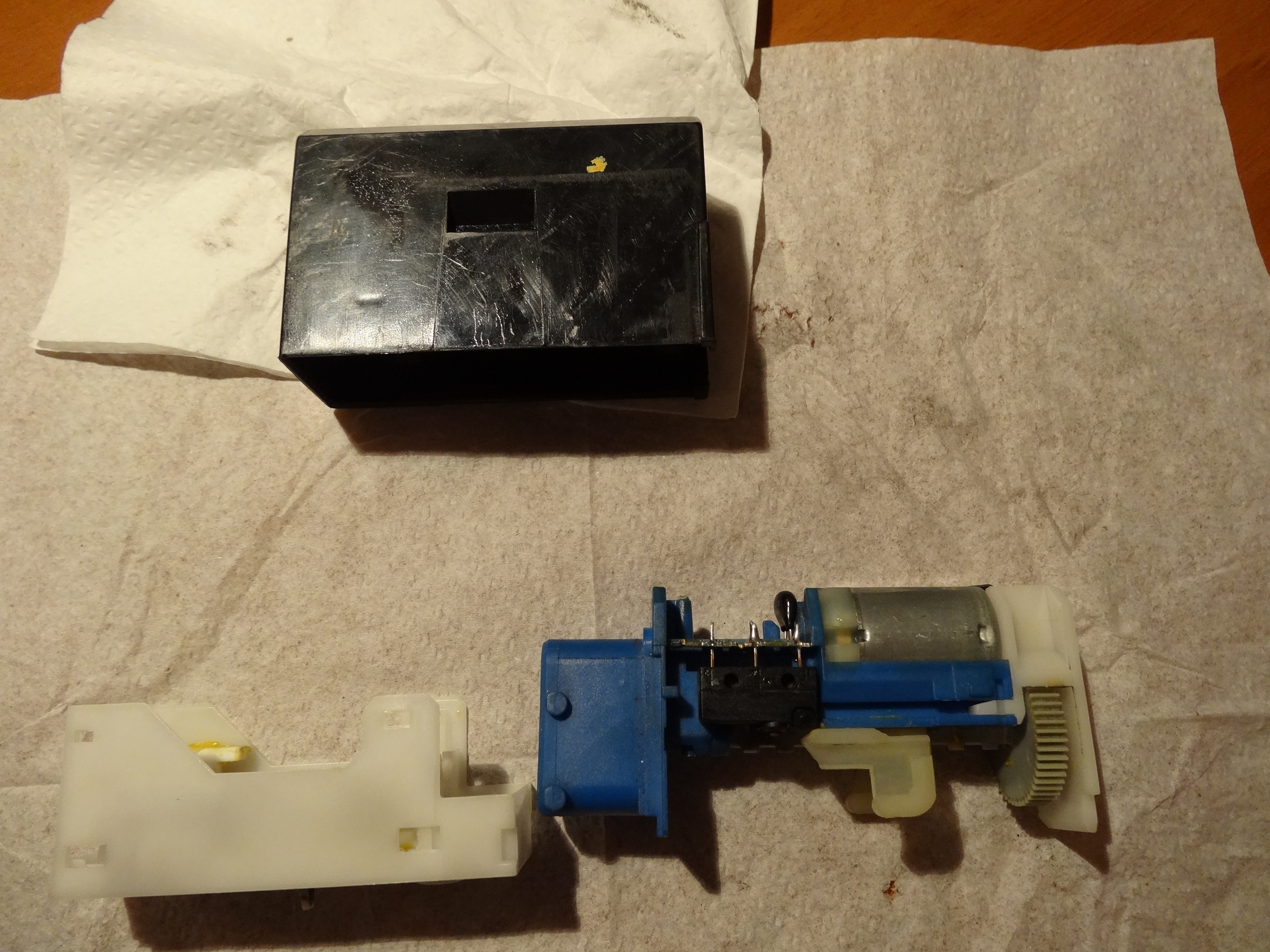 Medzitym som este prisiel na to, ze ta biela spodna cast tej krabicky funguje aj ako doraz pre motorcek, bez tejto casti motorcek roztlaci tu srobovnicu a potom sa to zasekne...