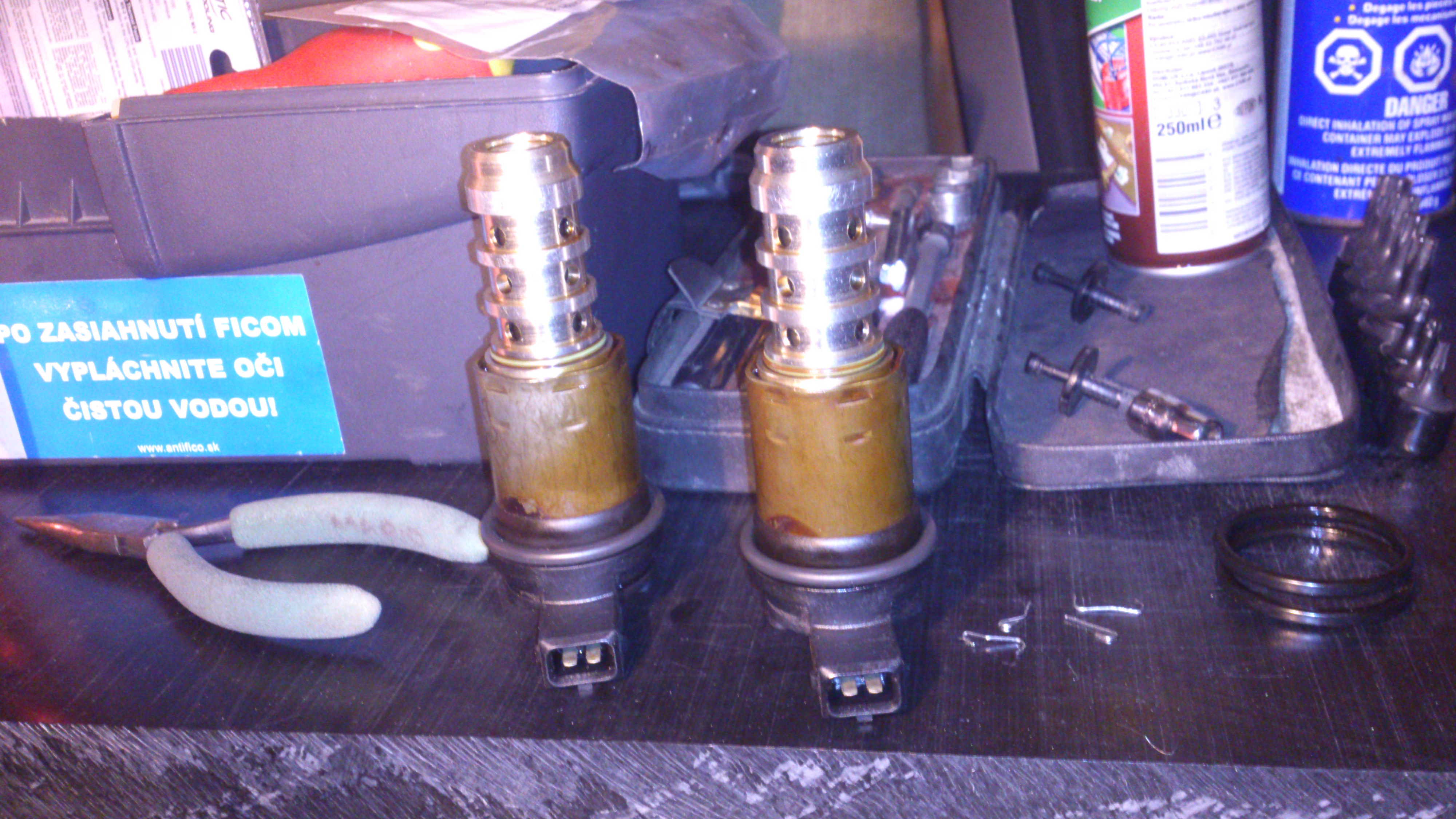 a ako bonus som si doprial pretesnenie solenoidov ktore su vpredu na motore - stare tesnenia na nich (tie velke) boli zkrehnute na plast - ako som sa ich pokusil stlacit tak sa mi rozdrtil v ruke - skutocne extra krehky plast. Necudujem sa ze mi tade tiekol olej.. tie vnutorne tie mensie boli celkom fajn. Kazdopadne som vymenil co sa dalo.