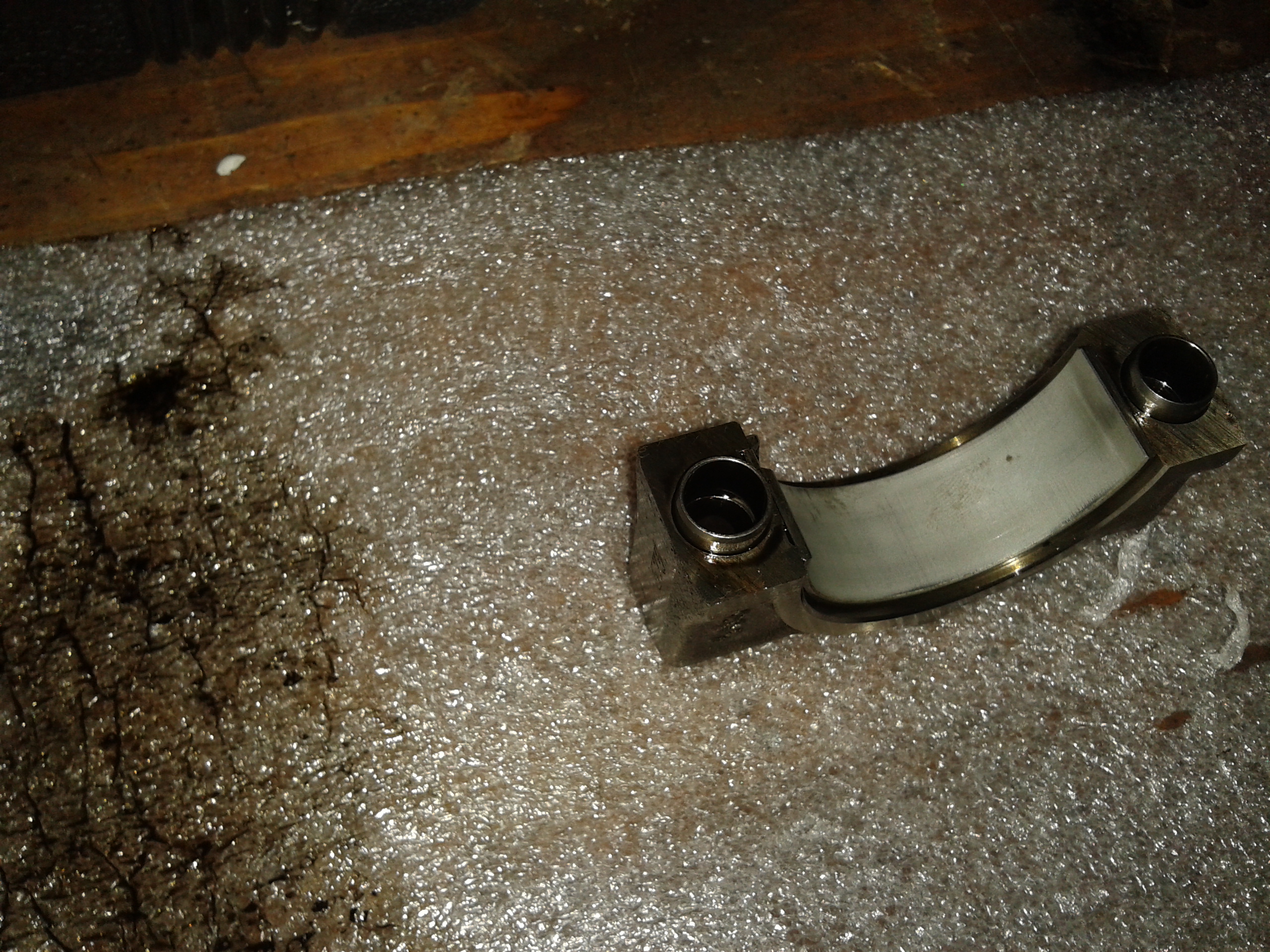 takze pani, liatina je tak sfarbena od vyroby , tak sa sfarbi pri bruseni .... povedal mi to 83 rocny mechanik ,,, ze aj na starych zetoroch to je tak isto zafarbene hned ako vydu z vyrobnej haly,, dal som dole ojnicne loziska, su trochu sedive, co znaci opotrebenie ale opotrebenie lozisk je rovnomerne,, dal som dole aj veko ventilov a vacky su OK nevybehane rovnomerne opotrebene (bez stredovej drazky) ... nie su fialove, ani uvarene, ani nemaju volu ... cize motor je na 100% musim si zaklopat :lol: ... axialne loziska kluky maju trosku volu ale objednal so ich vymenia sa aj ked vola je minimalna ... dakujem TT-simikovi za pomoc a cenne rady =D> a pripajam aj fotku ojnicneho loziska ... ale vsetko sa uvidi po STARTE , je naplanovany o 2 mesiace :-"