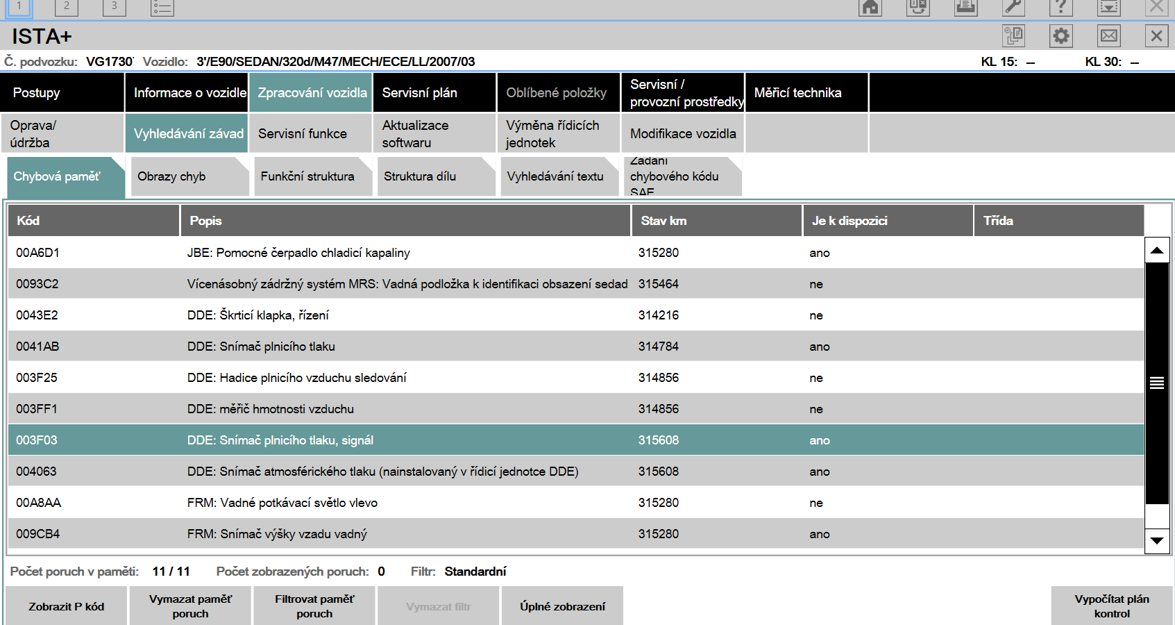 Takže dnes jak som to dal na diagnostiku sa objavili tieto chyby.