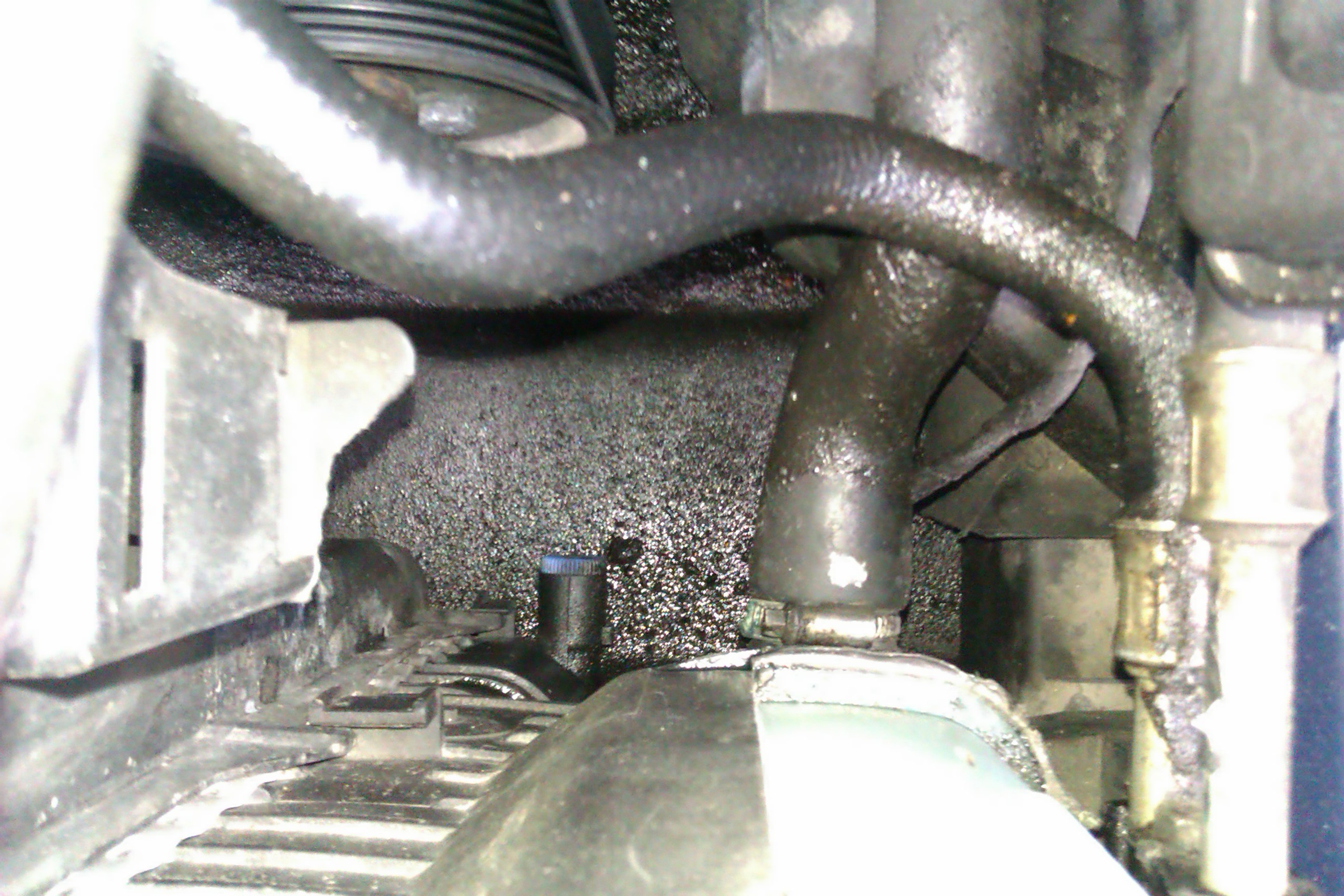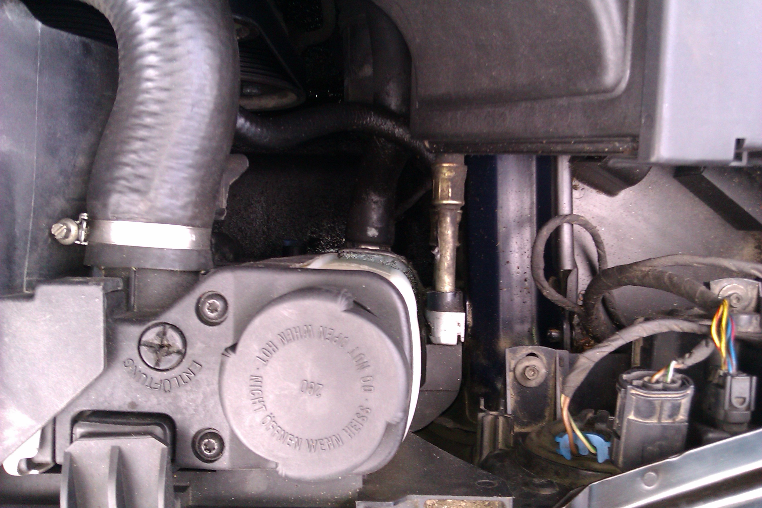 No porobil som zopár fotiek, problém zasa prestal na chvíľu a ani nebolo vidieť žeby klesol na riske, napriek tomu mám niečo rozliate na spodu tak som len chcel vedieť či to môže byť ono alebo tečie všeličo iné... je to hneď pod nádržkou na chladiacu.