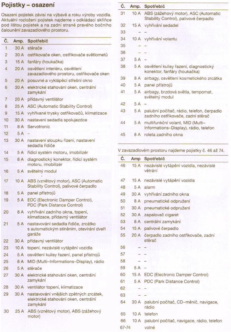 napriklad na 45 positka je spoločna pre vyhrev sedadiel a roletu zadnu.. (kedže ju spina sv. 15) a ešte som nevidel 8A poistku.. ale len 5, 7.5, 10, 15, 20, 25, 30A...