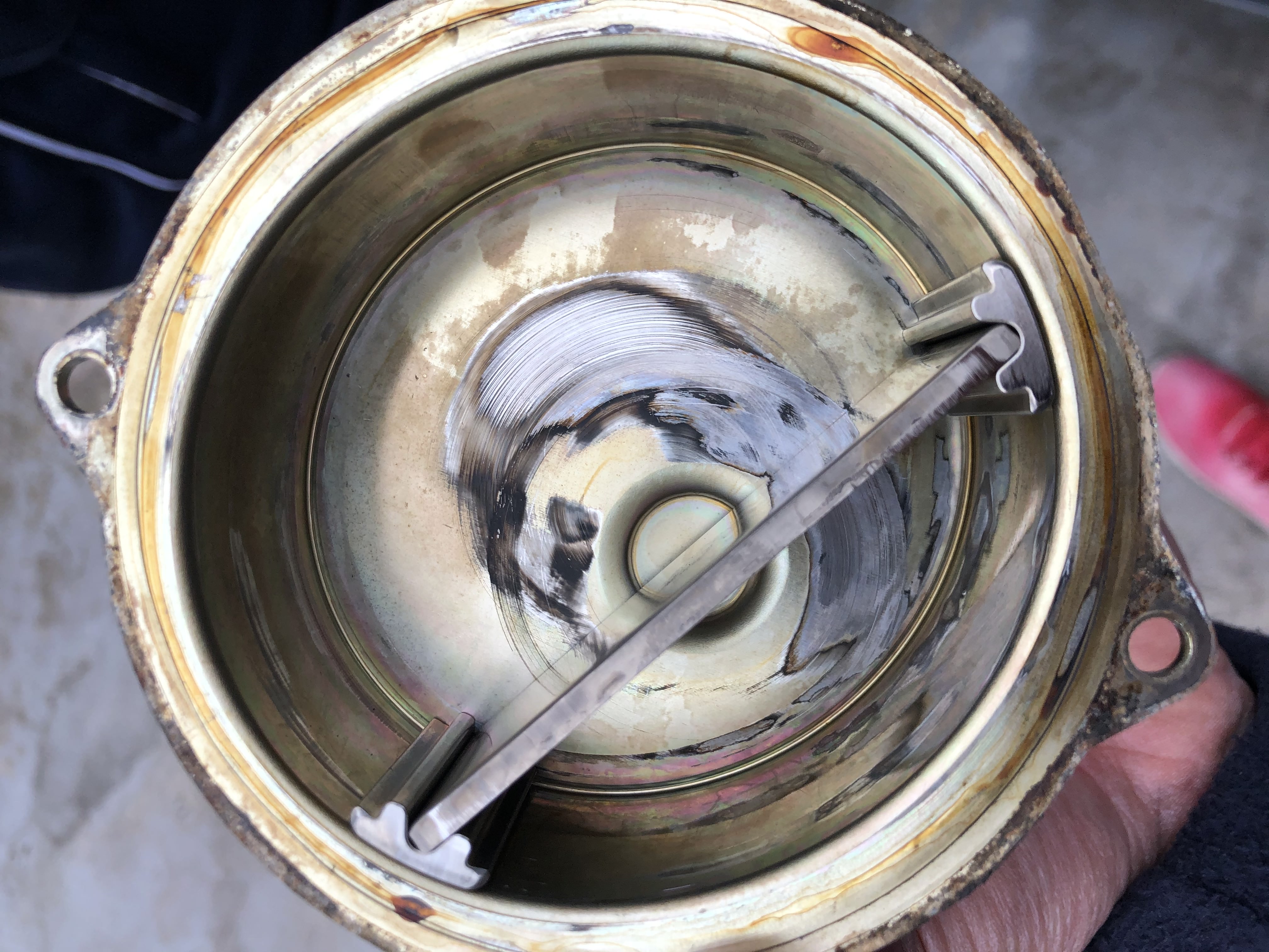 Na tom opotrebeni nic horibilne nieje, takto to maju vsetky E60-ky.... je tam klzne trenie mazane olejom a po case sa povrchova pozinkovana vrstva vyderie,..