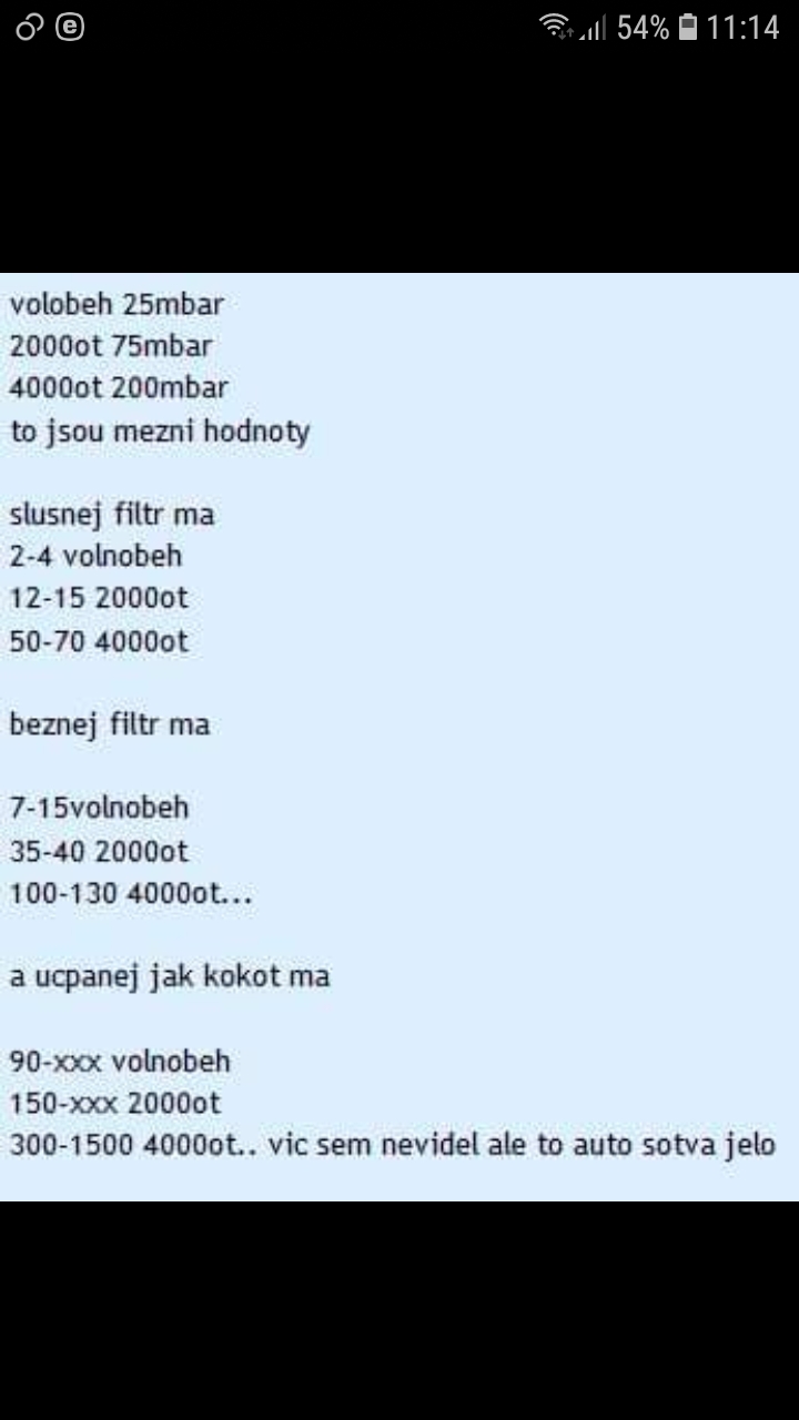 LukLuk napísal:U mňa to je iné, auto nemá výkon pri vyšších otáčkachU mna problem nebol s vykonom ale hlasku s particular filter mi zacalo vyhadzovat na co som zistil ze cistenie neprebehlo kvoli nizskej teplote motora 59 stup. Na to som menil termostaty oba a nasledne hlaska v diag plug cize zhavice ktore som menil i s riadiacov jednotkou i tak mi regneneraciu nespustilo. Nakoniec sme zistili ze je to cidlom dpf cez ntb mi to nutene zregeneroval na dialnici a hlasku mi uz auto nevykazuje