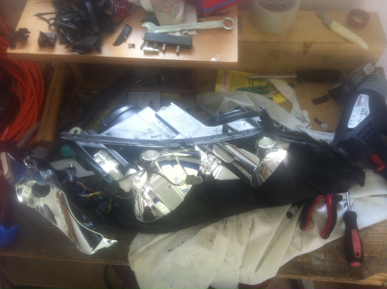 Na margo rozoberania svetla - je dobre, ze sa to tu kolegovi podarilo spravit, kedze mal dve svetla, tak si moze dovolit na oboch poskodit tu opacnu cast :) .. takze ano, takto sa to da... ale nepustal by som sa do toho, ked clovek planuje rovnake svetlo aj poskladat...