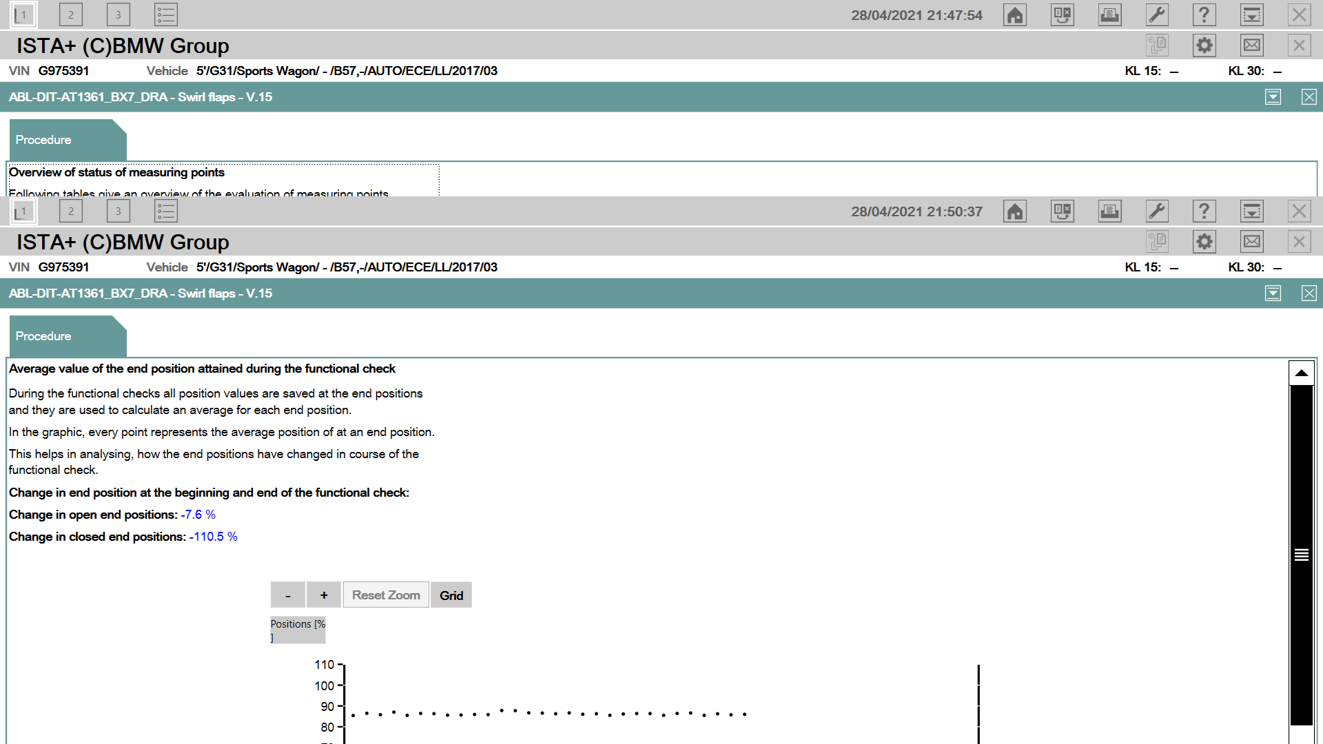 Nasledne som teda dal cez INPU zmazat chybu, zresetoval adaptacie pre MAF a dal robit fukcny test klapiek. Ten bezal ako je vidiet na foto, ale pri 69% spadol. To som prisudzoval kablu/SW, kedze som aspon vedel, ze motorcek funguje a klapkami vie otacat.