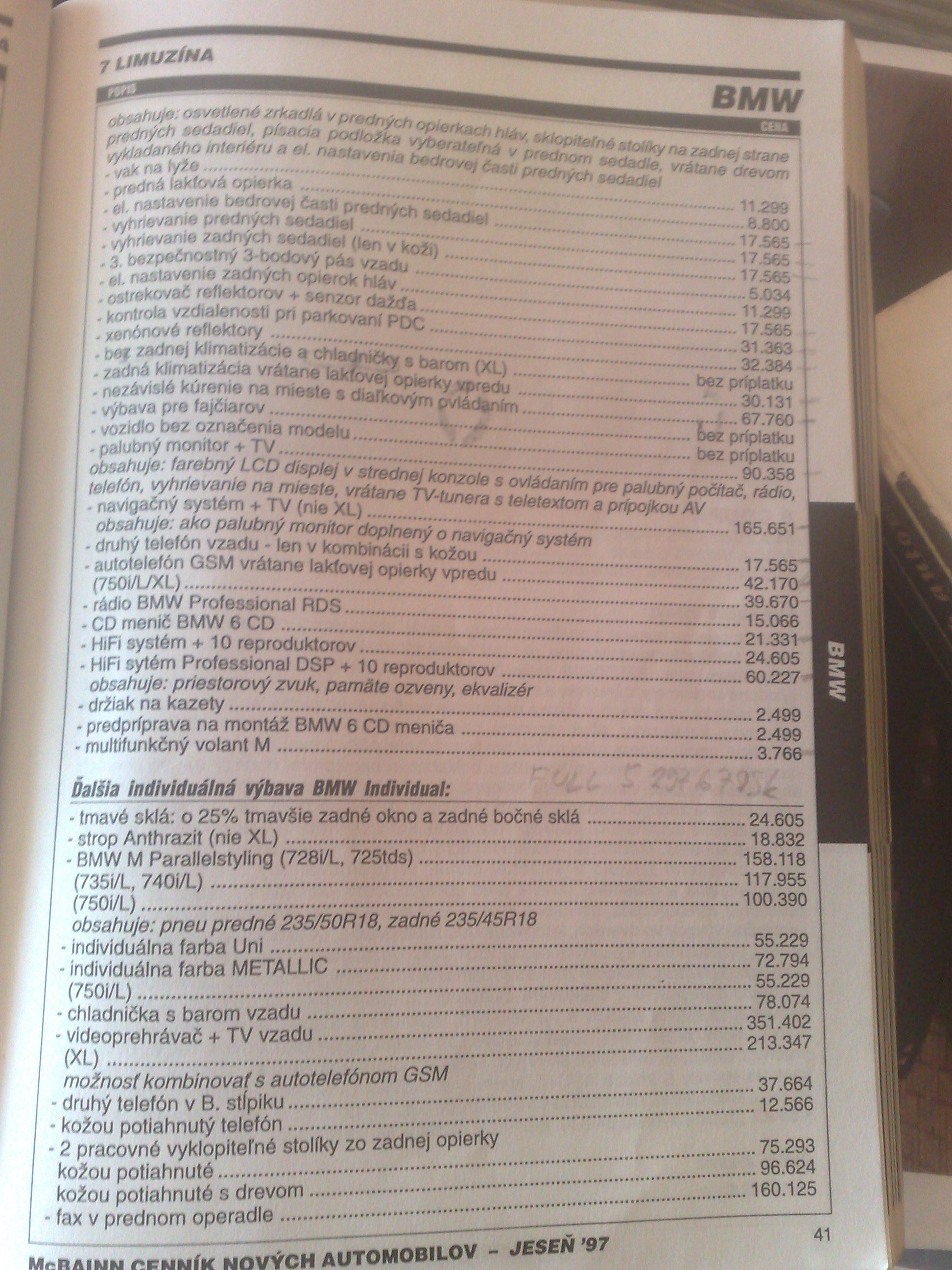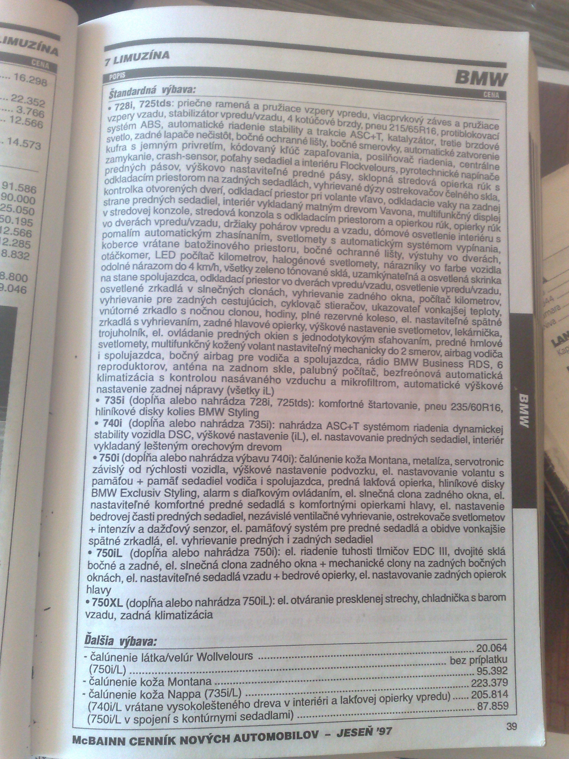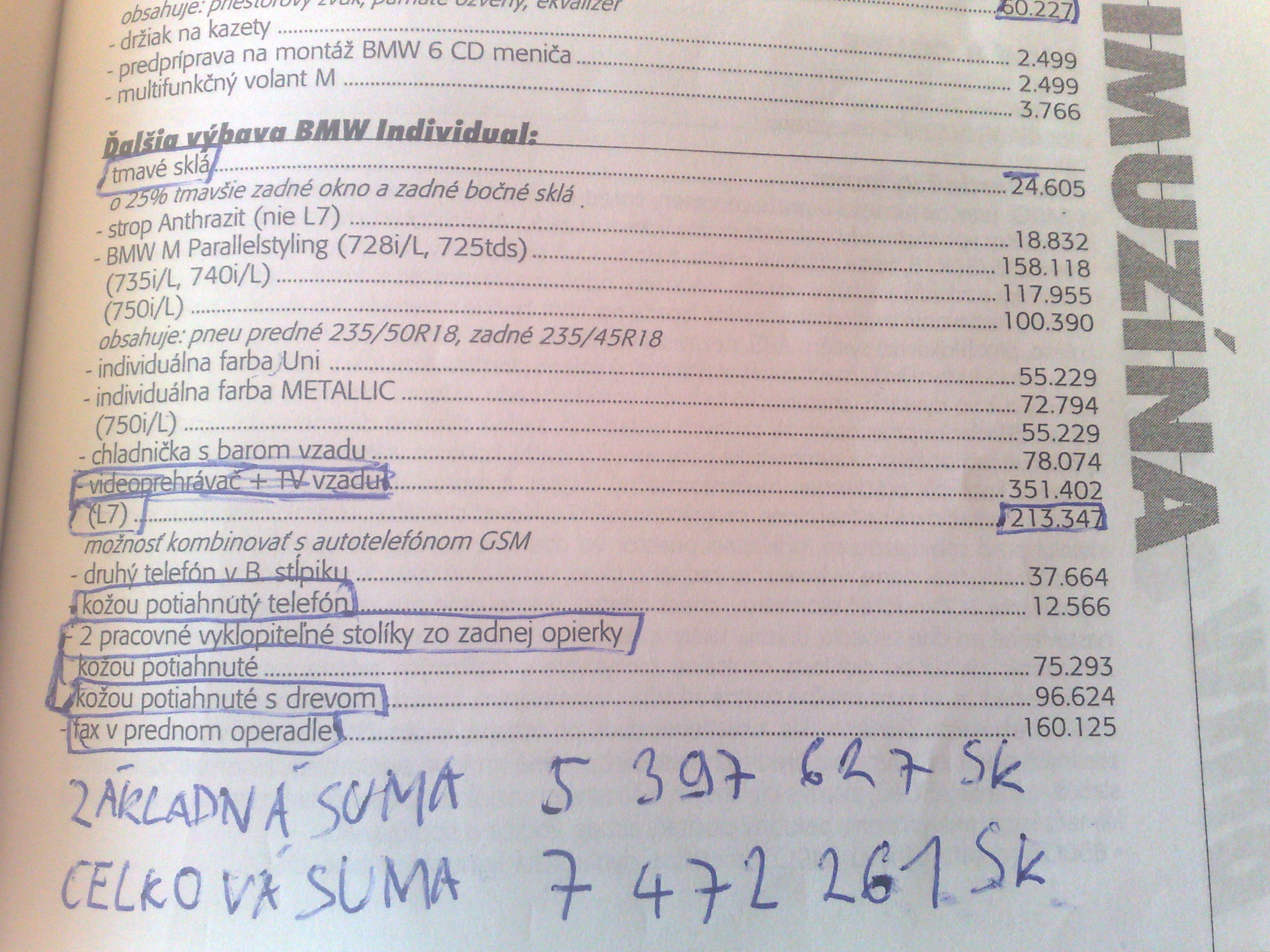 Takze tu je POFACELIFT konkretne rok 1999 ...tie ramceky si nevsimajte to som len kedysy davnejsie chcel zistit kolko by stala FULL vybava ked si vsimnete na konci tak to stupne zo zakladnej ceny 750iL ktora stala 5,4mil SK na 7,5mil SK :lol: