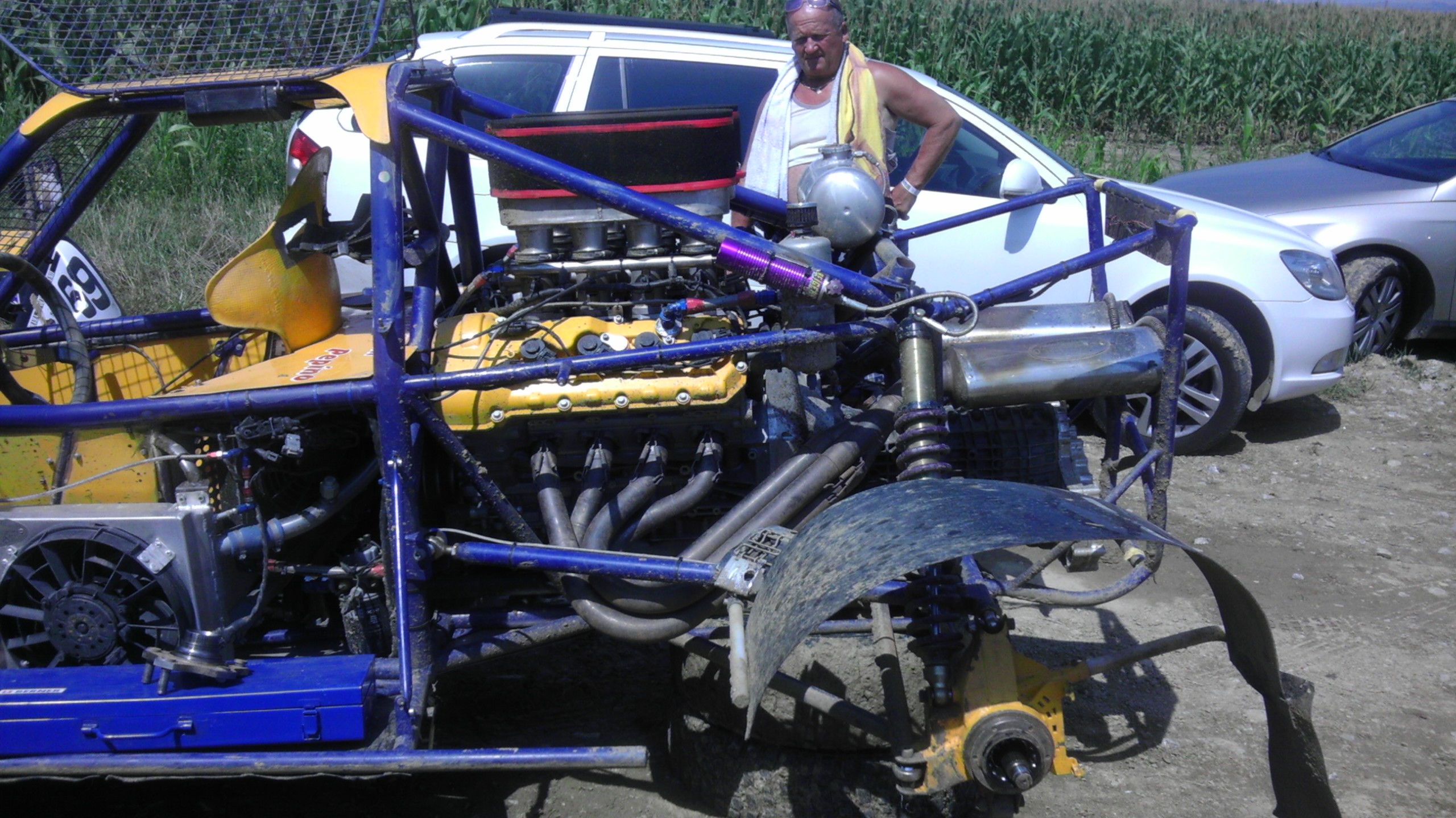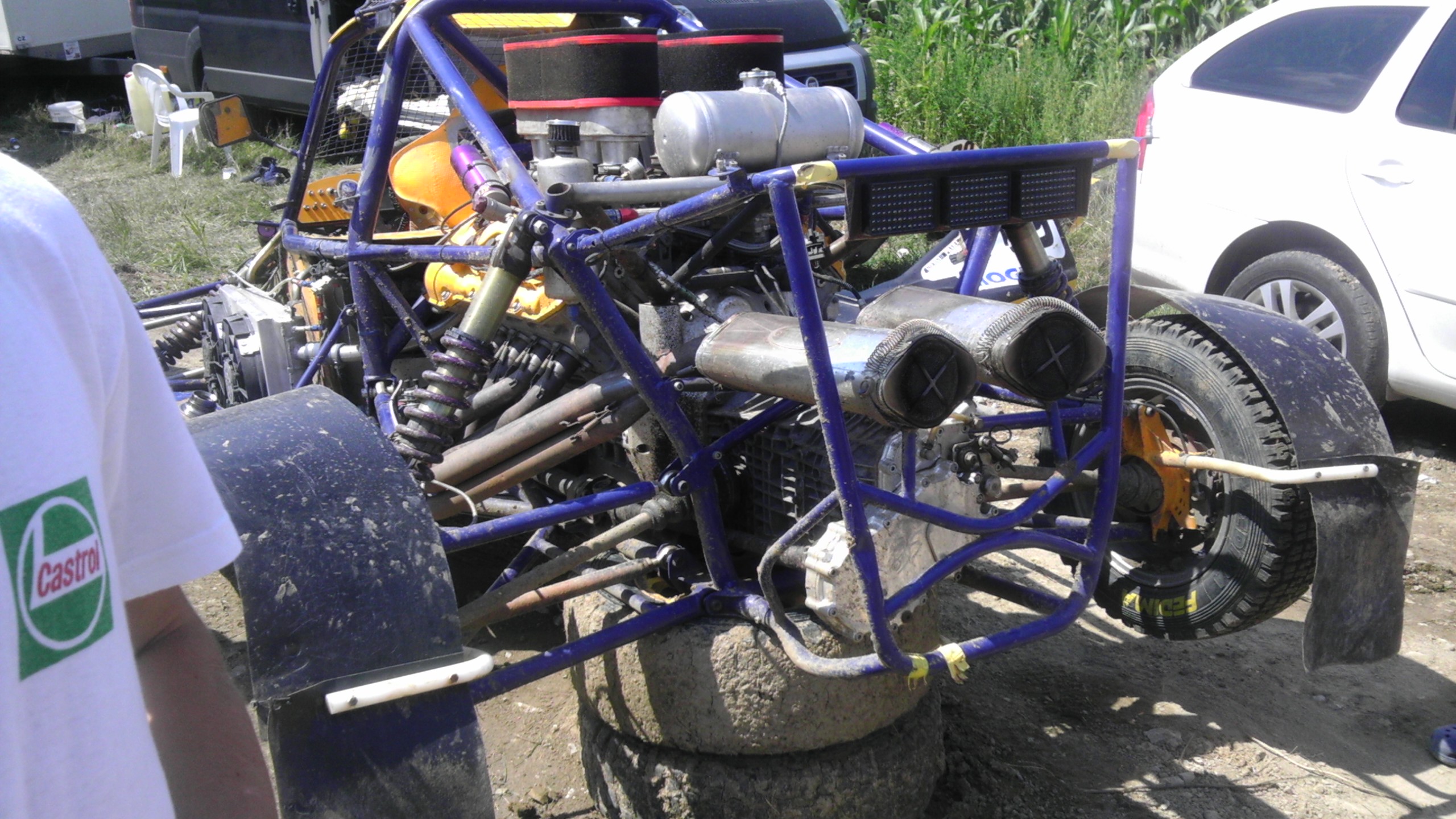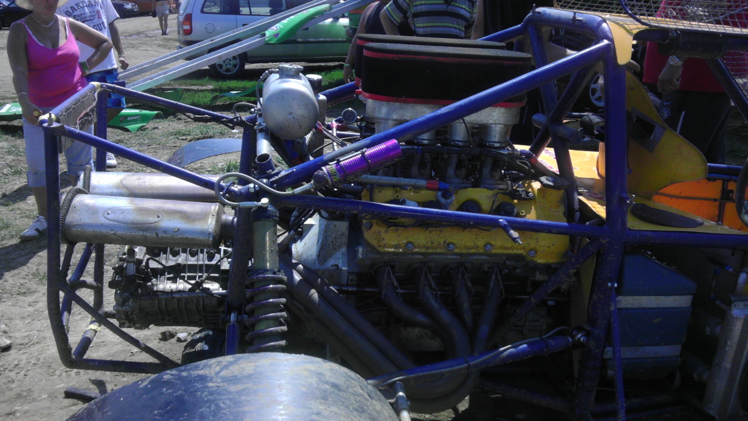 ...auto islo perfektne a o zvuku ani nerozpravam...typek bol z Prahy a auto vyzera, ze je urobene na dost profi urovni, sekvencna prevodovka 4x4 na zakazku, predny diferak na zakazku, sanie na zakazku, na kazdu stranu valcov jeden chladic, nabuchane elektronikou, proste pop***...v Senici som bol na autokrose prvy krat, boli tam majstrovstva europy, takze preto taketo vynimocne auta...