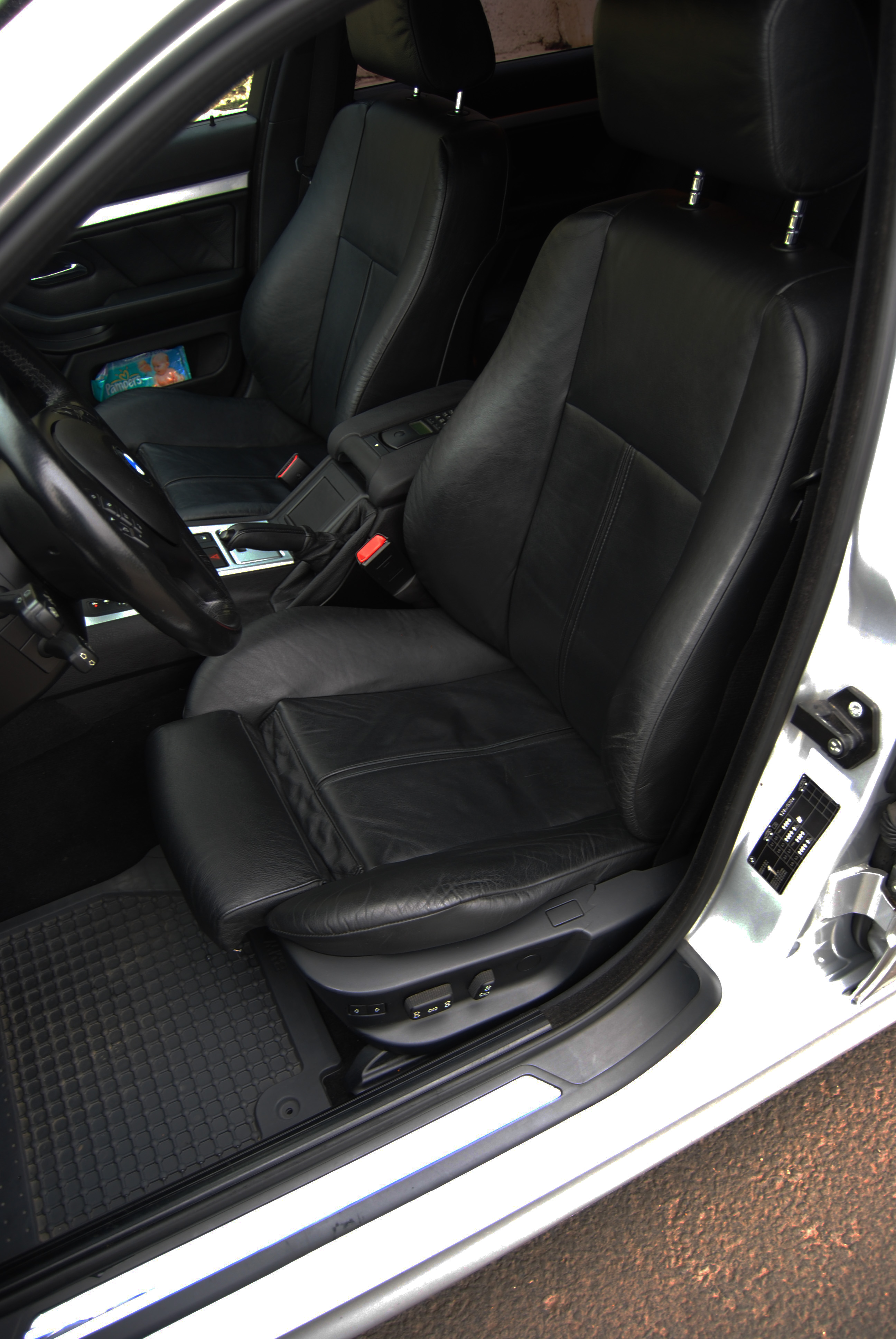 tak pridám aj ja moju terajšiu kočku, je to 530dA touring r.v. 2003. Original znížený športový podvozok, vzadu vzduchové vankúše, webasto, velká navi, športové vyhrievané sedačky v el. + isofix vzadu, čierny strop, parkovacie senzory predok zadok, pamäť sedadla volant a späťáky, multifunkčný volant, telefónna sada, svetelný senzor, dažďový senzor, xenony, JBL zosilovač+subwoofer 1100W, aux výstup, atd atd.