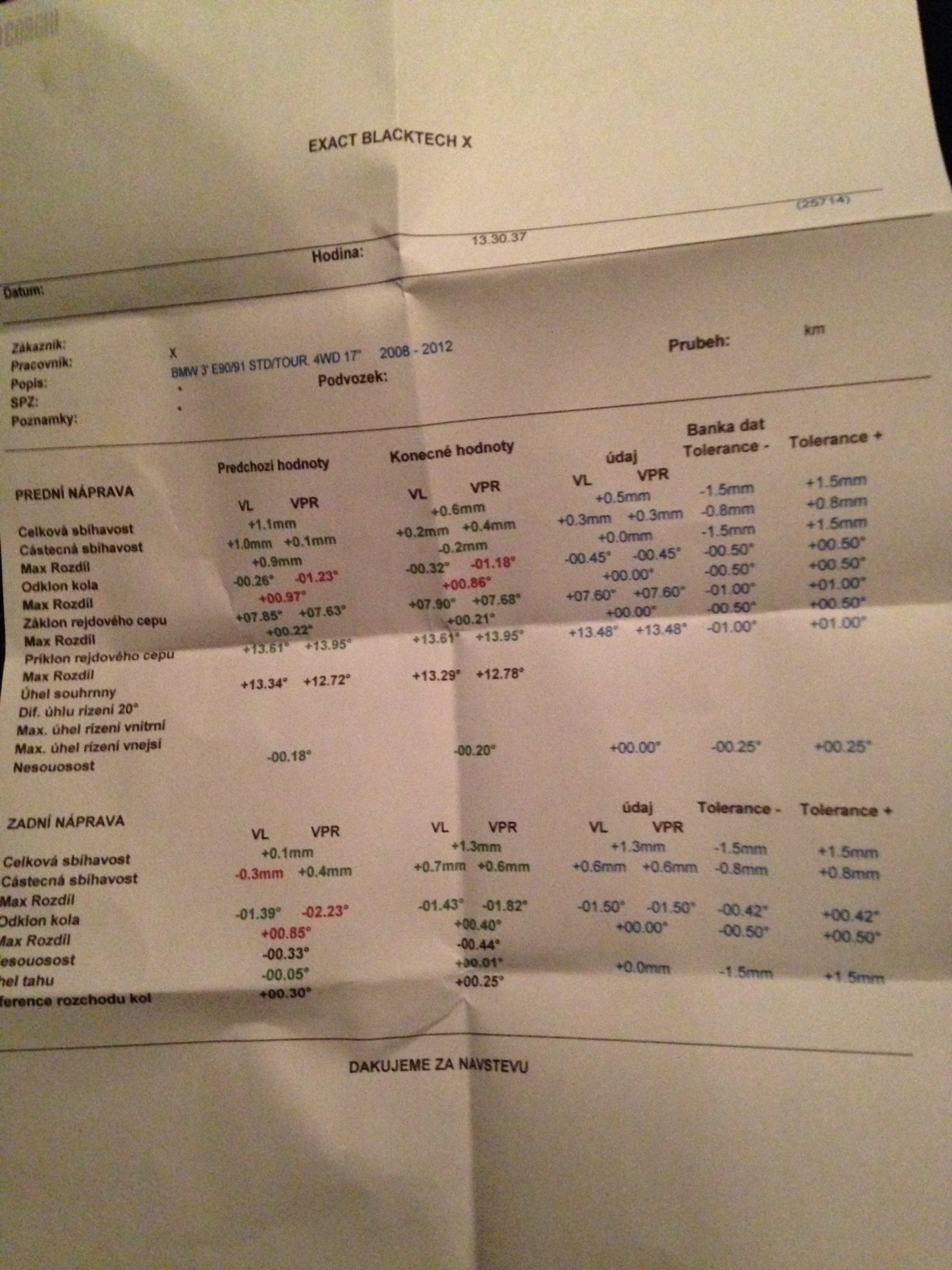Páni bol som na geometrii a na PP kolese mám odchýlku na odklone v servise kde mi robia geometriu mi povedali, že oni to nevedia nastaviť, lebo na to nemajú náraie, že toto mi nastavia len v BMW. Chcem sa opýtať či je vôbec možné to nastaviť? Nechcem zbytočne platiť v BMW za geometriu a nakoniec mi aj oni povedia, že sa to nedá. Ďalšia otázka je, že prečo sú na všetkých kolesách odklony v poriadku a len na tomto jednom je taká odchýlka? Je pravda že na jar som trafil na pravú stranu dosť veľkú jamu, v ktorej som ohol disky a sekol pneu ale hneď potom sa robila geometria a odklony boli v norme... A pred mesiacom som dával kontrolovať v BMW nápravy a všetko je v poriadku žiadna vôla, to isté mi potvrdili aj na STK.