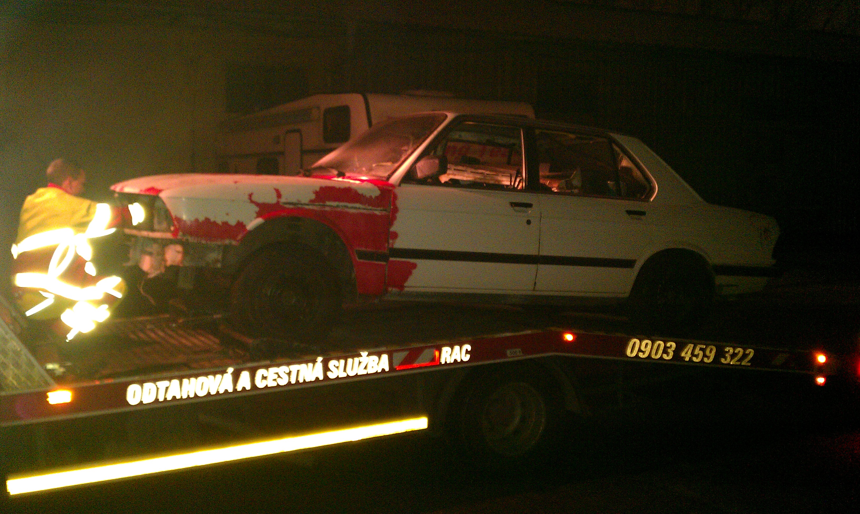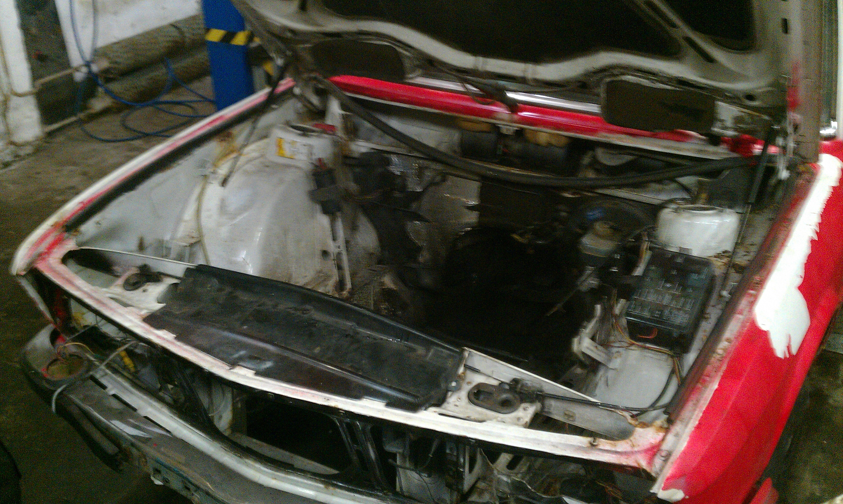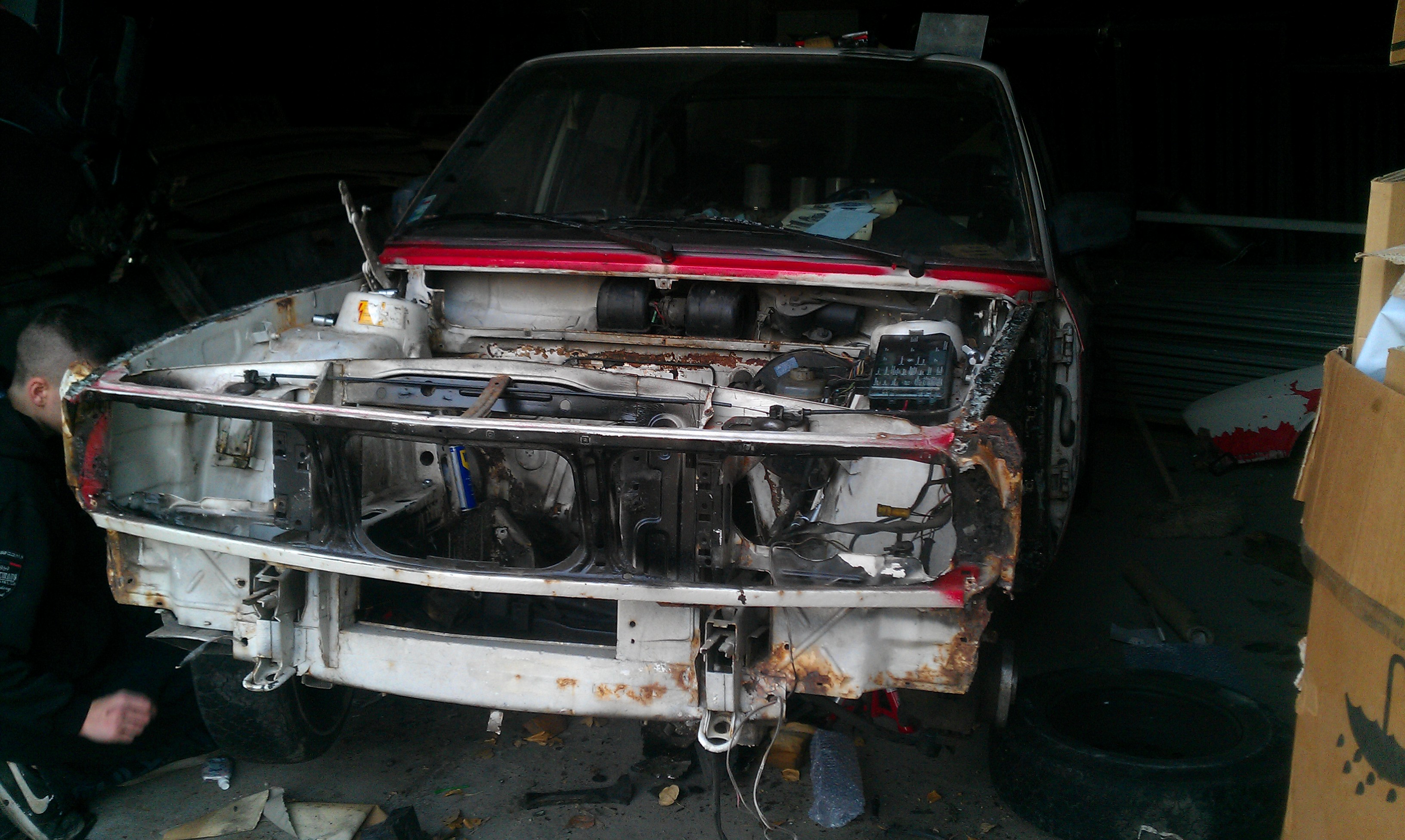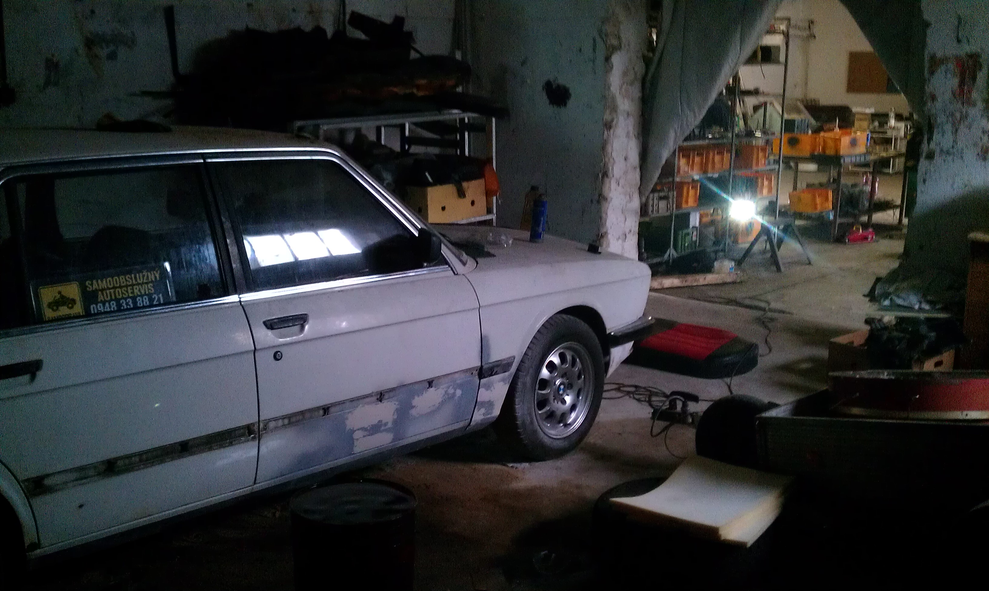 , mal som snim plany spravit to do cukrika, uz som nakupil kopec novych veci narazniky svetla masky kraviny proste, mal som plan ju dat do cervenej imolarot 2 ale ked som zacal striekat auto do cervenej farby aby som presiel KO v cervenej (docasnej farby) tak som zistil ze nema kompletne VIN cislo (vyhrdzavene) rozhodol som sa ju aspon vyvarit a dat teda do bielej nech neriesime KOcku, pri vyvarani som zistil ze to auto je z jednej strany o 2cm sirsie lebo tam majitel pred nami vygytoval cele auto (dobre spravene ale kopacku by som mu dal za to), blatniky neboli prisrobovane ale prilepene patexom