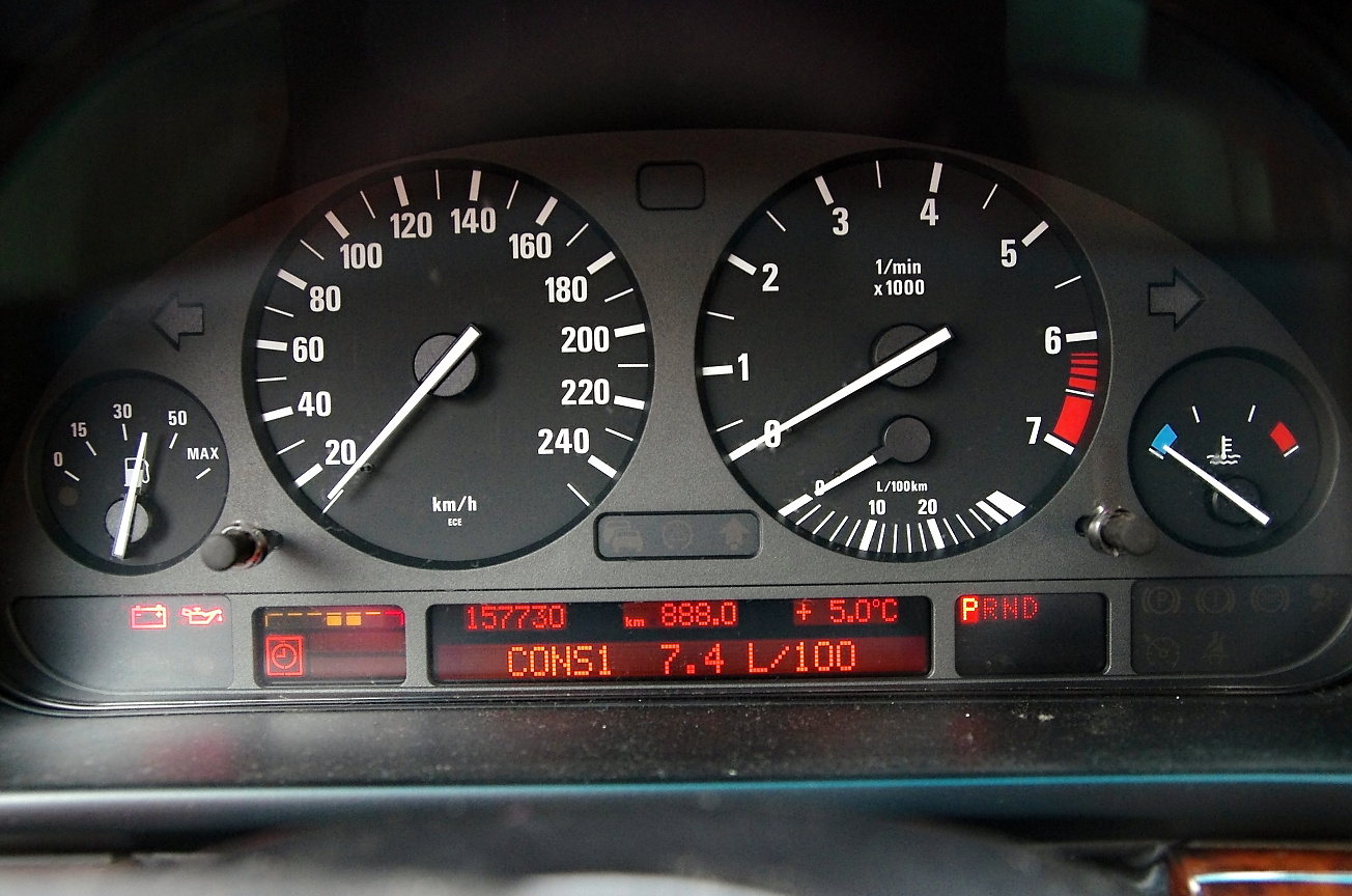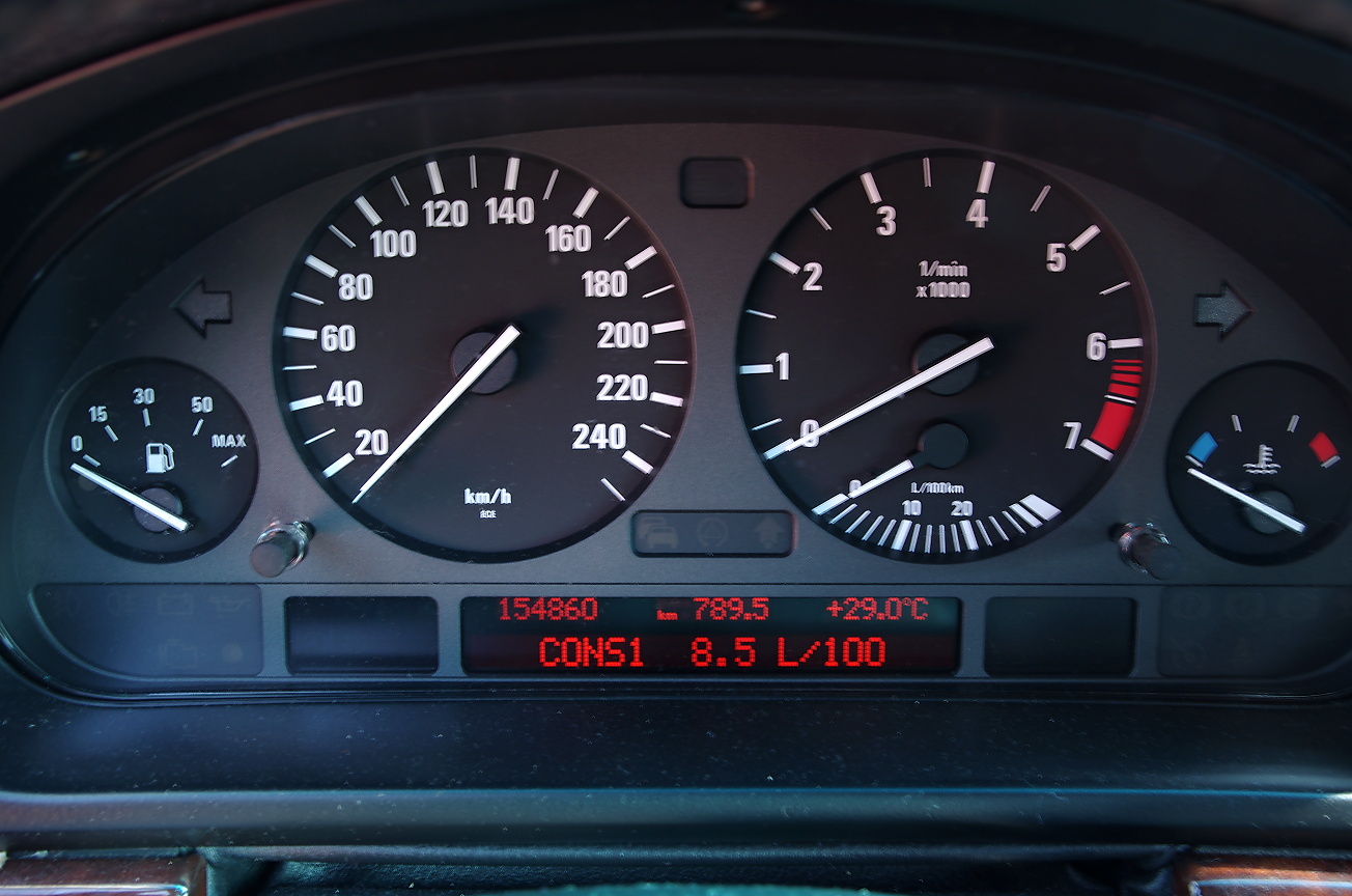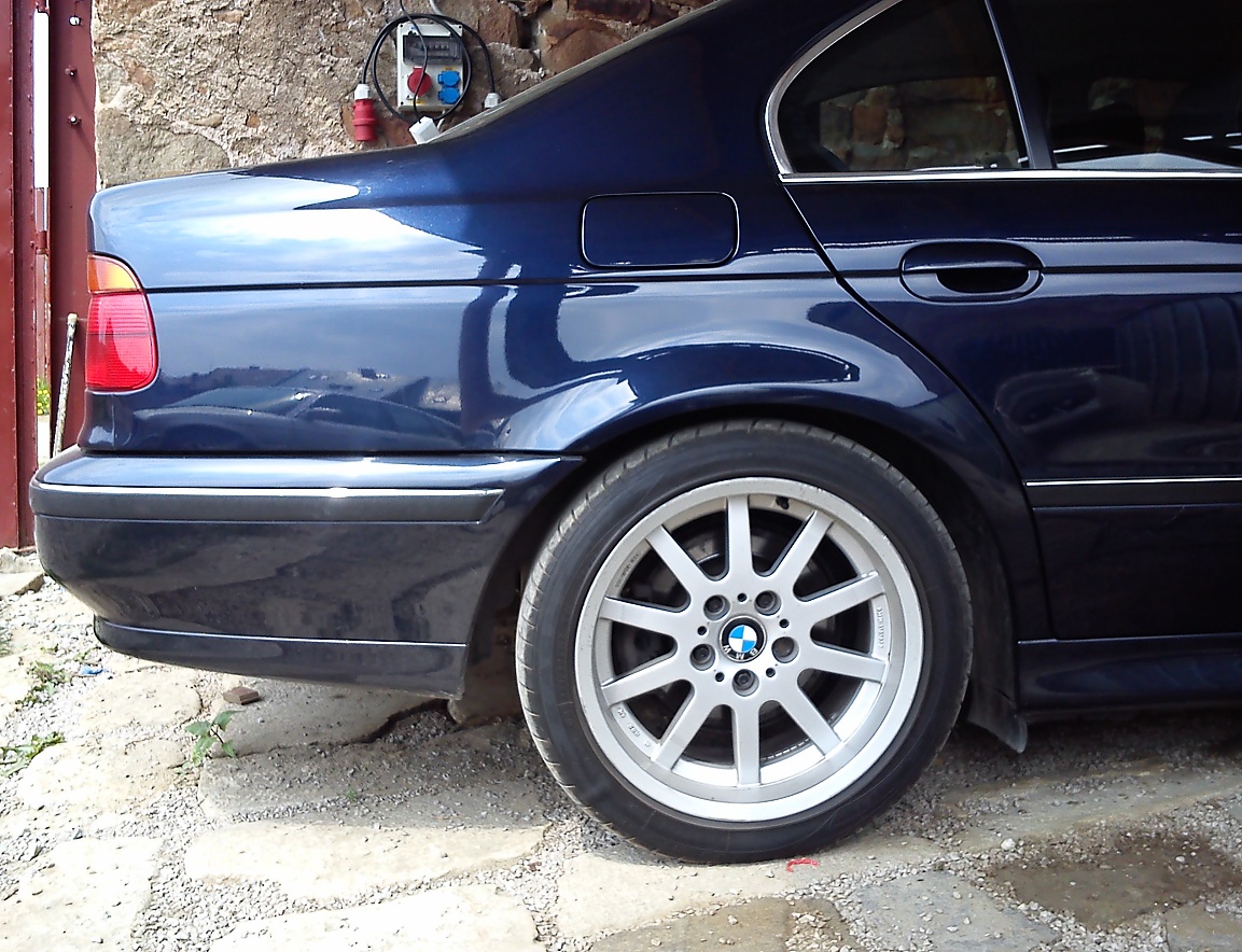 Minulý týždeň som sa vrátil z Nemecka a vyhodnotil 1888 km trasu. Ešte po diaľnici na Slovensku, a cez ľadom pokryté Donovaly bola spotreba na 7,7l/100km a neskôr klesla na 7,4l. Údaj na palubnom displeji súhlasí so spotrebou počítanou podľa tankovania. Podotýkam, že jazdím skoro stále s tempomatom! Keď som auto kupoval, bývalý majiteľ jazdil okolo 9,5l/100km na 17" kolesách a ja som to považoval za úspornú jazdu. :-) Takže uvažujem, kúpiť na leto 225/60R 15 pneumatiky a jazdiť s nimi (úsporne) po našich okreskách a 17" (sú, myslím si veľmi pekné) používať na dlhé trasy. Hliníkové 15" disky na leto mám teraz na E34 - tam pôjdu pôvodné pavučinky, ktoré dostanú nový lak.