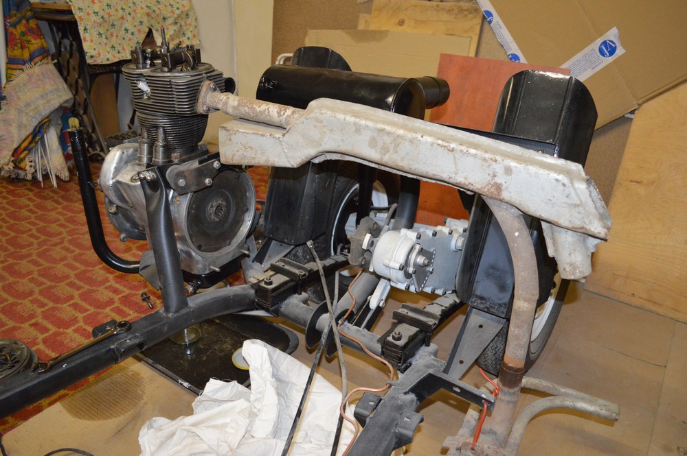 Finalizujú sa práce okolo motora, ešte sa rieši výfuk a nejaké maličkosti. Motorček už štartuje \:D/ a zvuk ma perfektný taktaktaktak :D . Pomaličky, ale isto, sa bude prechádzať na karosériu. Medzi tým všetkým sa pritúlalo pár ďalších aut do vozového parku - Opel 4ps Viersitzer 1928 a VW Chrobák 1200 1965. Pokiaľ by mal niekto záujem, tak Chrobák je na predaj. :)