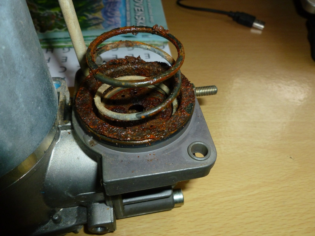 Tak po dlhšom čase pridám niečo aj ja.kedže mi už cca 3 týždne vypisovalo Niveu a fúkalo si to ako chcelo,no asi pred týždňom mi ostalo auto dole,kompresor sa už ani nepohol tak som sa rozhodol kupiť druhý.samozrejme zapojil som ten a čuduj sa svete čo sa stalo?nič.auto ostalo na zadných dorazoch.dnes som rozobral najprv svoj starý kompresor a trochu ho prečistil.vidno nanom že už má toho dosť za sebou.ALE,som ho opravil.síce je ho velmi počuť ale ide :smile: prikladám aj nejaké to foto.