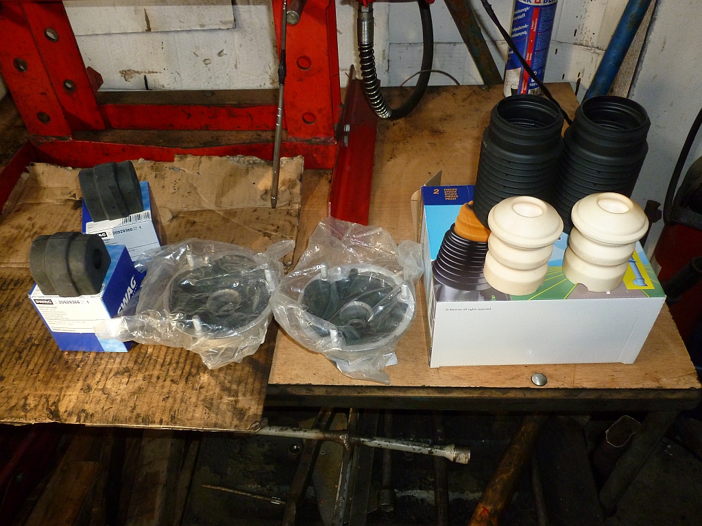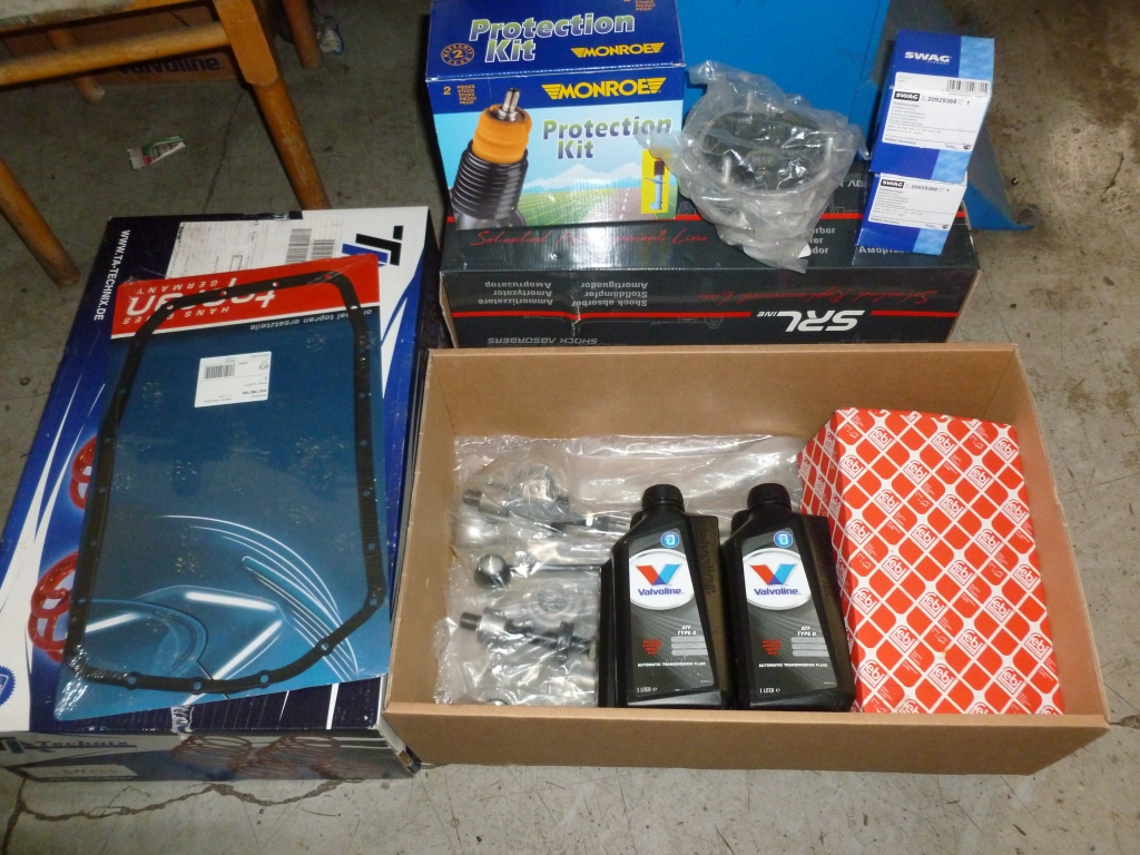 Takže robilo sa: Komplet predná náprava - vrchné a spodné ramená,tyčky riadenia,stabilizačné tyčky,tlmiče,uloženie+prachovka+dorazy,gumy na stabilizačnej tyči,olej v prevodovke+filter+tesnenie.