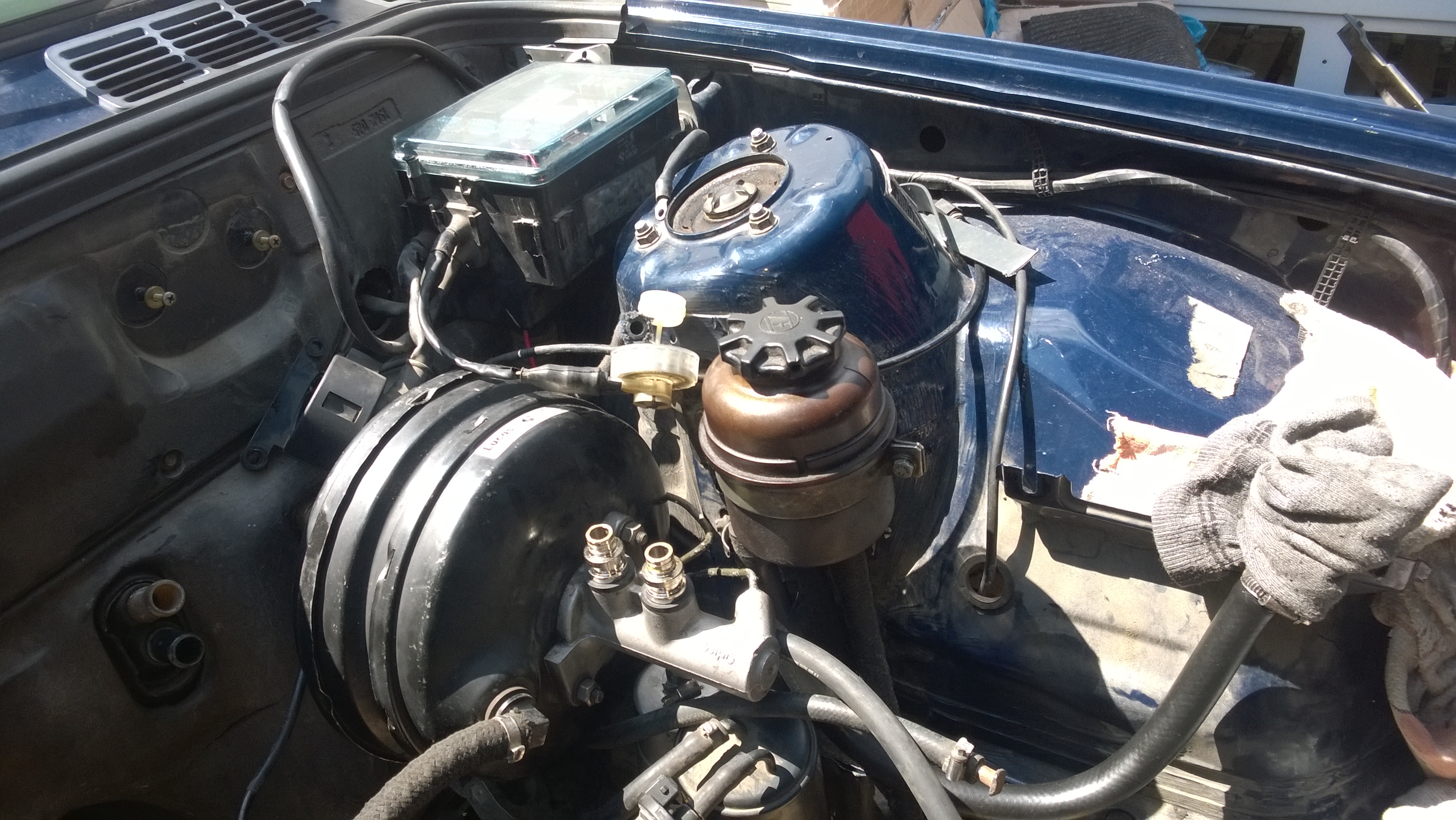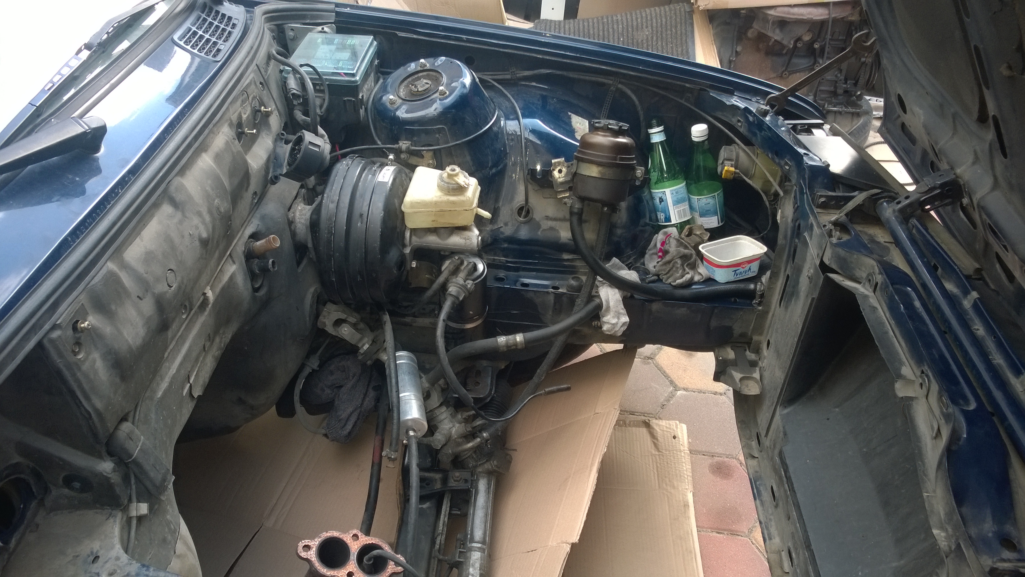 A tuto je môj motorový priestor s už namontovaným posilňovač z E34 V8