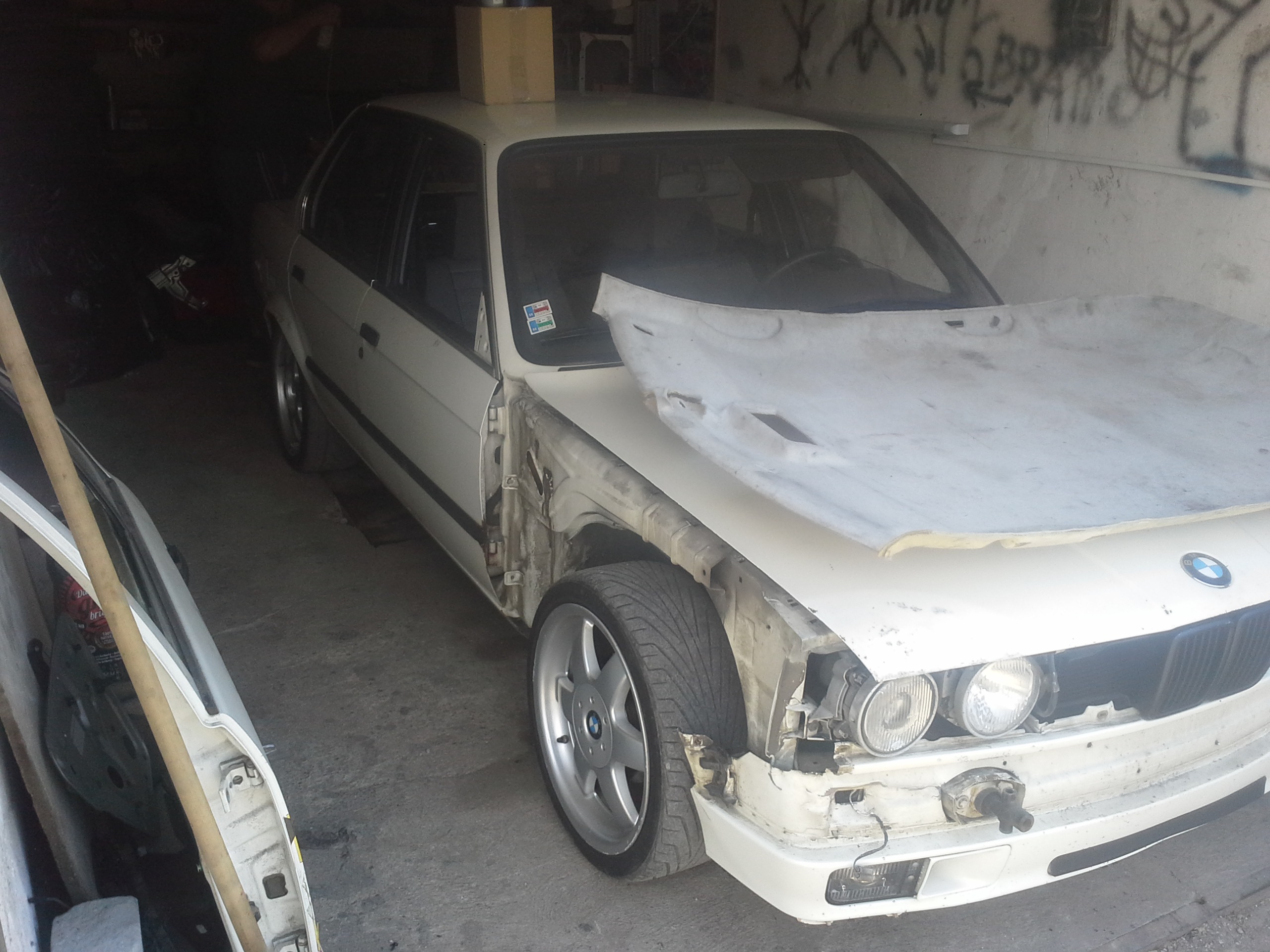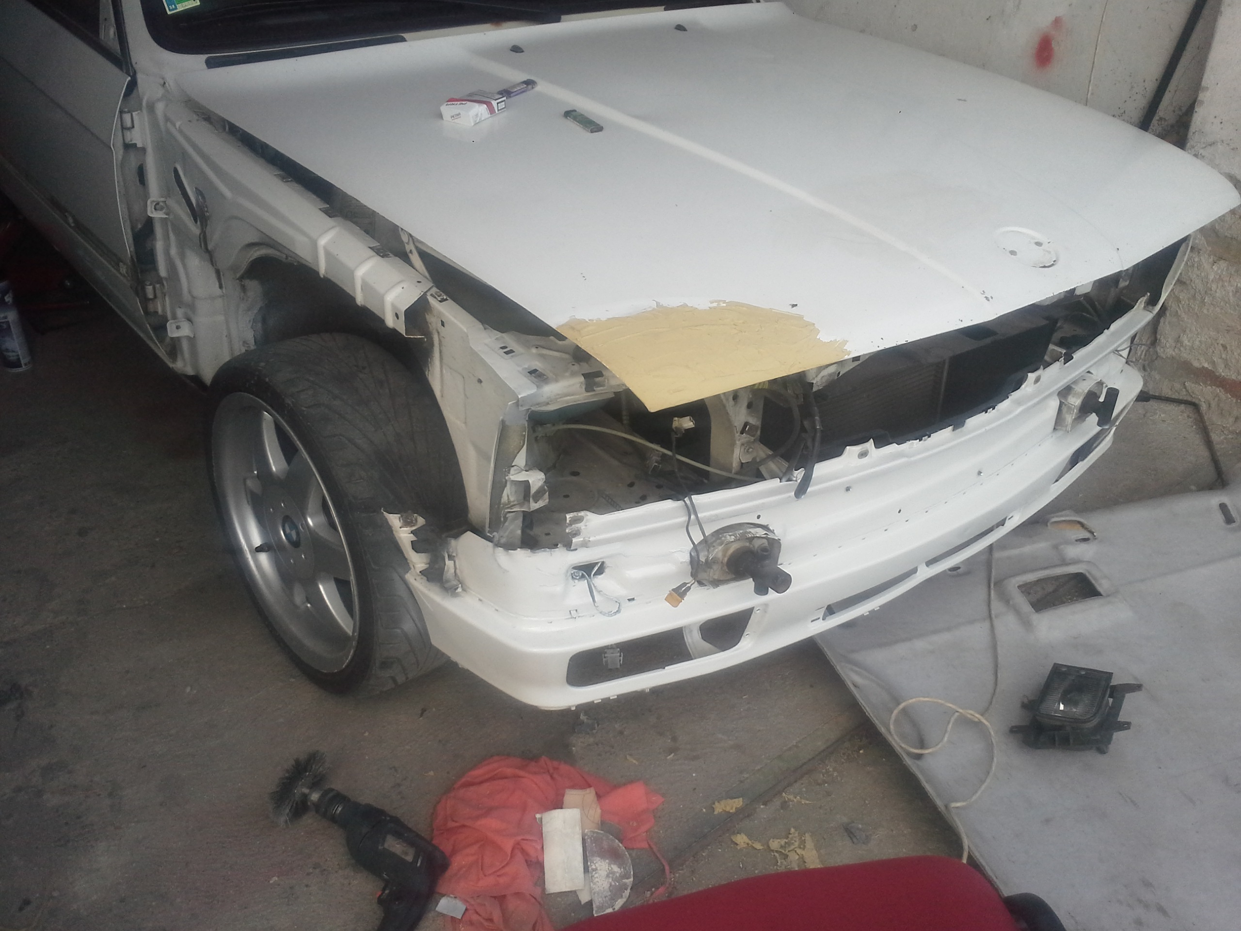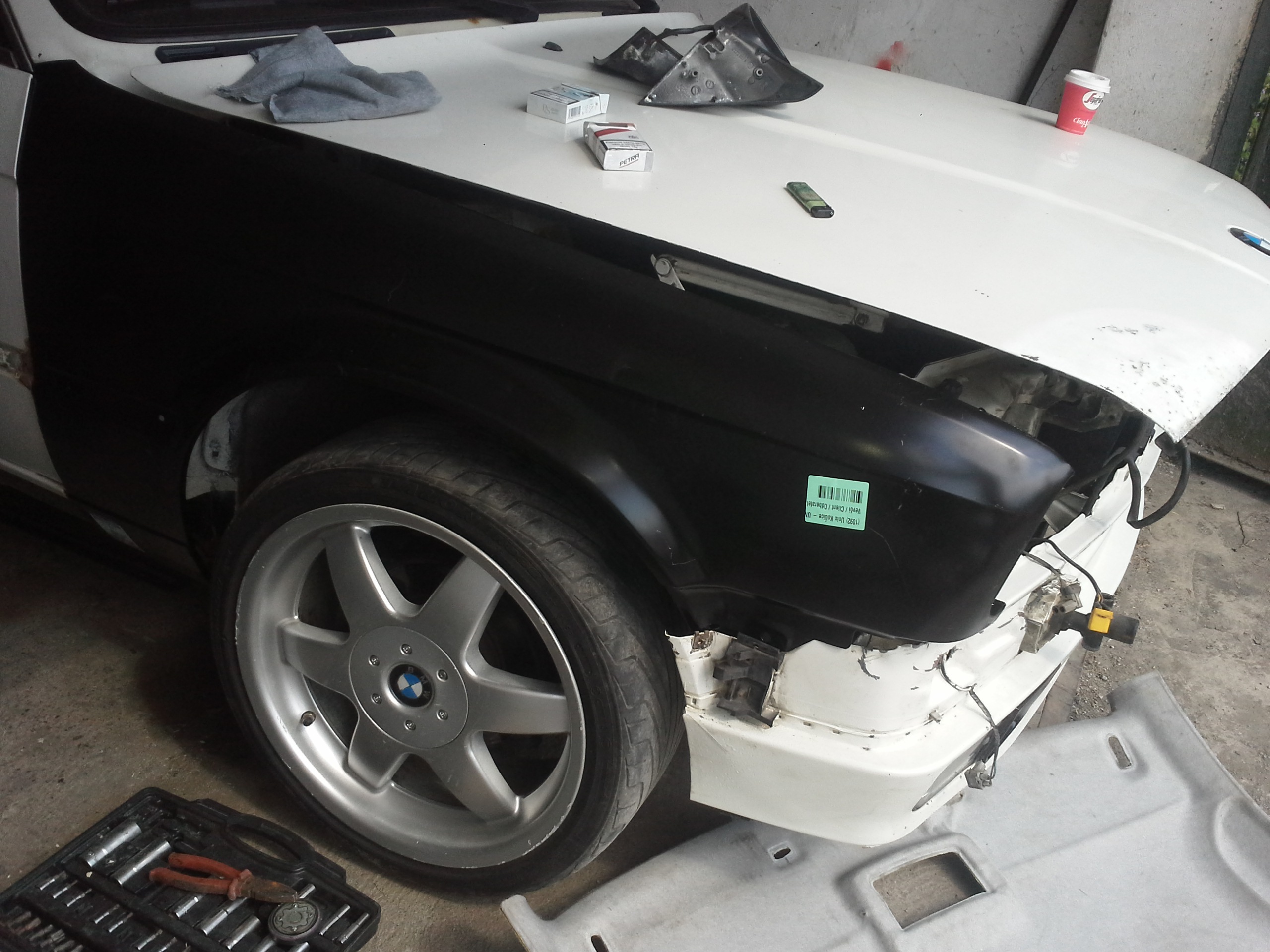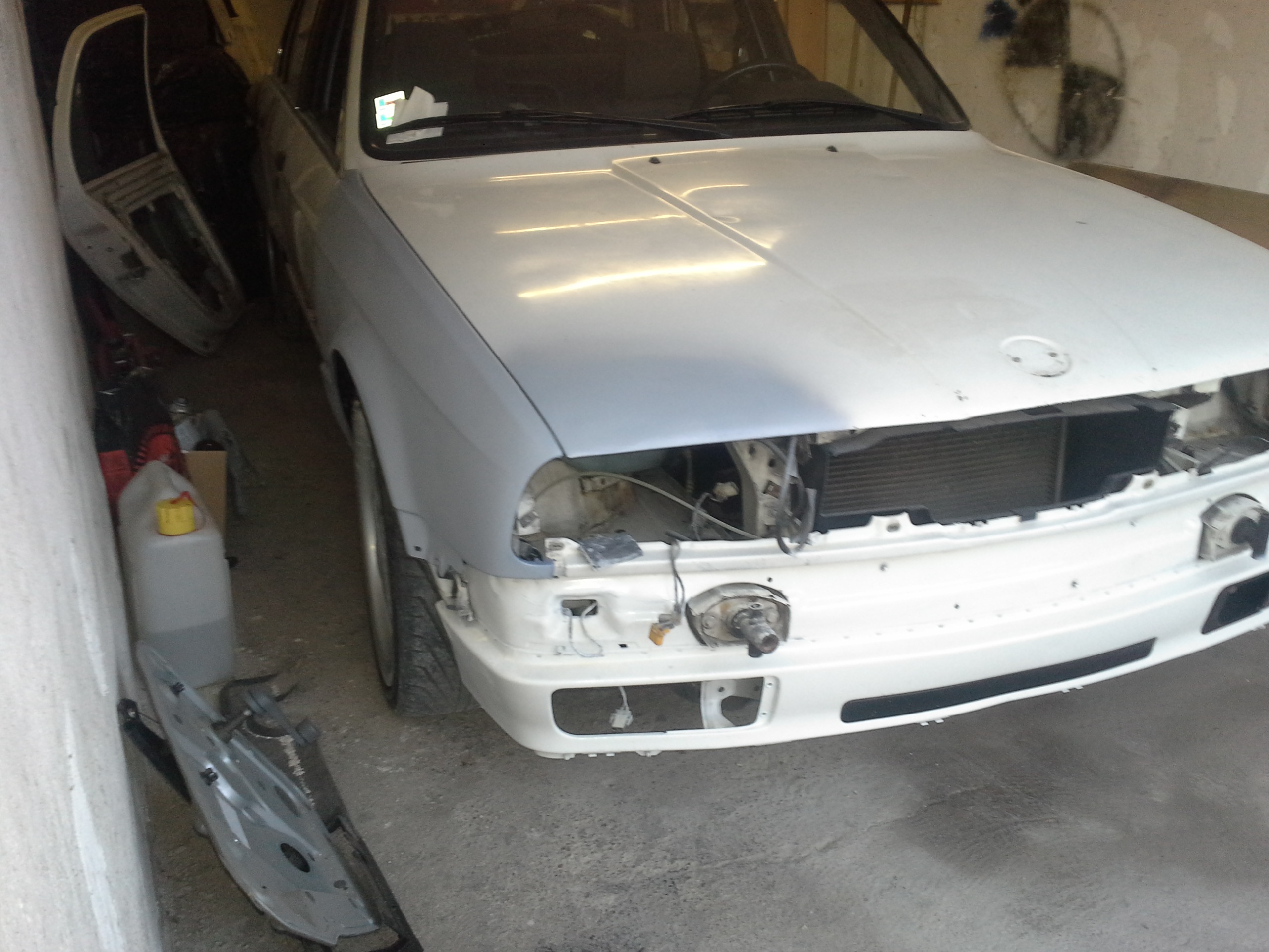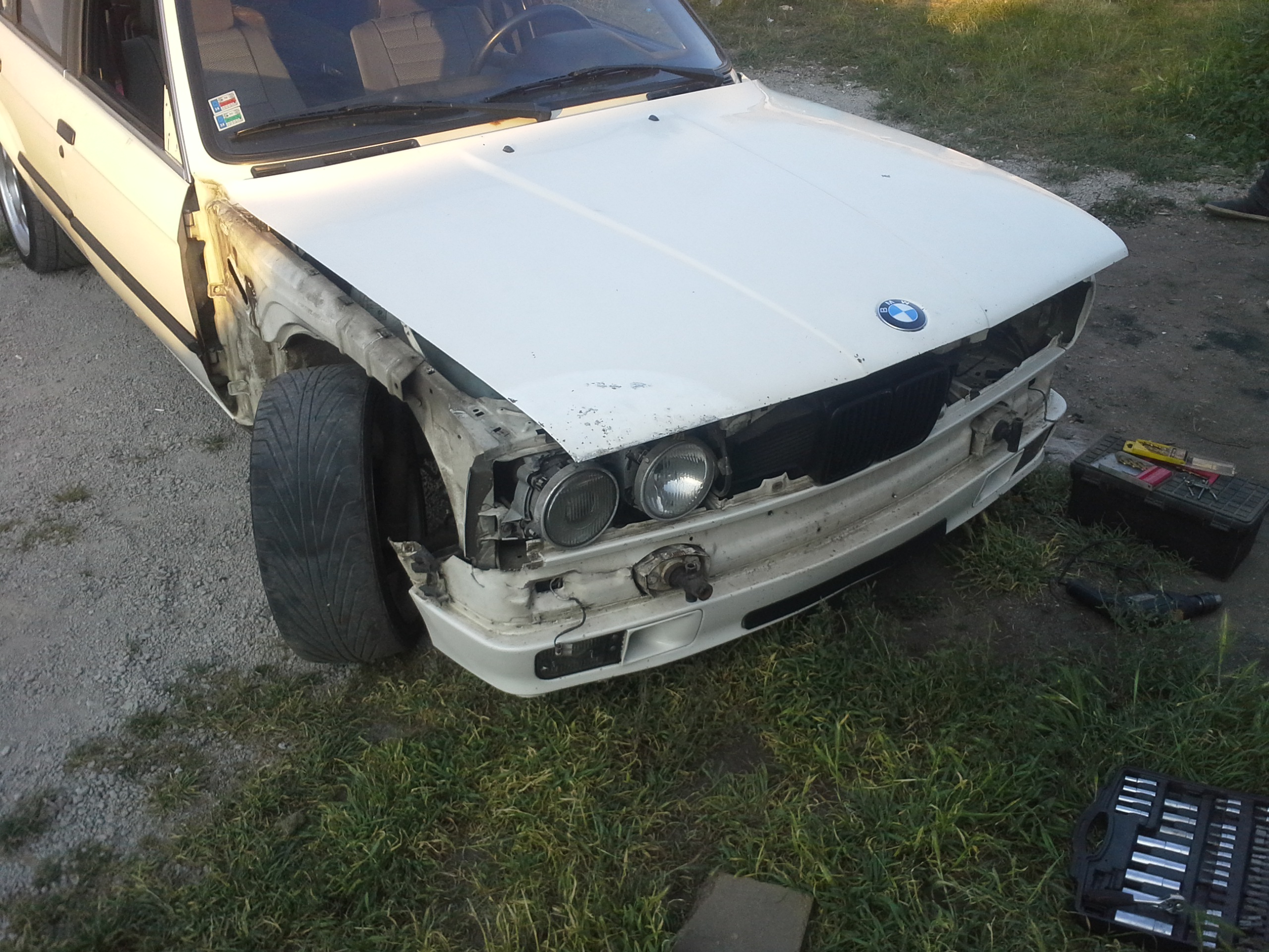 Dnes sme daco urobili a daco dodrbali...perinky na motore a prevodovke vymenene a pri skusobnej jazde nam pri mensom drifte sa uvolnolo koleso a odletello...takze vytrhlo komplet blatnik a scuchalo kotuc ale je to zjazdne...perepuťa sama...a naboje bude treba obe predne :/