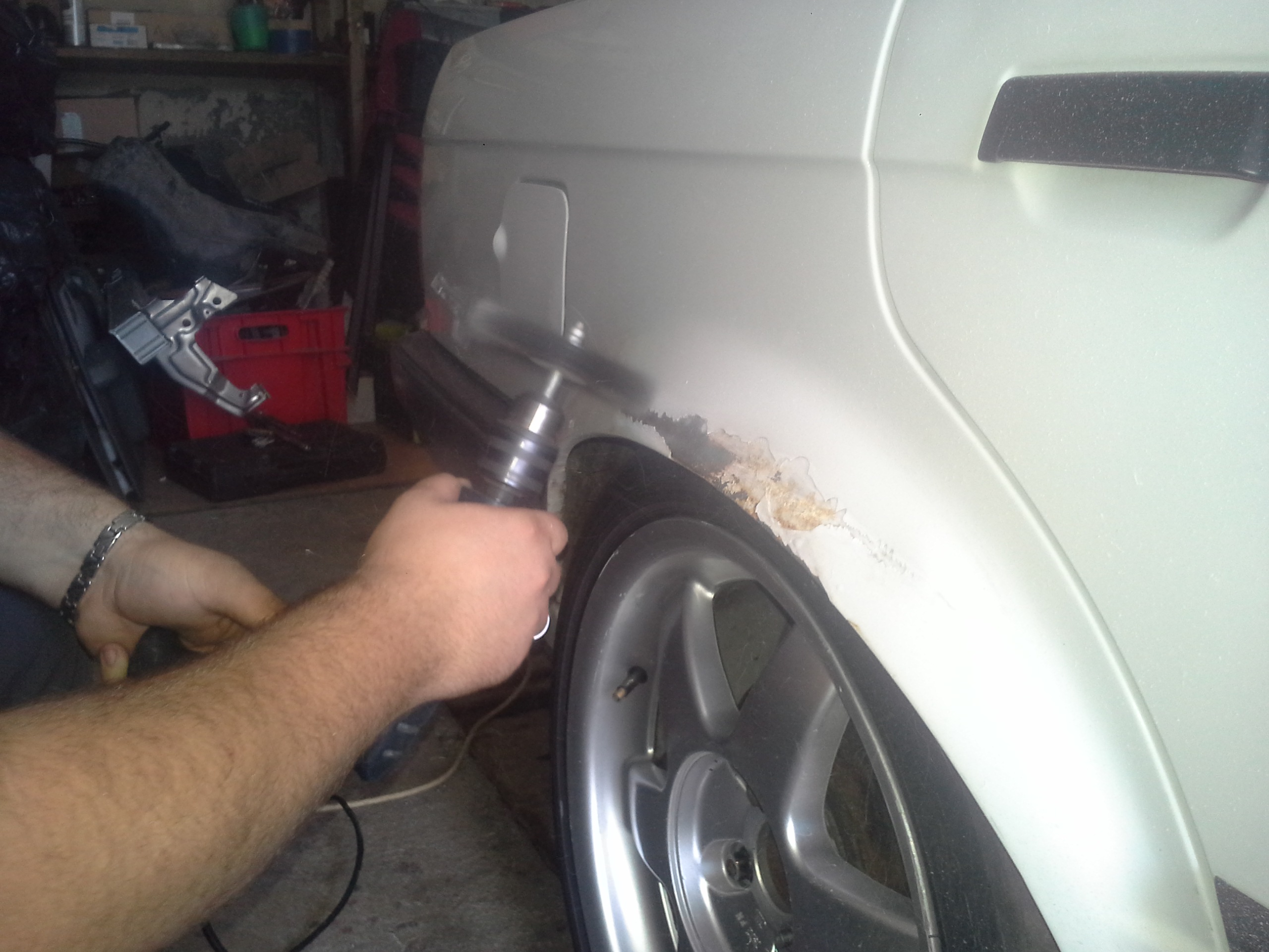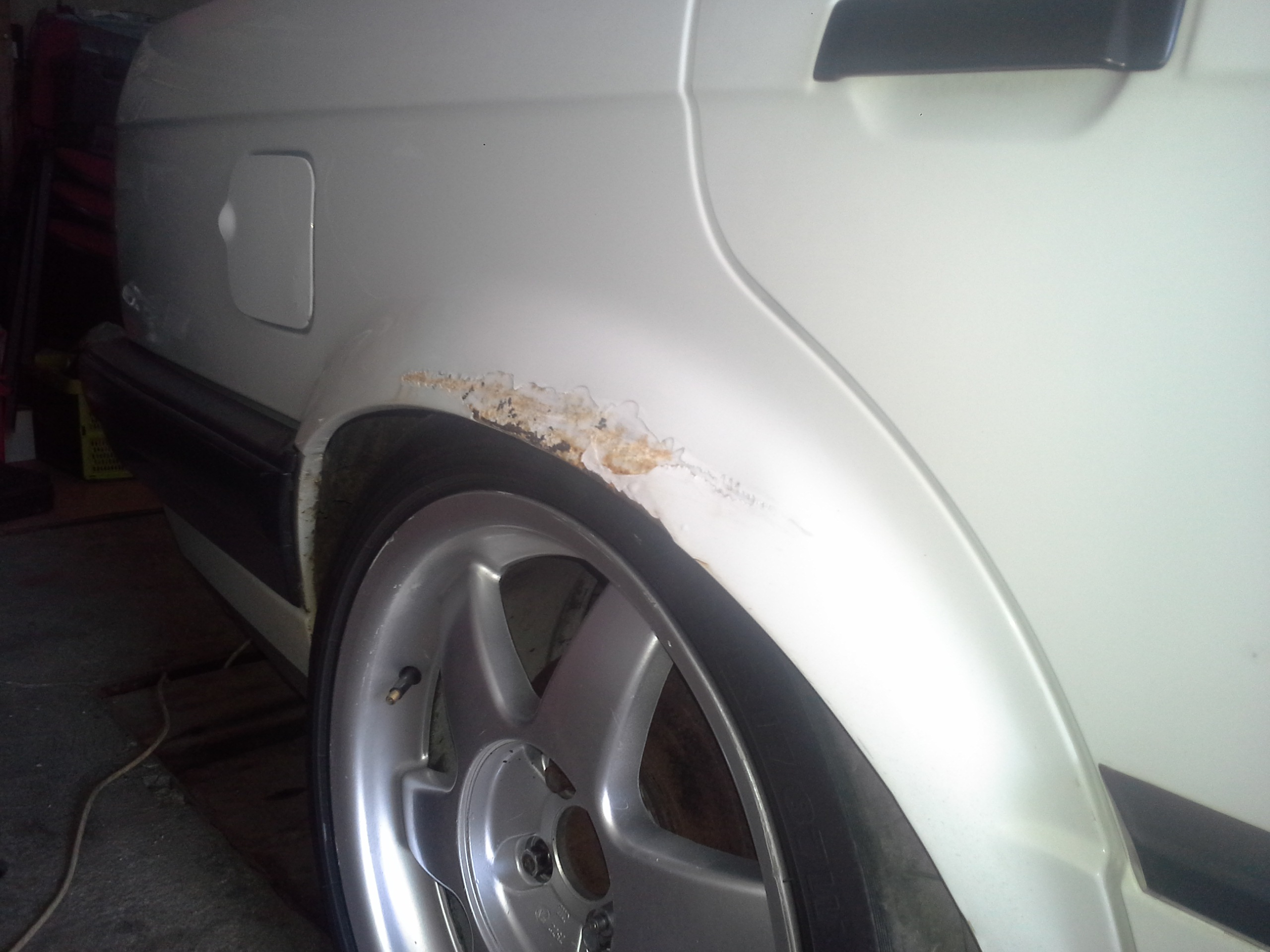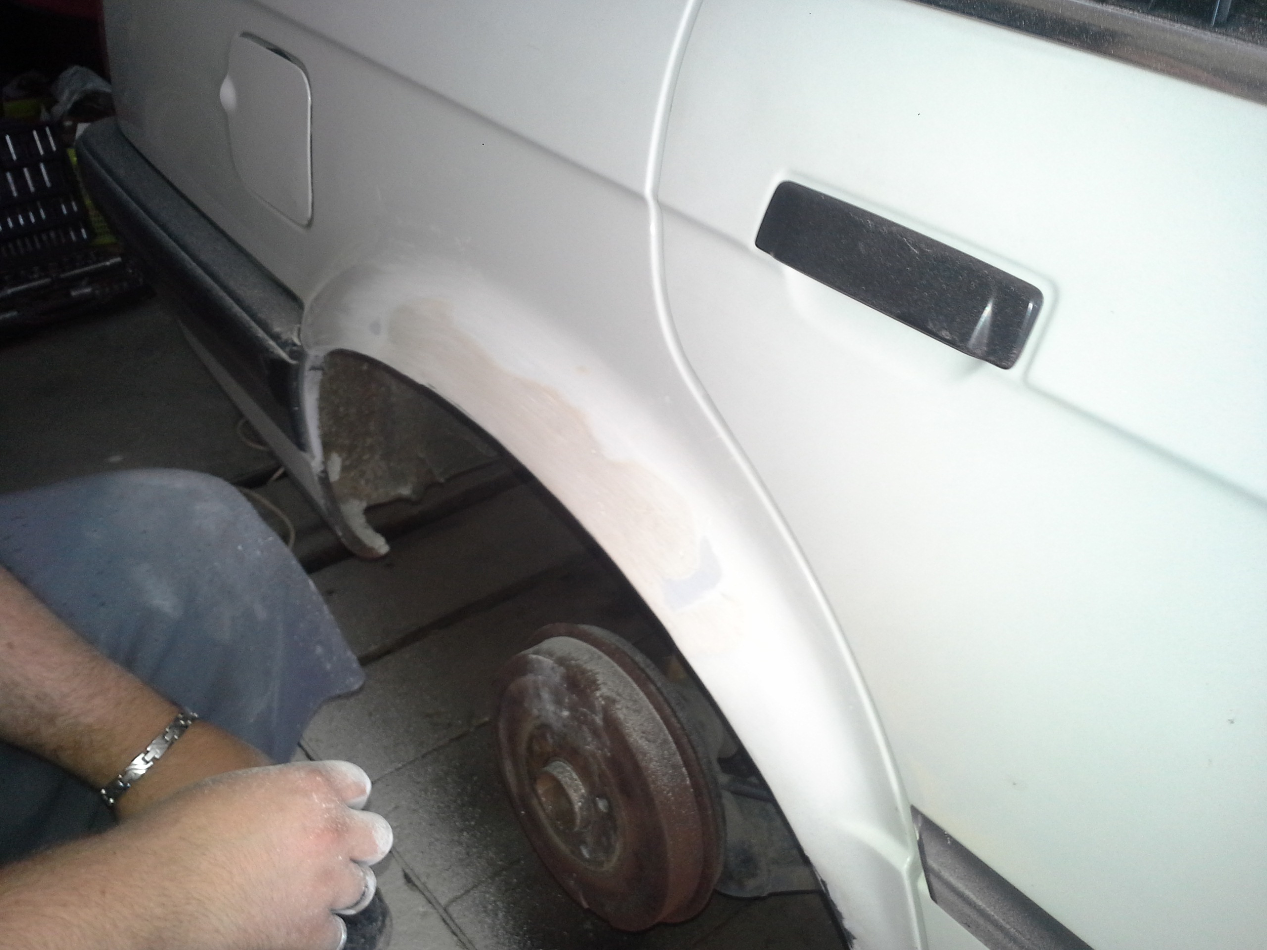 Nemohol som sa uz pozerat na tu hrdzu ..tak sa robilo vo velkom:) za 4 dni sa opravil falec dal sa novy blatnik, narazniky a spetaky sli do farby porobila sa hrdza a autoo sa zospodu vystriekalo asfaltom:)