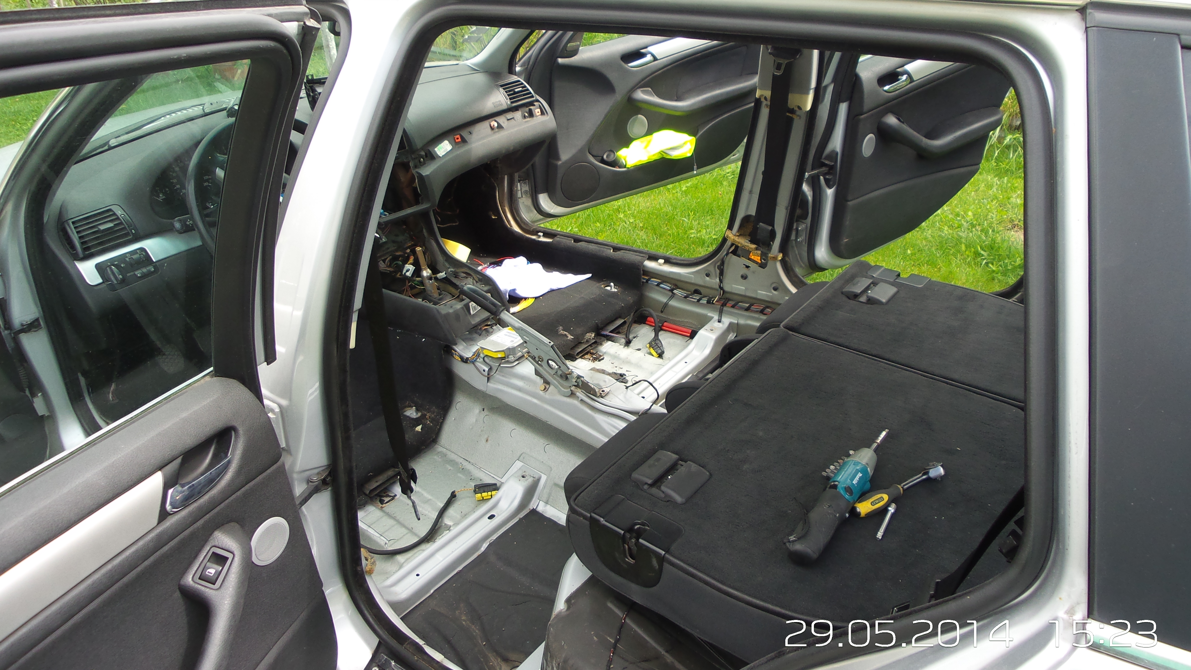 no a v tretom rade spomeniem pamatove sedacky, to bola celkom sranda, pretoze kable som v brne musel cvakat, kvoli nedostatku casu ich vymontovat. vo stvrtok som vyraboval auto, v piatok natiahol H/K, v sobotu som zlozil kufor, dal naspat zadne sedacky a lisovacimi spojkami som doriesil kabelaz na sedacky, v nedelu sa nedela tak som vymenil iba ten filter :) no a v pondelok a v utorok som sa ihruskal so zapojenim, podotykam SAM a vlastnym tempom, cista robota by bola na 3 dni :)