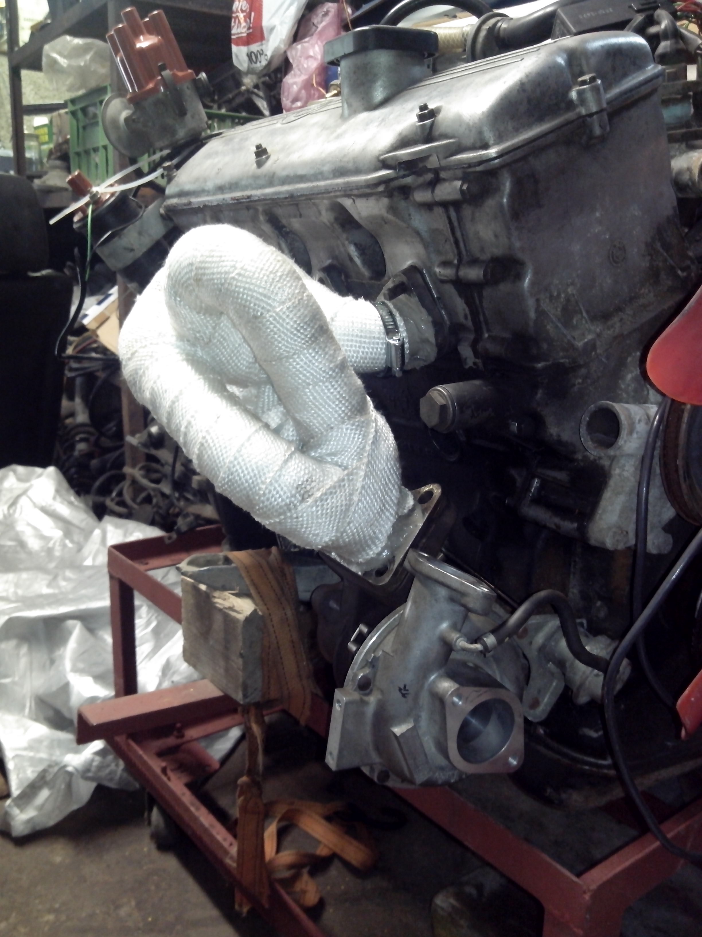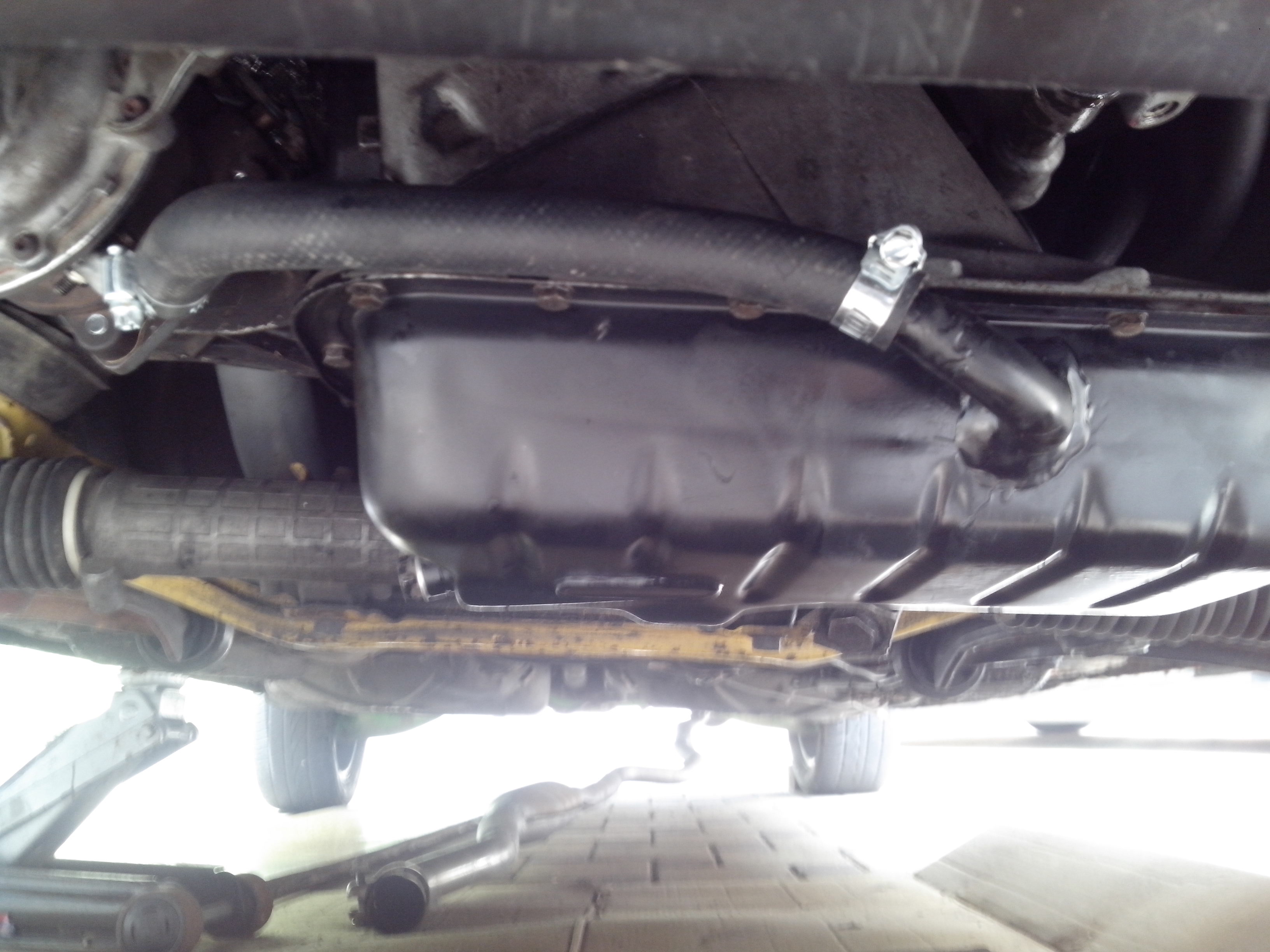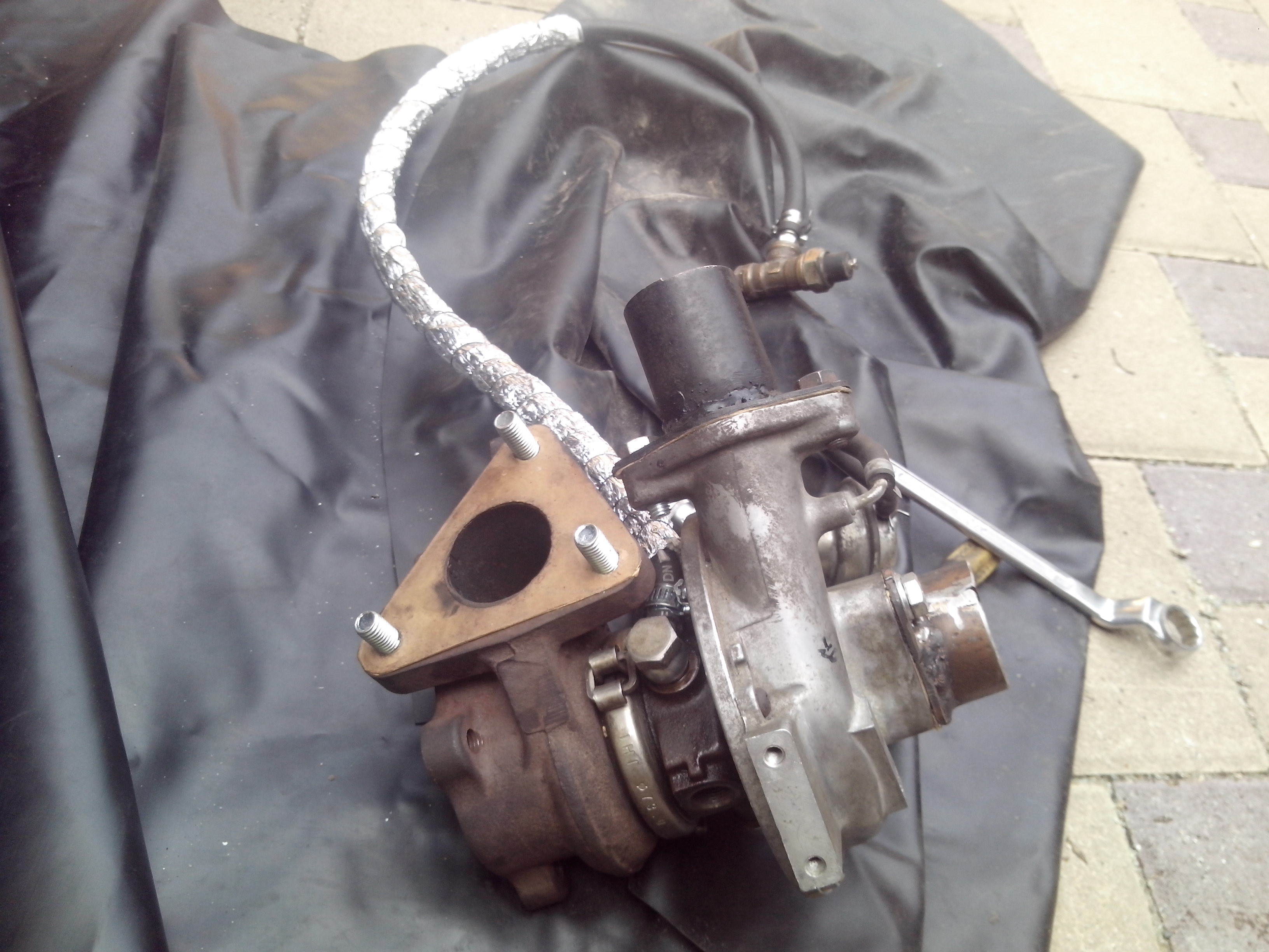 Takze pomalicky dalsie foto z uprav/oprav trochu som sa vytrapil s "downpipe" :D nakolko som tym musel nejak rozumne obist drziak motora.. co sa vcelku podarilo. Upustil som od povodneho planu, olej vracat cez prietokovu skrutku do toho hlinikoveho dielu medzi vanou a blokom, a odvod oleja som napojil do vane. Bolo pomerne zlozite vybrat z tych vani co mam doma tu najzachovalejsiu lebo vsetky sa tvarili tak povojnovo, ale myslim ze nakoniec sa to celkom slusne podarilo. Potom som riesil podtlakovu banku pri turbe... aby ju bolo mozne nastavovať odrezal som tiahlo, narezal zavit atd.. :) Hadicku na privod oleja do turba som pre istotu zaobalil, nakolko je v blizkosti zvodov, tak aby sa jej nahodou nieco nestalo :) A potom som si kupil este nejake kolotocarske malickosti :) (filtre...a tak ) A co ma dostalo bola skutocnost ze sa zvody dotykali o nosnik tak som to musel poriesit trosku nekulturne, ale o to ucinejsie :)