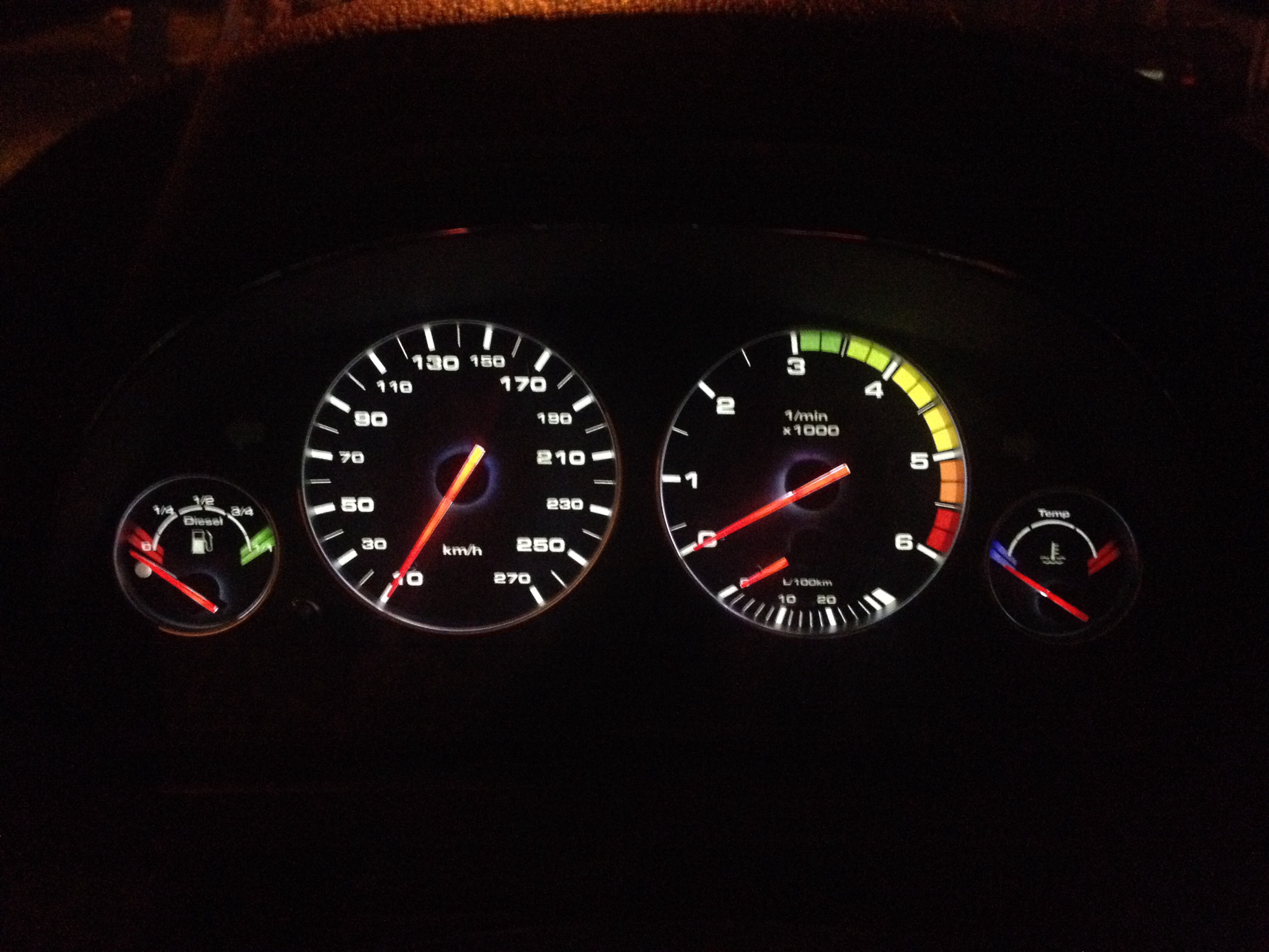 Na inych budikoch co som robil s bielym pozadim a stupnice na cerveno boli krasne cervene v noci, akurat ze som to nevedel poriadne sfotit, na kazdej fotke tie cisla svietili na ruzovo :)))