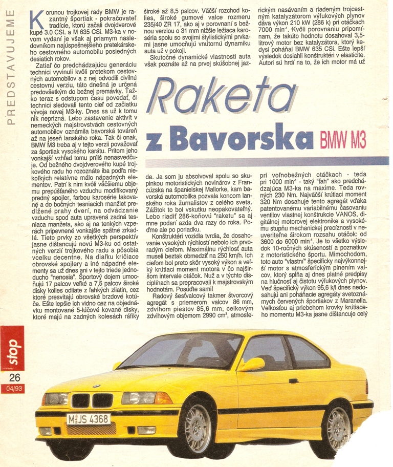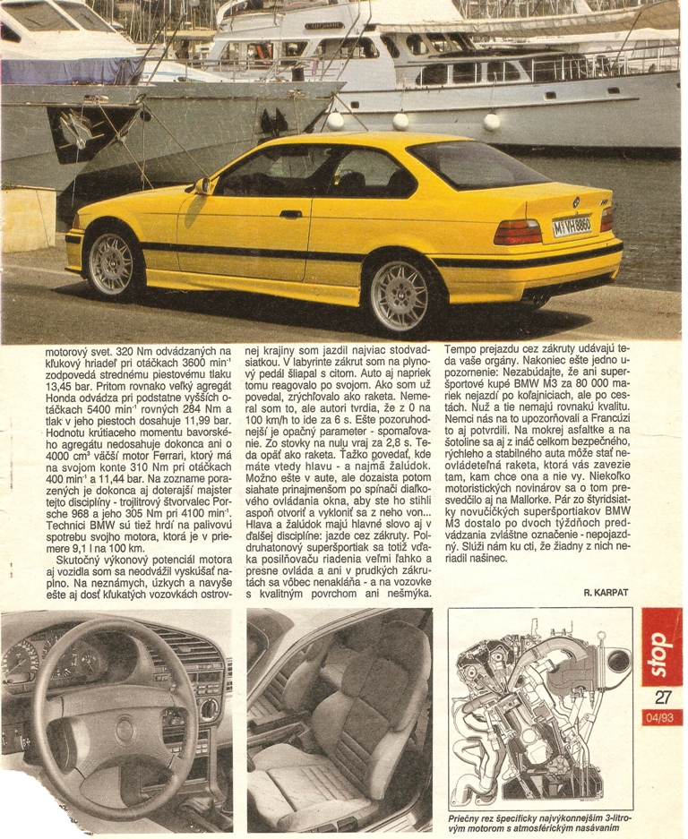 Hned ako som sa dopracoval po dlheeej dobe k tomuto clanku,z roboty okamzite na bmwklub.sk sa musim s vami milovnikmi E36 podelit o tento clanok z 4/93rv Dik Stevo