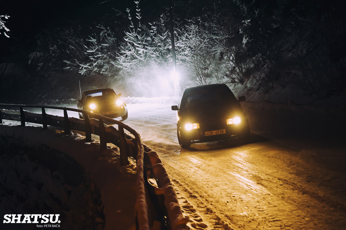 Auto jsem chtěl odstavit a hrát si s ním na špalkách no jenže... napadl sníh :D, takže si hrajem na cestě :). O víkendu byl stavený super fotograf co jinak fotí i naše závody, tak bylo jasné co bude přes noc v plánu :).