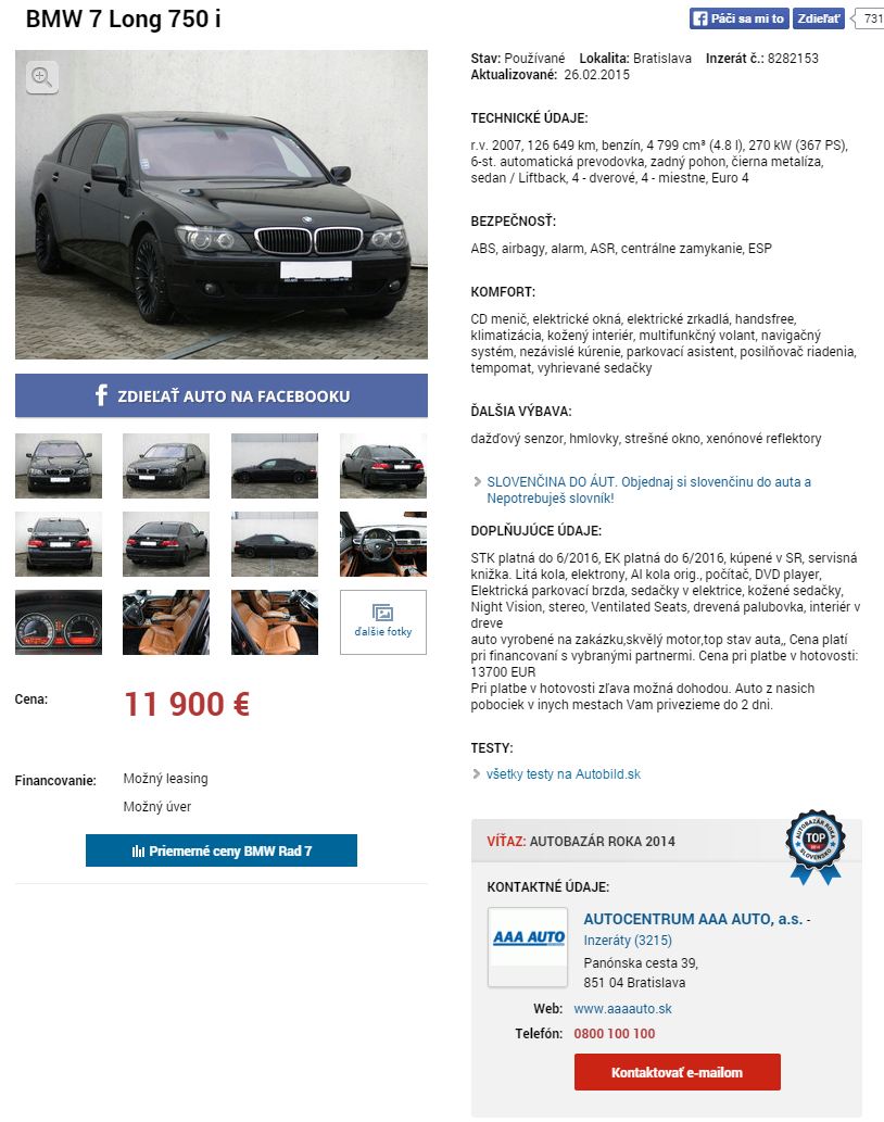 jozko2828 napísal:Auto sa tu uz raz predavalo ale za tu cenu je nepredajne. Realna cena je uplne niekde inde s tym ze buduci majitel musi ratat s generalkou motora. To ze sa predavaju nalestene cukre a pritom su to hnoje vie hadam kazdy. Horsie je ze sa tu stale nedaju overit nnapriklad buracky cez poistne udalosti atd...