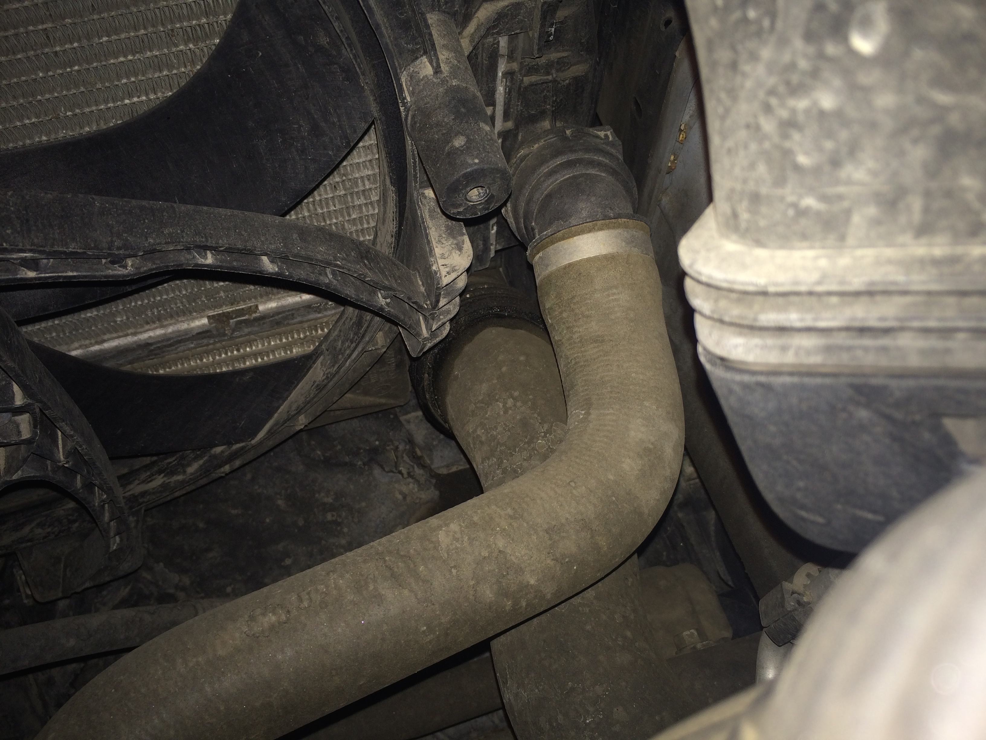 Tak po prve hruba hadica ako keby od chladica naspiodku prikladam foto kde pekne vidno, ze to musi uz dlhsie takto.