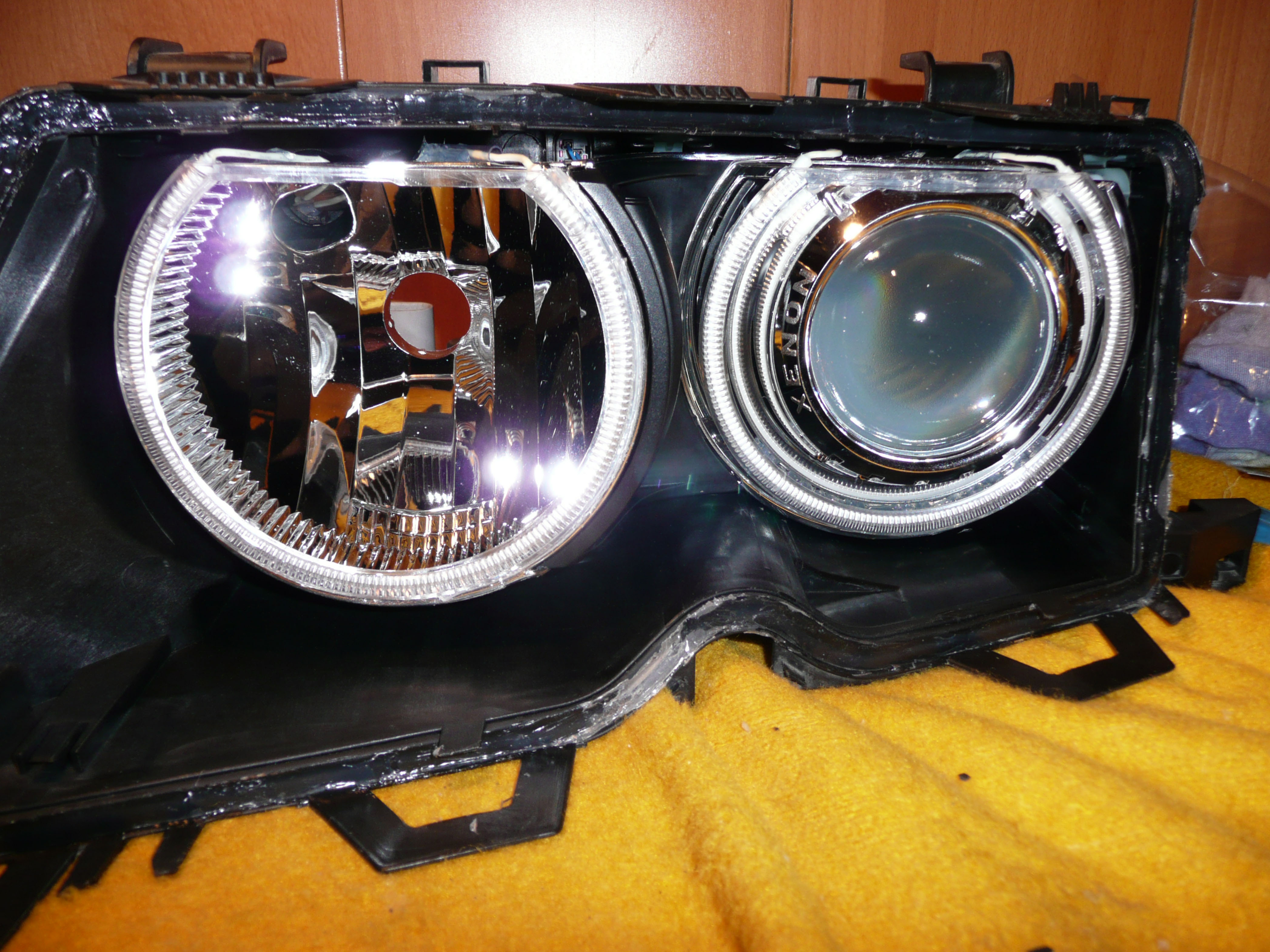 z orezavacim nožikom som trošku upravil zadnu stenu tým čiernym plastom aby sa to nedotýkalo......je to tip top....ano su to bixenony a tie spodne su 4x bixenon.......díky za pochvalu, aj som sa na nich narobil.......minule v noci som na roli videl ako si to zajace rozdávali v trojke,tak to svieti..... :mrgreen: :mrgreen: