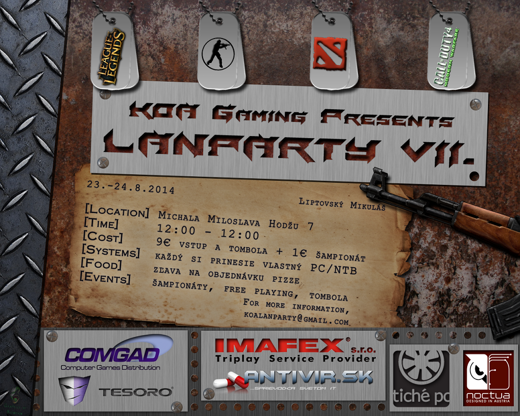 VII. KOA LANPARTY predbehla očakávania a s účasťou približne 50 ľudí sa stáva doteraz našou najväčšou a samozrejme najlepšou. Atmosféra bola skvelá, ľudia spokojní. Po akcii neostal neporiadok, každý si po sebe upratal, ľudia sa správali ukážkovo a za to ďakujeme. Pripájam kompletnú fotogalériu a dúfam že sa vídíme minimálne v takomto počte a zložení na osmičke :)