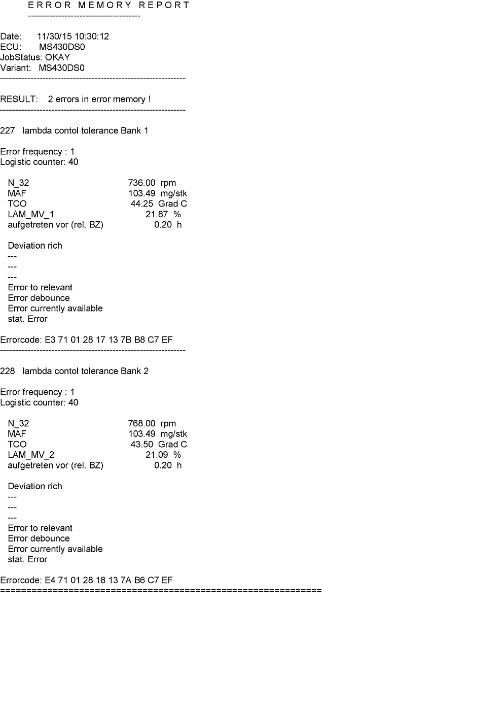 zkusim se zeptat i mistnich odborniku, protoze na nejmenovanem cz foru jsem se nedockal skoro ani odpovedi. Mam 520i 2001 a zniceho nic mi zacalo auto pri jizde skubat. Pri pridani plynu kdyz jsou otacky kolem 1500 rpm zacne motor skubat, vypada to, jako kdyz vynechava. Nasel jsem prasklou hadici za MAF sensorem, tu jsem vymenil a zbytek odzkousel s cisticem brzdem a vypada to v poradku. Diagnostika hotova pridam screeny. Podle diagnostiky jsou chyby na obou lambdach, ale prijde mi divne, ze by odesly obe najednou. Nevedel by nekdo na co se zamerit? Svicky i civky jsem kontroloval a jsou v poradku. Jeste chci zmerit tlak paliva, ale musim sehnat merak nebo je moznost to odzkouset bez nej? Diky za jakoukoliv radu.