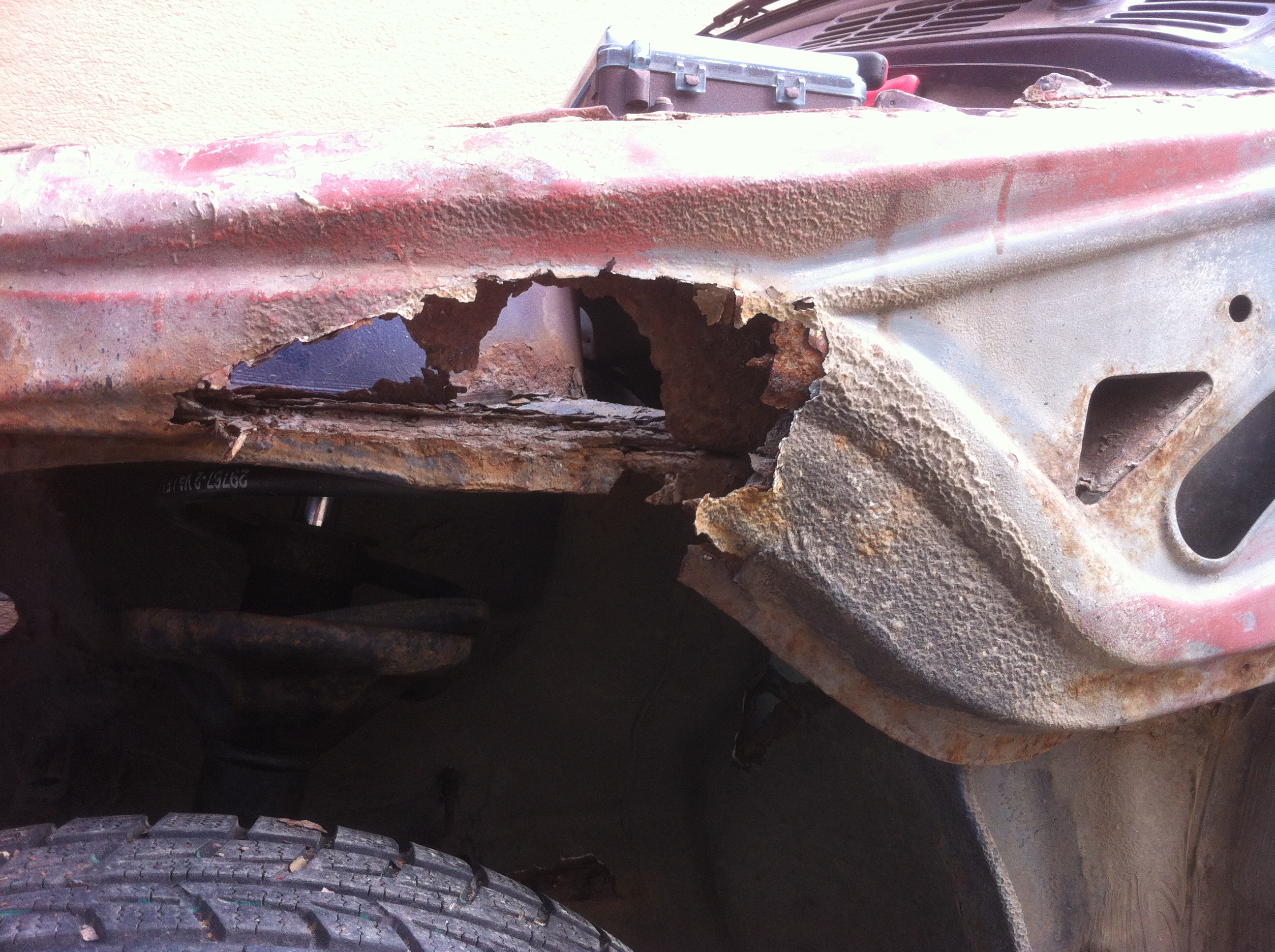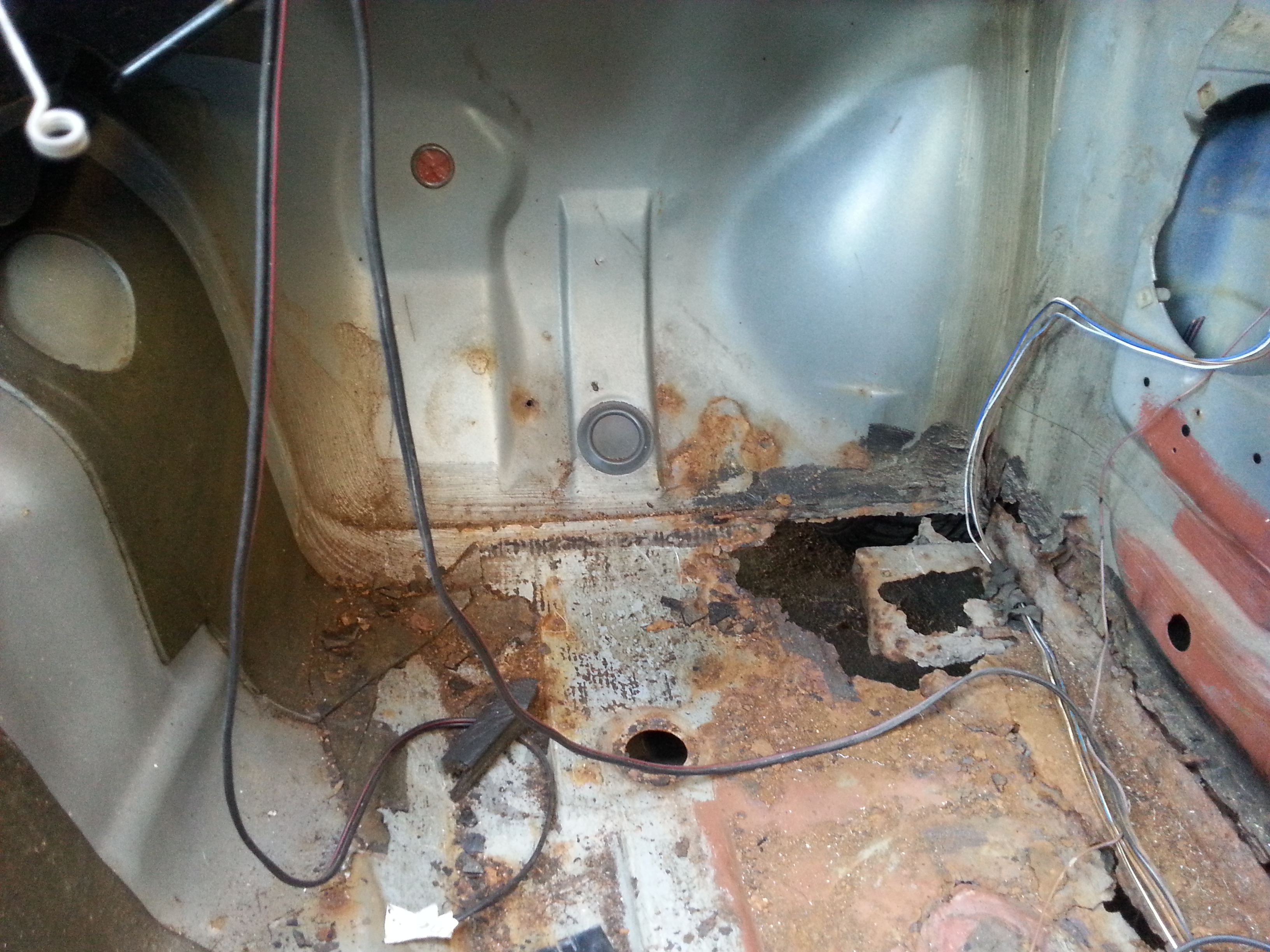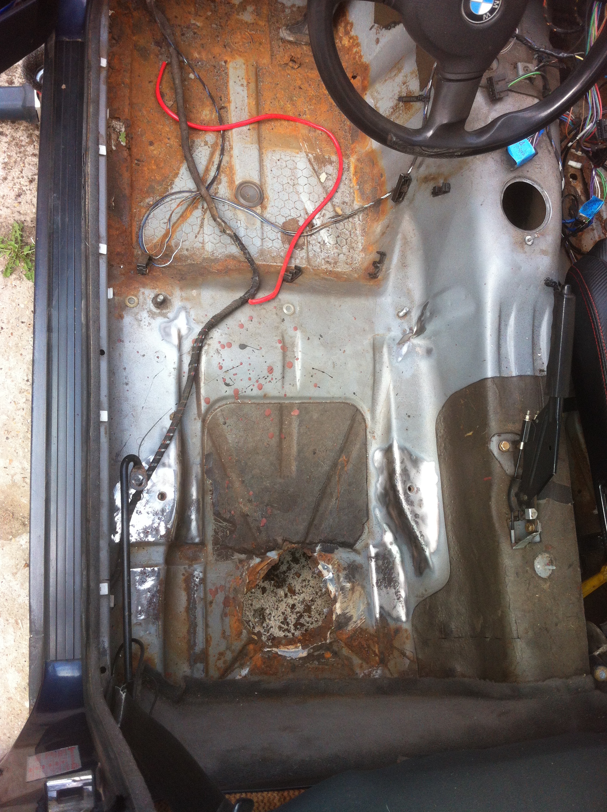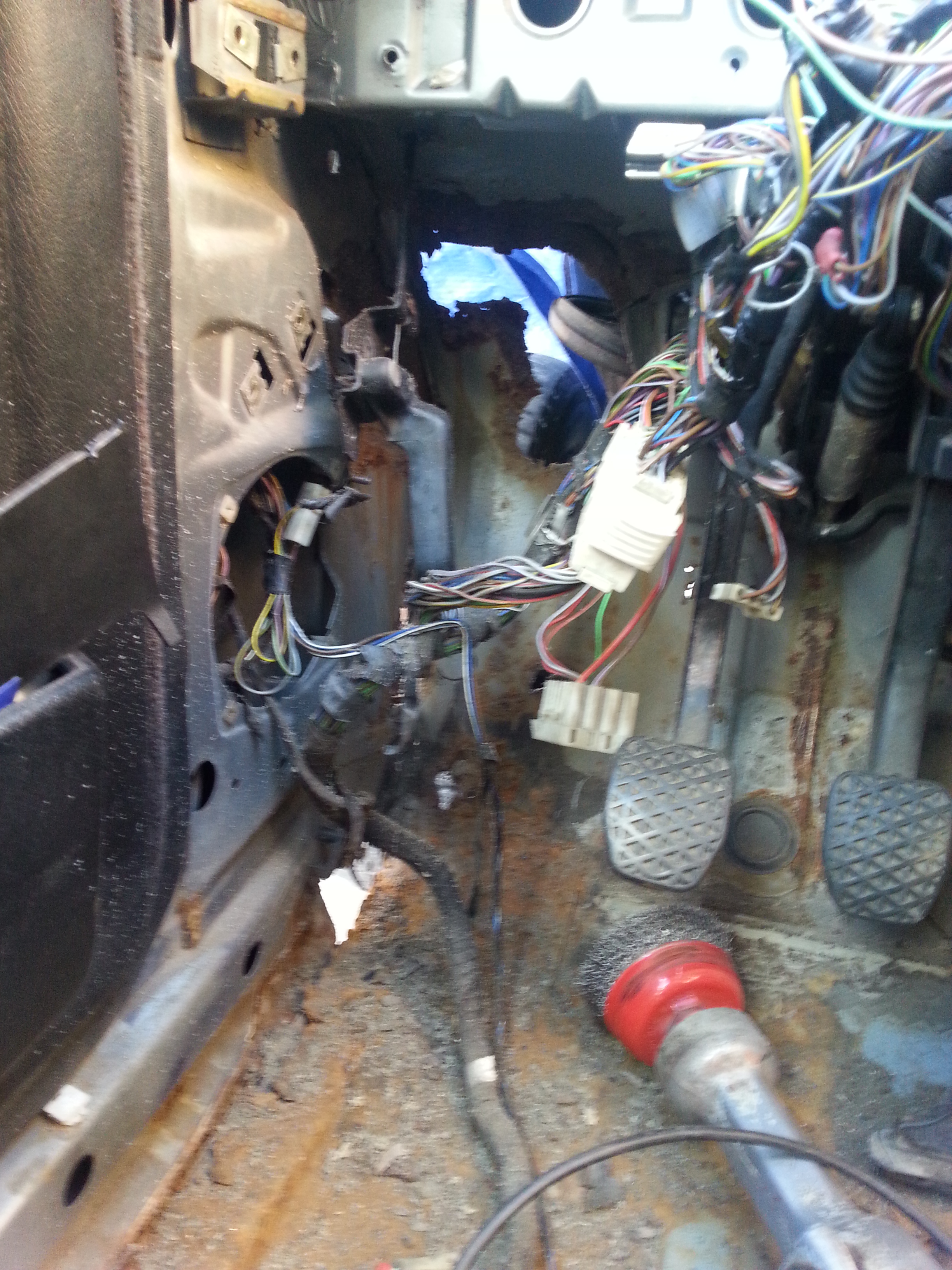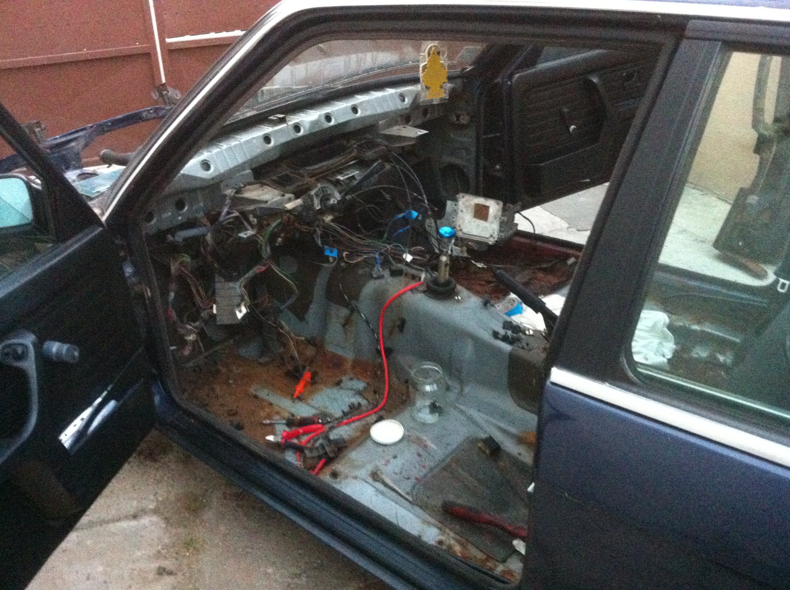 Tak a odstrojil sa všetok interiér,koberce atd... motor sa dal von a zistilo sa že vývarať toto auto nemá zmysel, kasňa sa krútila sama o sebe :D predný zvon uplne odhnitý, podlaha sa ešte dala ale ten zvon a bok predku nás odradil :D posúdte sami :evil: [-( [-( [-( 8-[ [-o<