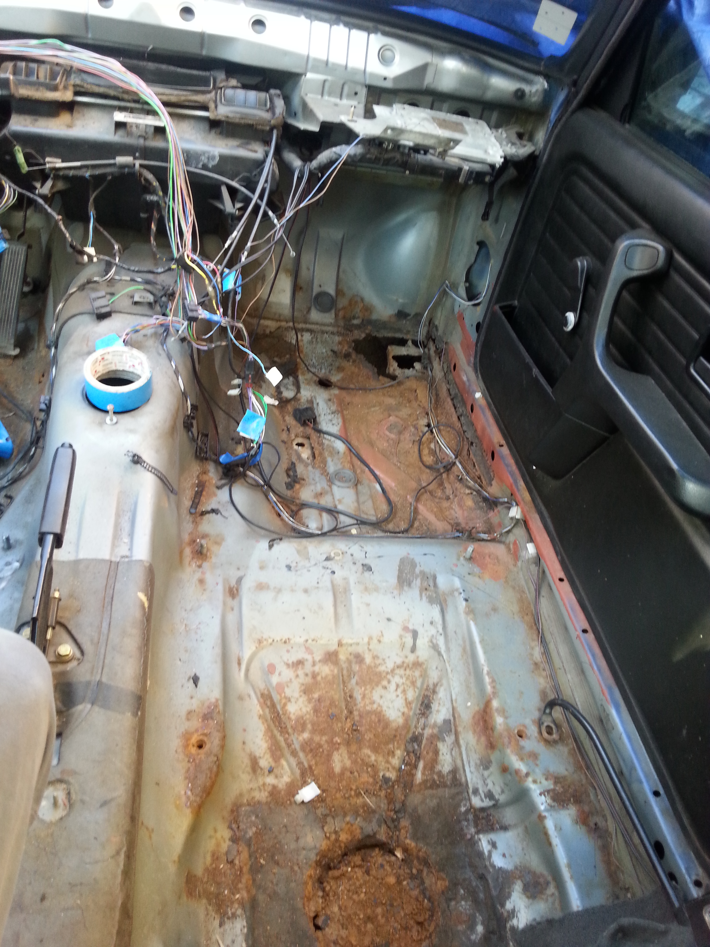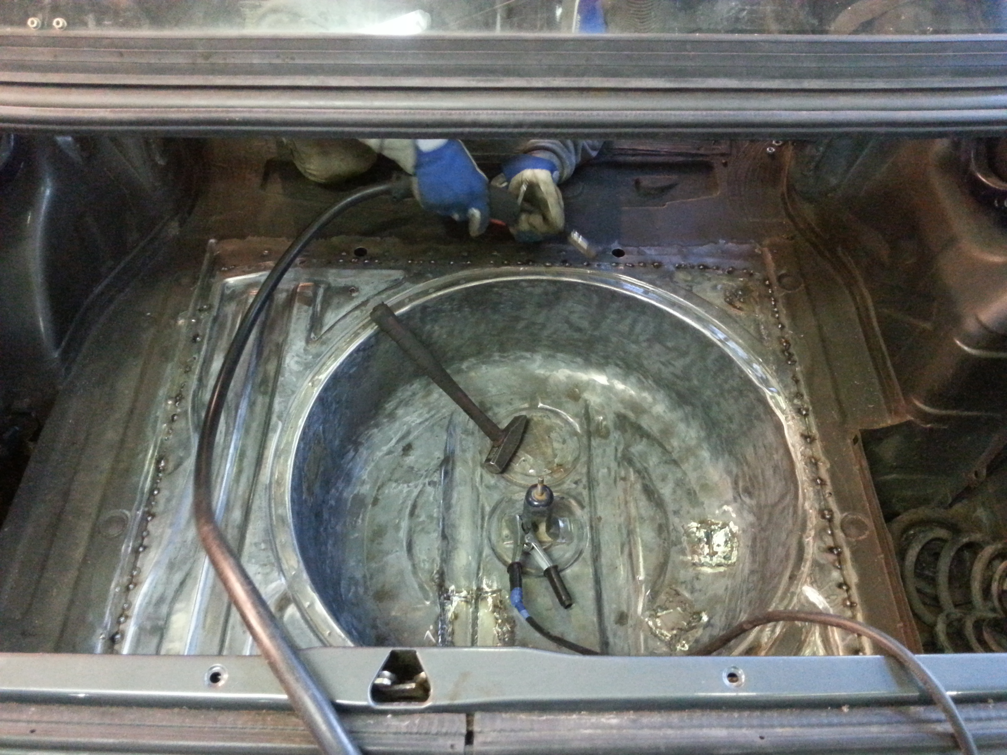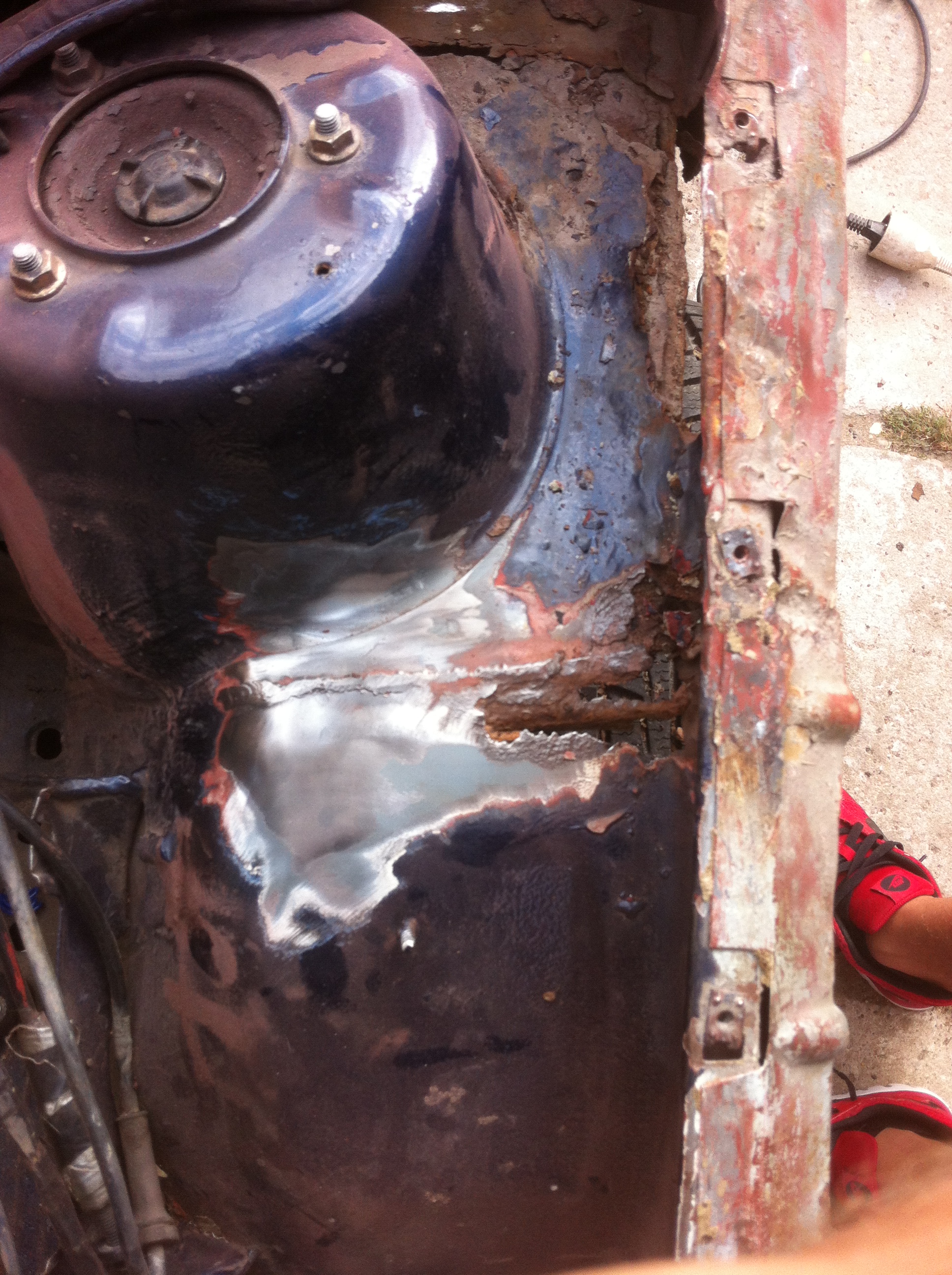 Nová kasňa bola úplne zdravá , na podlahe iba 3 malé diery...lenže kasňa bola prerábaná na drift =D> vzadu rezerva vyrezaná a navarený plech s asi 20 litrovou nádržou :mrgreen: :mrgreen: , zadné čelo vyrezané kvôli výfukom ](*,) , vyrezaná zadná priečka na sedačky, zavarený otvor na veko paliva :roll: [-o< ](*,) ](*,) ](*,) zavarené zámky na dverách ](*,) :thumbup: predlžené predné ramená(nadvarené) [-X