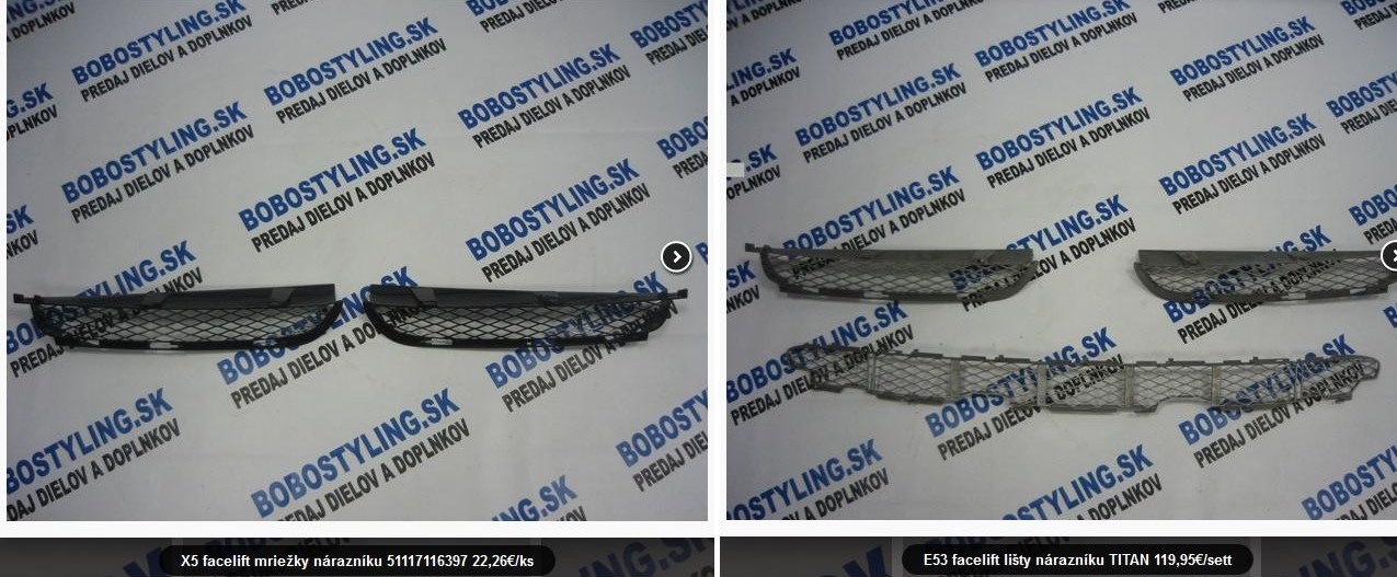 no v bmw chcu 130 zrejme za celu sadu ( stred plus boky ), ja tam vidim 37 Eur za strednu mriezku a 16 za bocnu : http://bmwfans.info/parts-catalog/E53/E ... #7116667_4