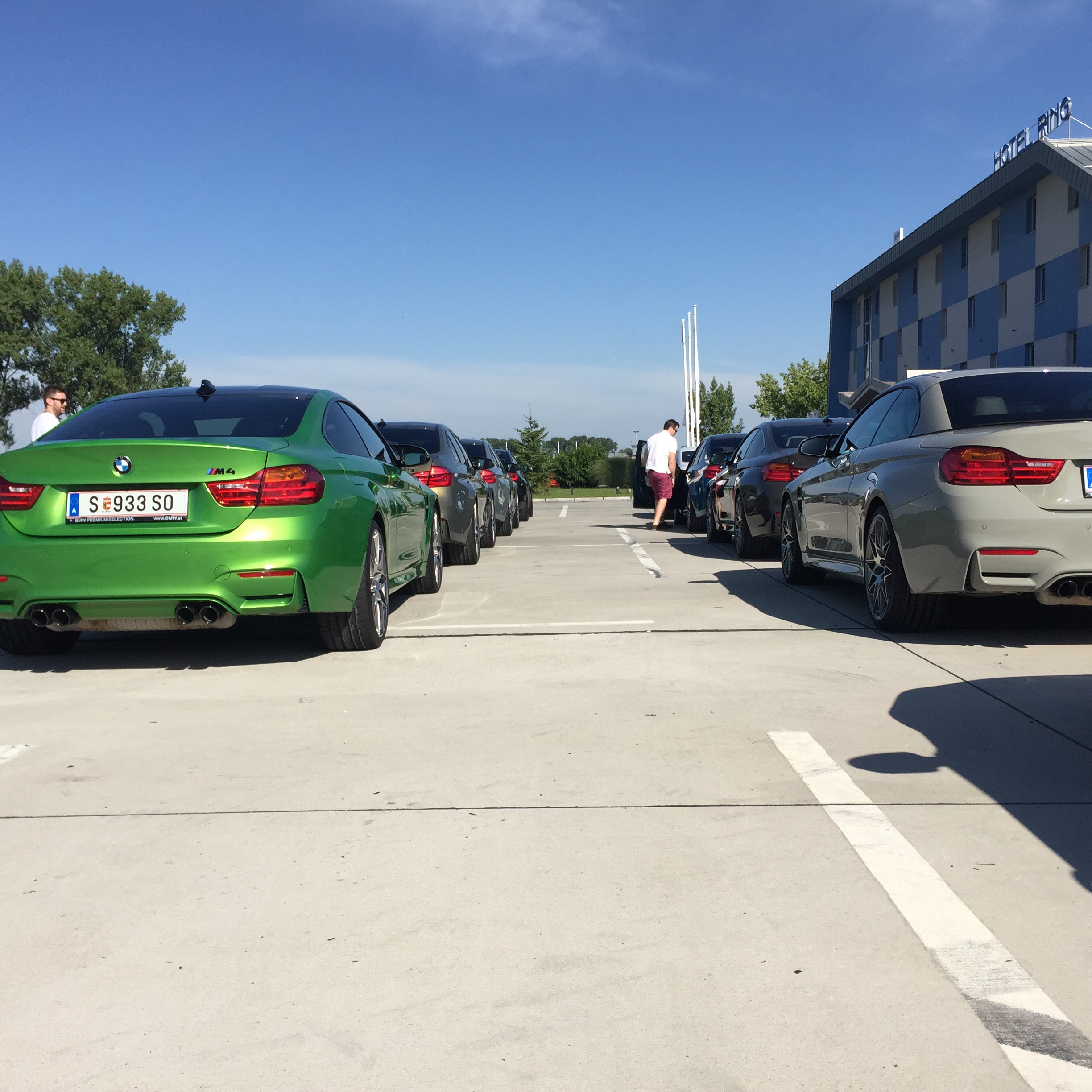 je to medzinarodna tour organizovana materskym BMW M group. Vyborna organizacia a hlavne chvalim ze nas nechali samych jazdit. V kazdom aute sedeli dvaja ktori sa po stintoch striedali za volantom. Jeden stint bolo 7kol. 1.Zavadzacie, 2 kedy sme sa mali ucit stopu, 3 rychle a 1 chladiace. Najlepsie som si zajazdil za najstarsim instruktorom (Hanzy). Dobra rada ak sa dostanete na takuto akciu snazte sa co najpresnejsie drzat stopy za instruktorom aj ked ste nauceni inu stopu, tiez sa snazte drzt rovnomerny odstup. Ak toto dodrzite instruktor bude zrychlovat a mozte si to skutocne uzit. To sa mi s Hanzym podarilo a bolo to fantasticke. Cielovka 235km/hod, prva prava za horizontom najazd 170-175km/hod... proste normalnych par rychlych kol. M4 aj M3 boli v Competition packoch a s keramickymi brzdami a bolo to fakt famozne ako fungovali