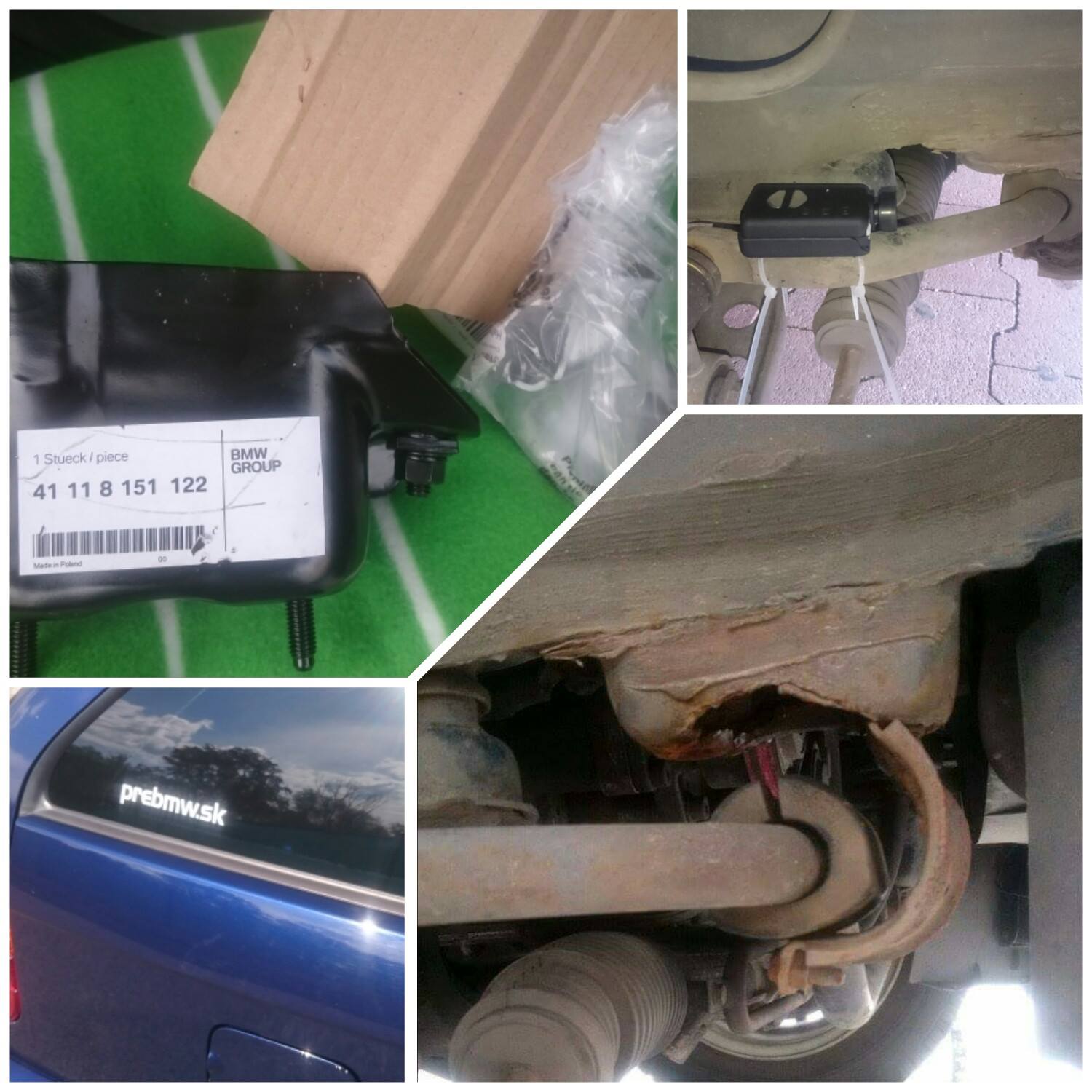 Nie nie je to ta nalepka prebmw.sk :-D ale odhnity pravy drziak stabilizatora. :( Diely uz mam doma (cca 45€), len som este nenasiel nikoho, kto by na to mal cas a popripade aj skusenosti s vymenou. Nevedel som ze ci sa s tym da jazdit, ako sa to sprava, tak som si tam prichytil kameru a previezol sa kusok. Video TU