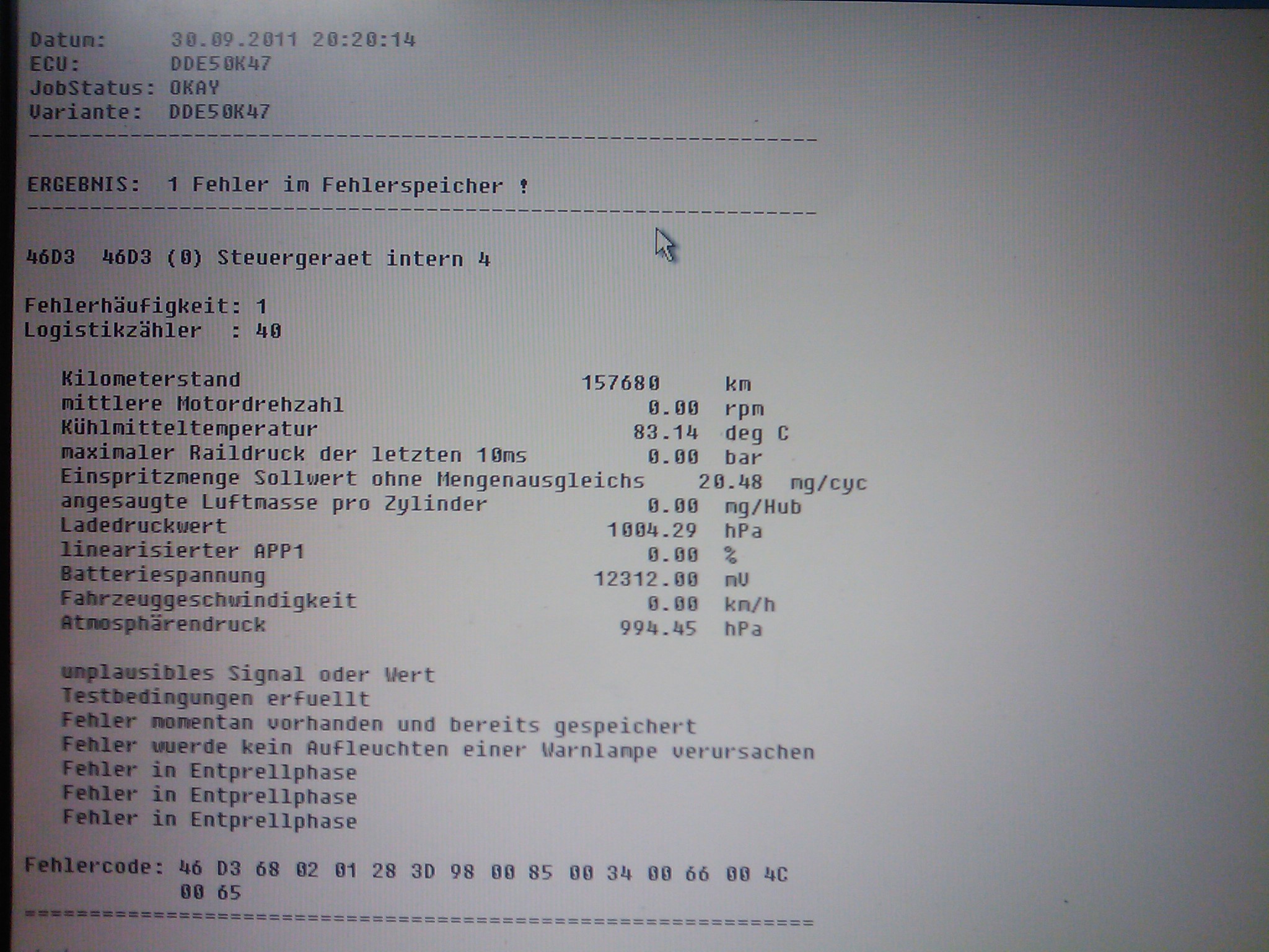 - kliknout na tu "Internal error 46D3" a dát pokračovat, protože DIS je diagnostika a otázkami Tě vede při řešení problému, narozdíl od INPA,