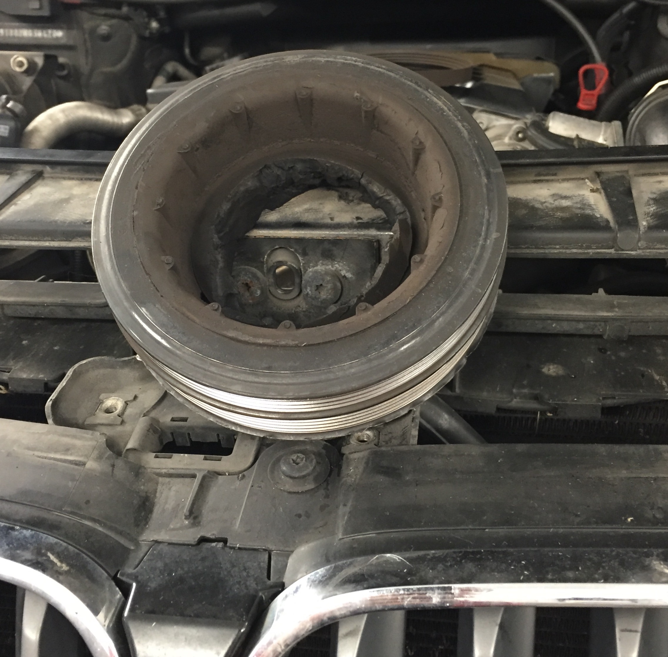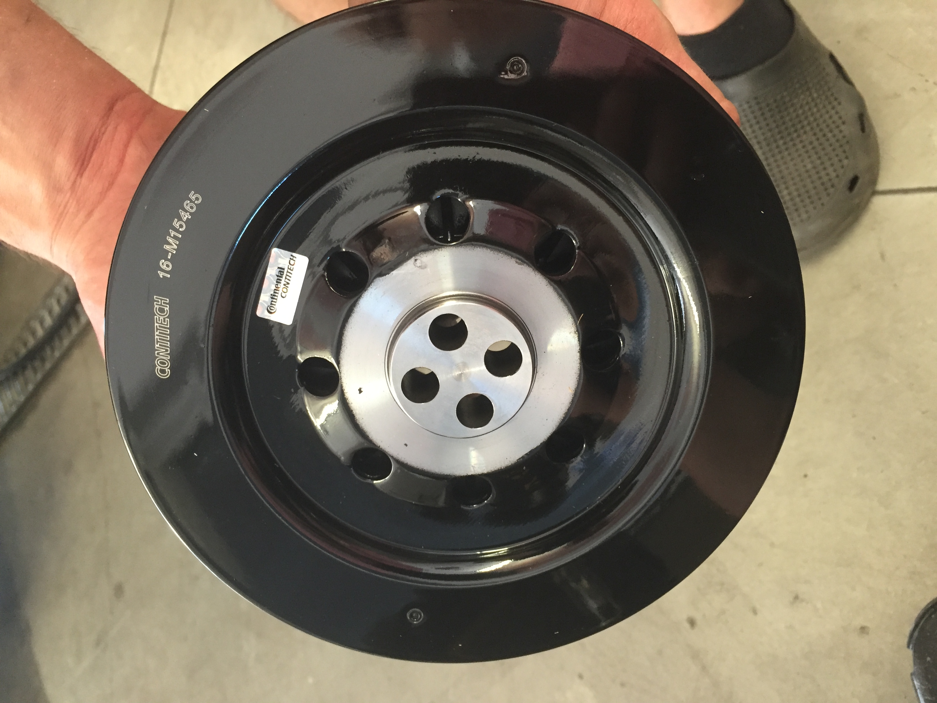 Remenica sa mi podarila vymenit, len skrutky boli velmi zakusnute, mal som iba golu, musel som si vyrobit pripravok na zaaretovanie remenice.Stara remenica po 280k km mala tu gumennu cast popukanu po obvode asi do hlbky cca 5 mm. Skor ci neskor by to drblo, zdalo saki, ze uz obcas bola zle vyvazena a triasla motorom na volnobehu ...