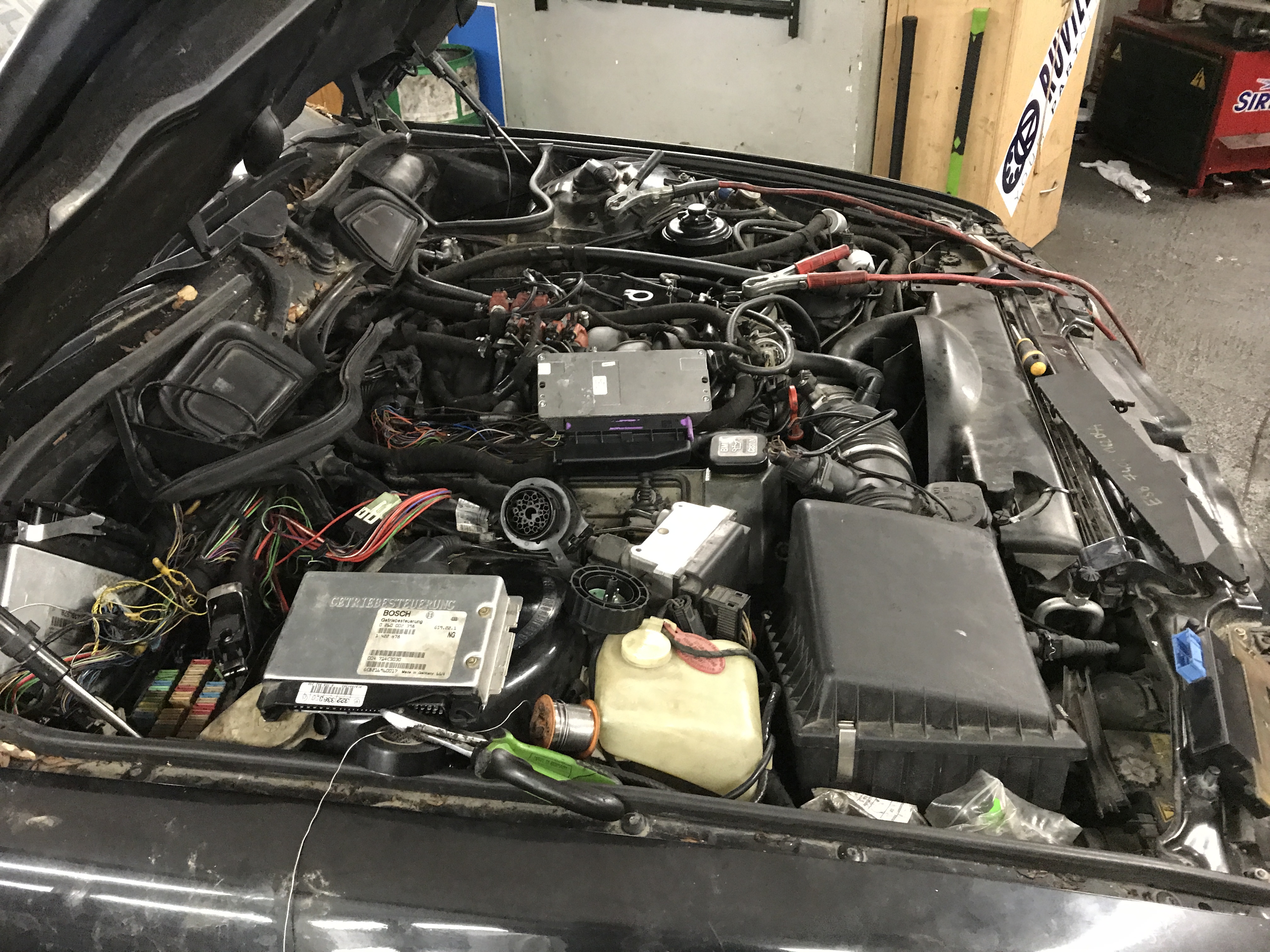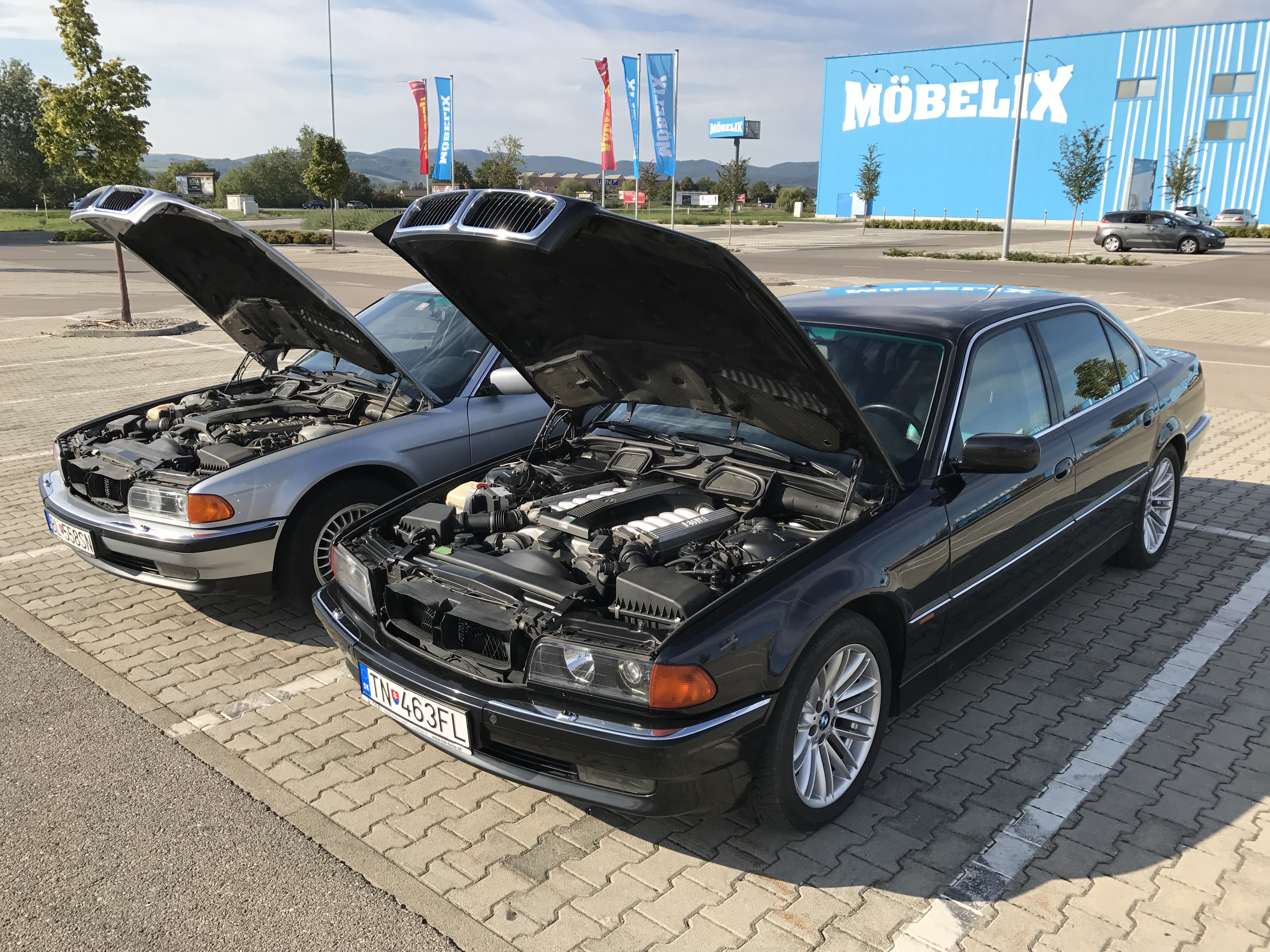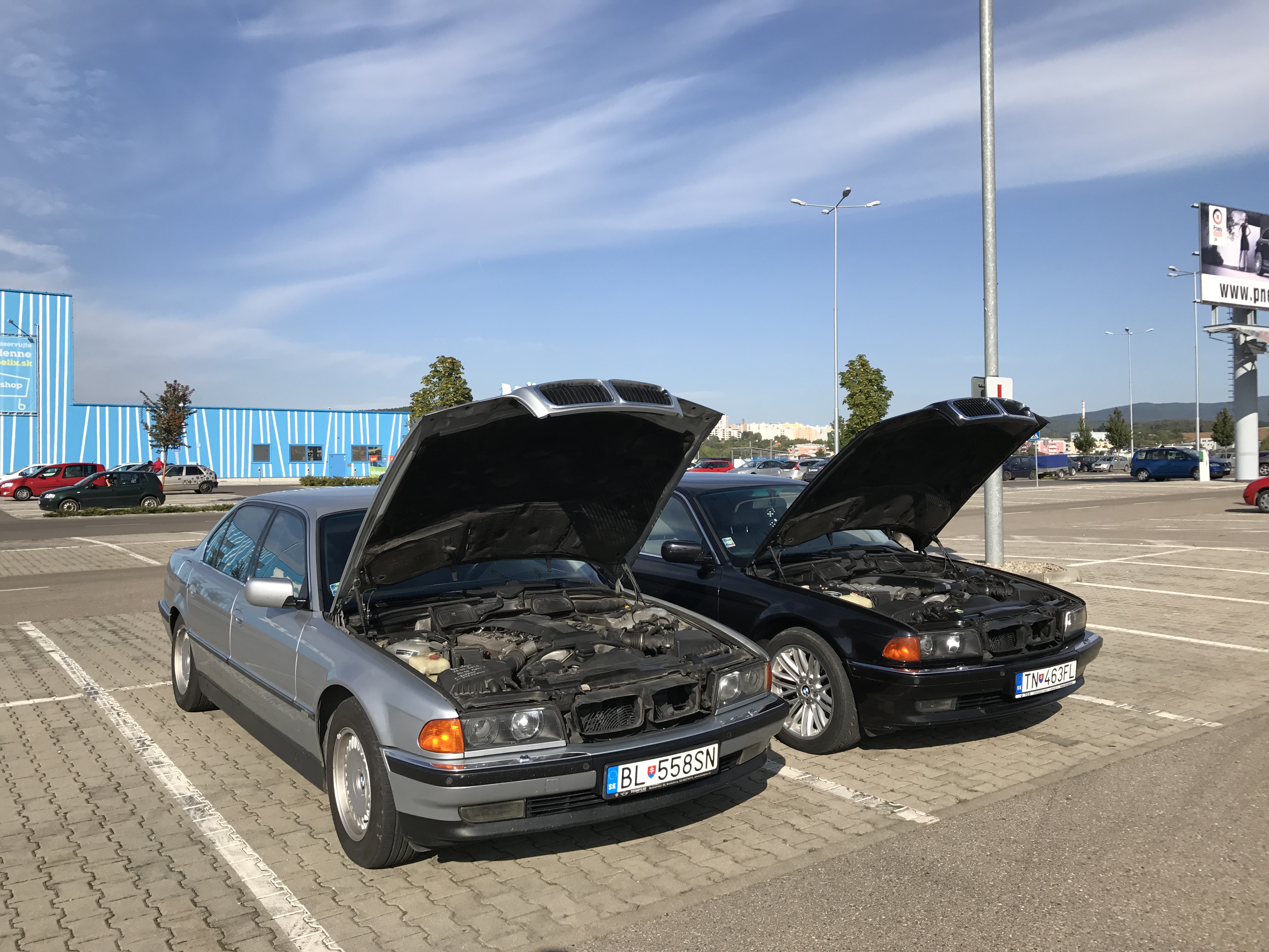 A aj "vybývaná - 740iLA" už jazdí... na motore sa menili: sviečky, cievky, čidlo vačky, čidlo kľuky, tesnenie sania, membrána odvetrávania, motorová kabeláž a celkovo oprava elektroniky, výmena EWS, riadiacej jednotky motora a ešte nejaké veci, ktoré si vzhľadom k tomu, že auto stálo od marca ani nepamätám... je to odstavené a postupne budem meniť veci za lepšie, aby to už nejako konečne vyzeralo. Momentálne aspoň takto