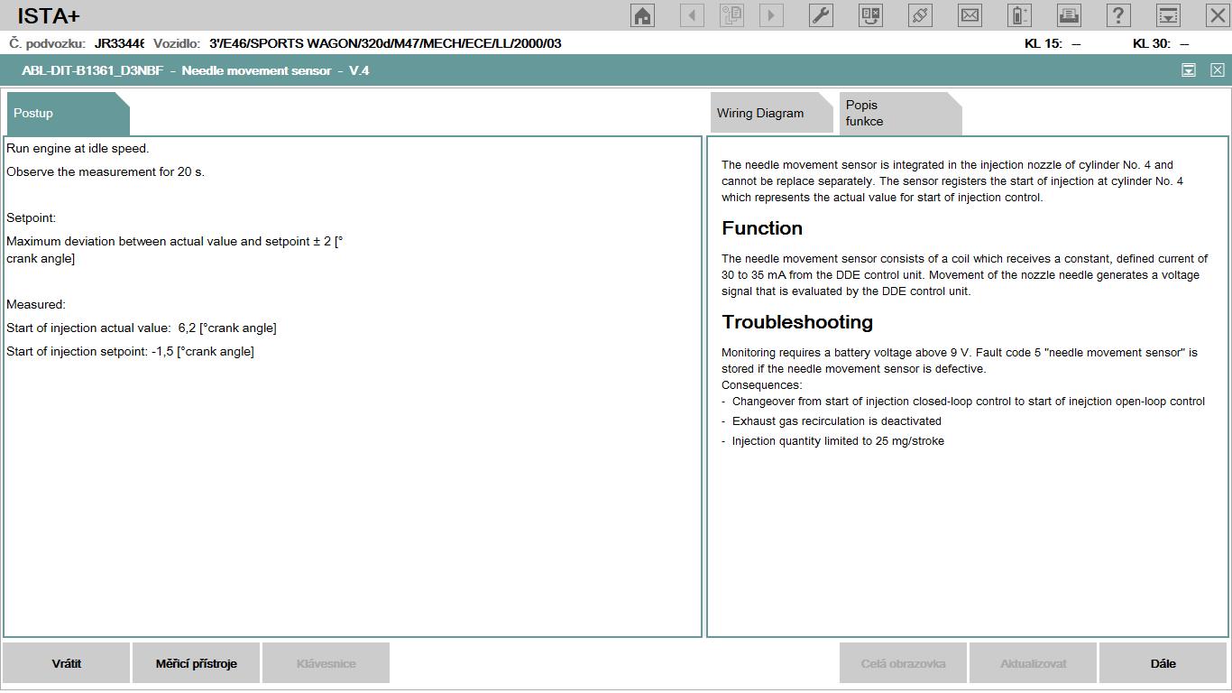 Keď pozerám požadovaný uhol čerpadla a skutočný, nemal by bať rozdiel viac ako 3 stupne a však malo by byť mezi 1 až 3 no a mne píše 6,4 -merané na voľnobehu... Pri meraní v 3000rpm hodnoty sedia...