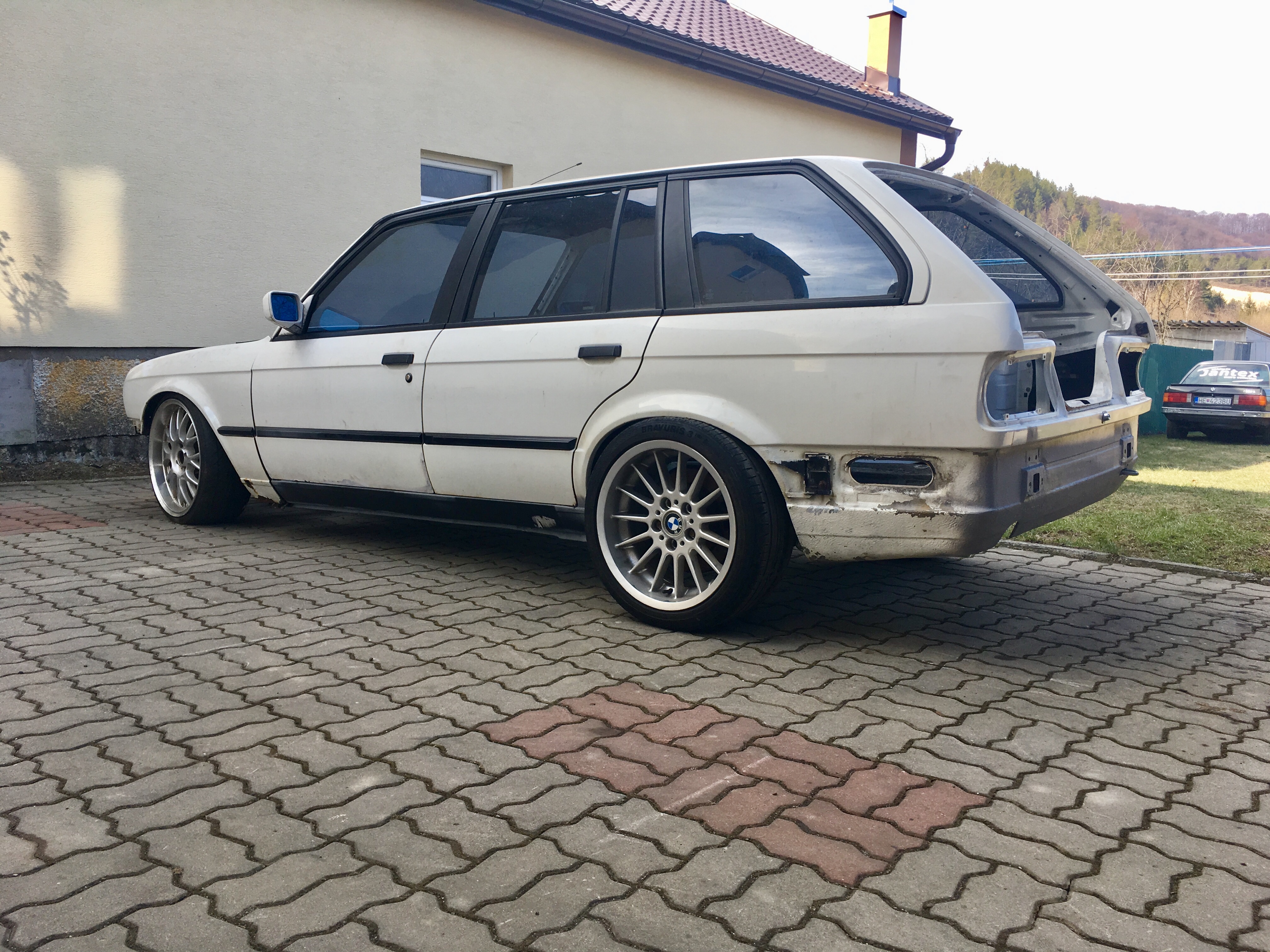 Keďže zadne disky nejak moc trčia lebo ta naprava je širšia, asi ma čaka úprava lemov, najviac sa mi to pači original ako to na e30 ale tie disky už moc trčia.... viď na foto